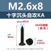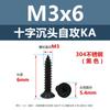 Venta directa de fábrica de tornillo autorroscante de cabeza avellanada cruzada KA negro de acero inoxidable 304 M2M6, tornillo electrónico de cola puntiaguda y cabeza plana