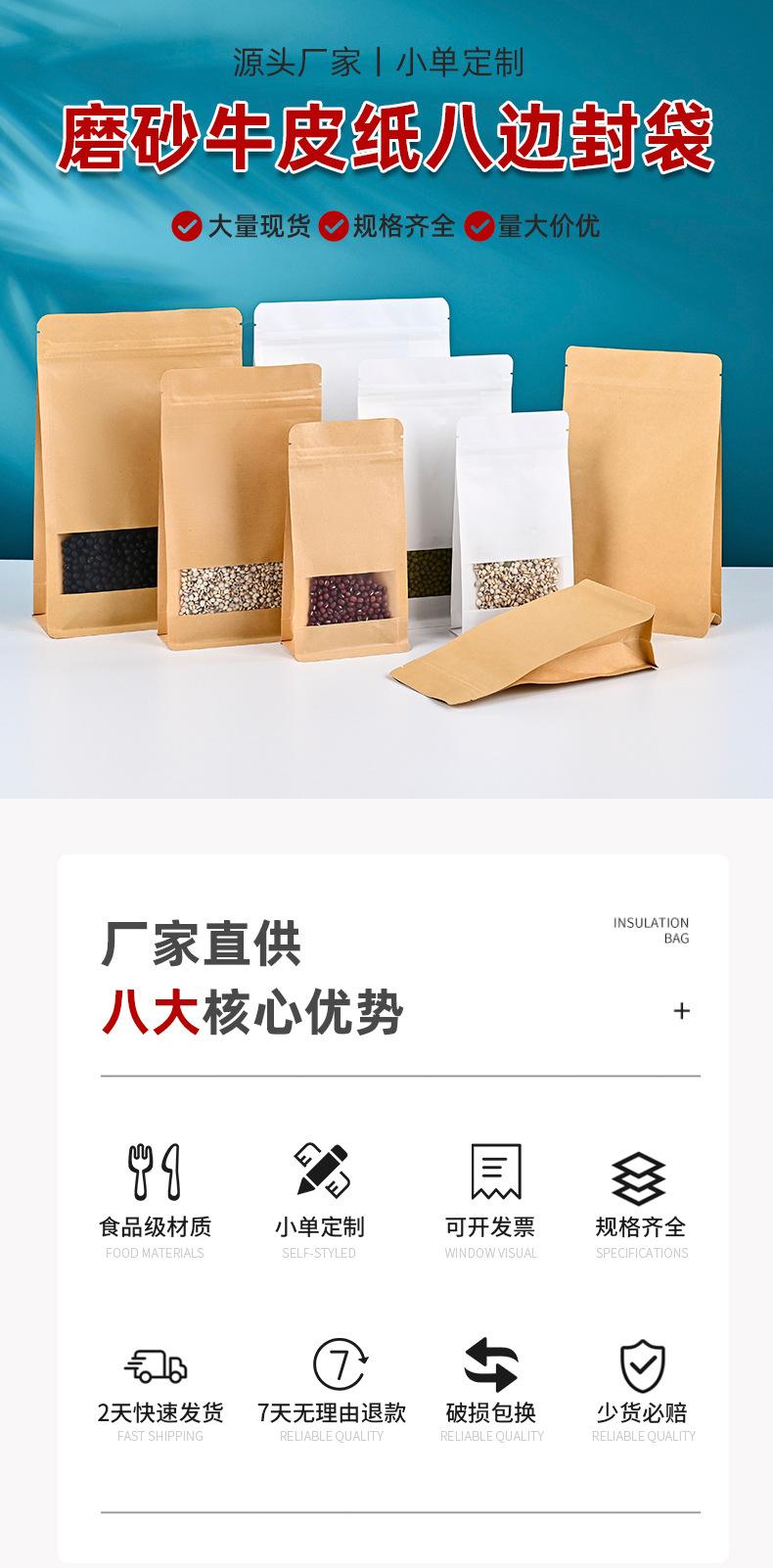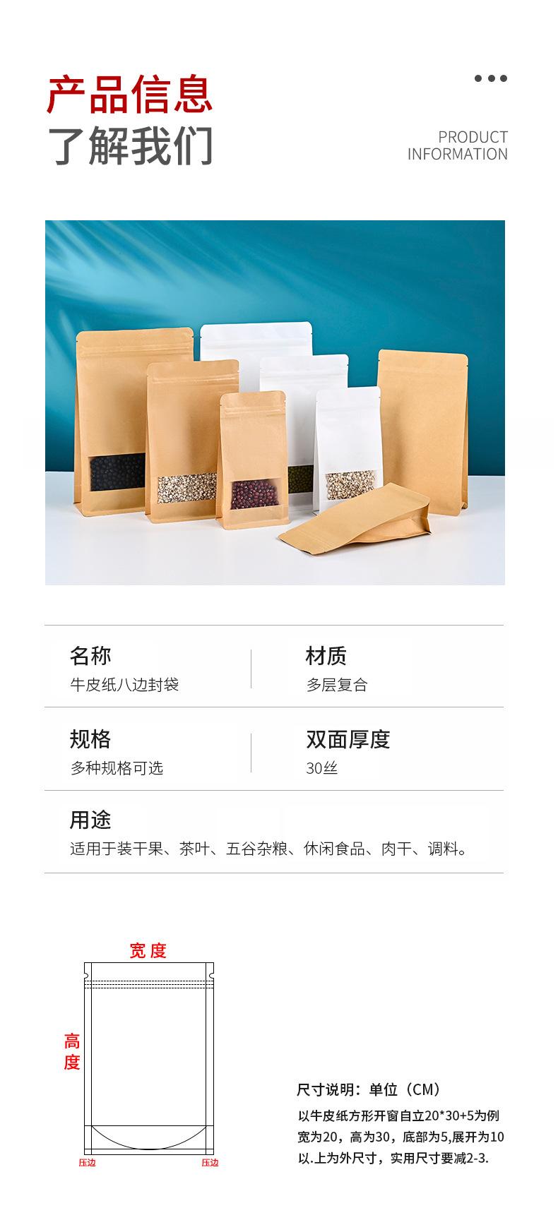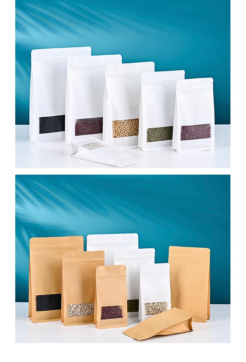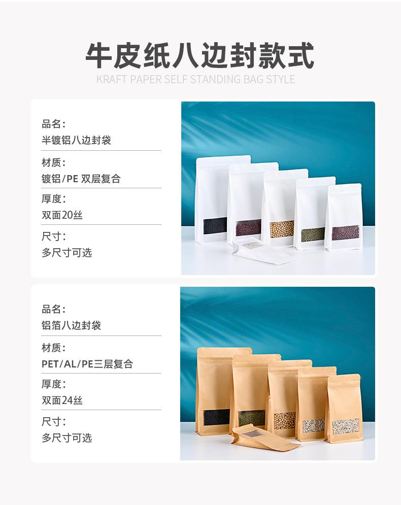 Bolsa de Papel Kraft con Sello de Ocho Lados, Bolsa para Empaque de Alimentos con Ventana Aluminizada, Bolsa Sellada para Té y Nueces, Bolsa Autosellable de Pie