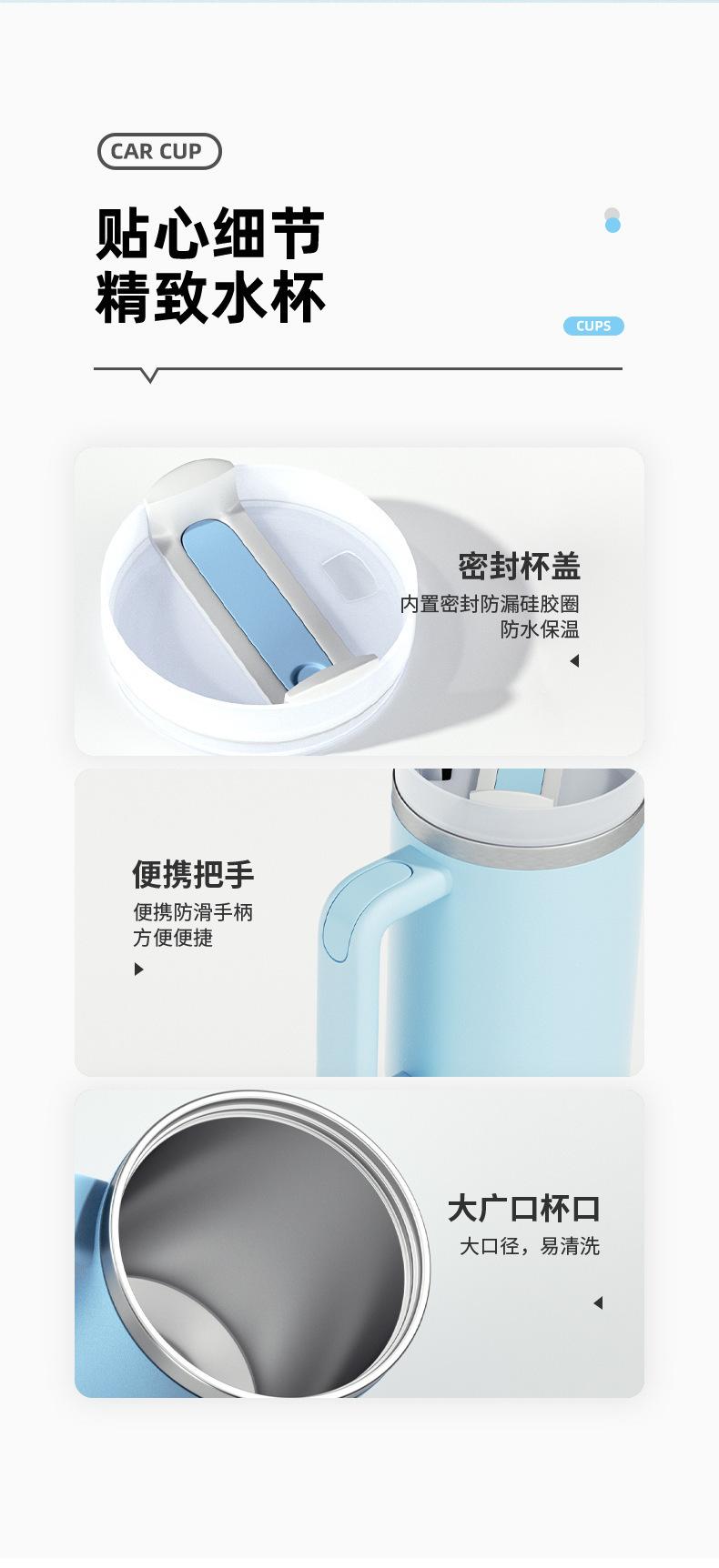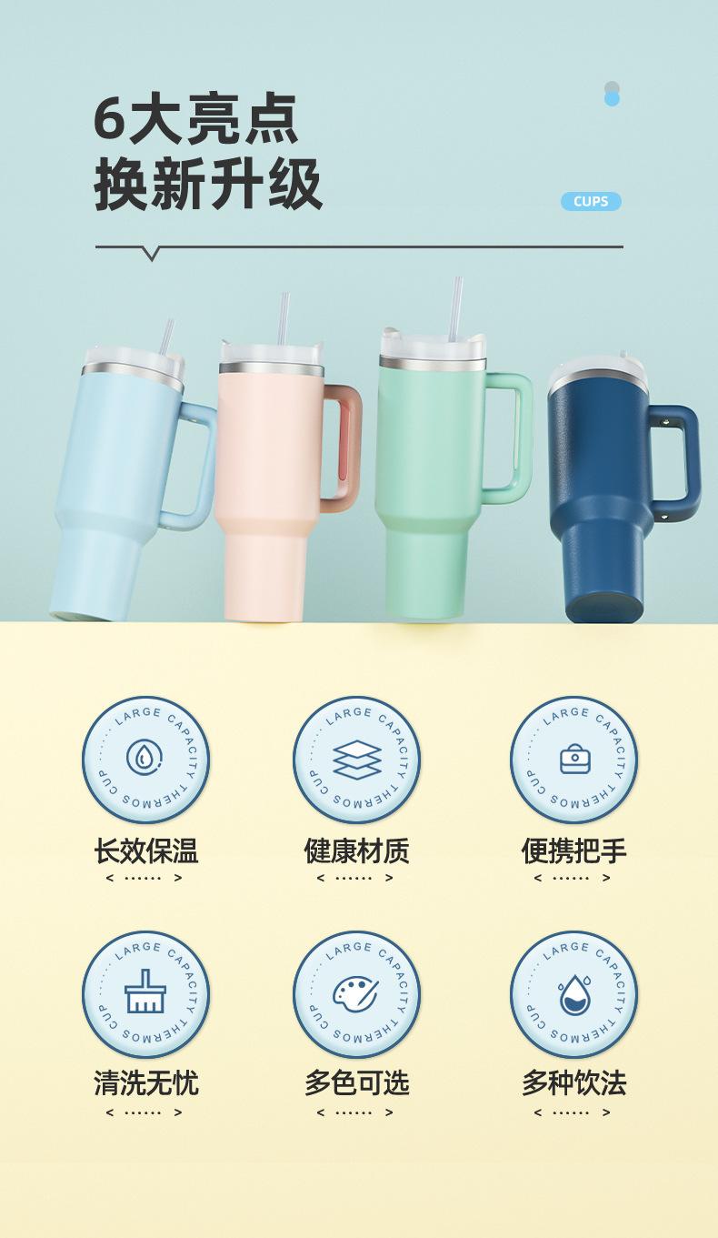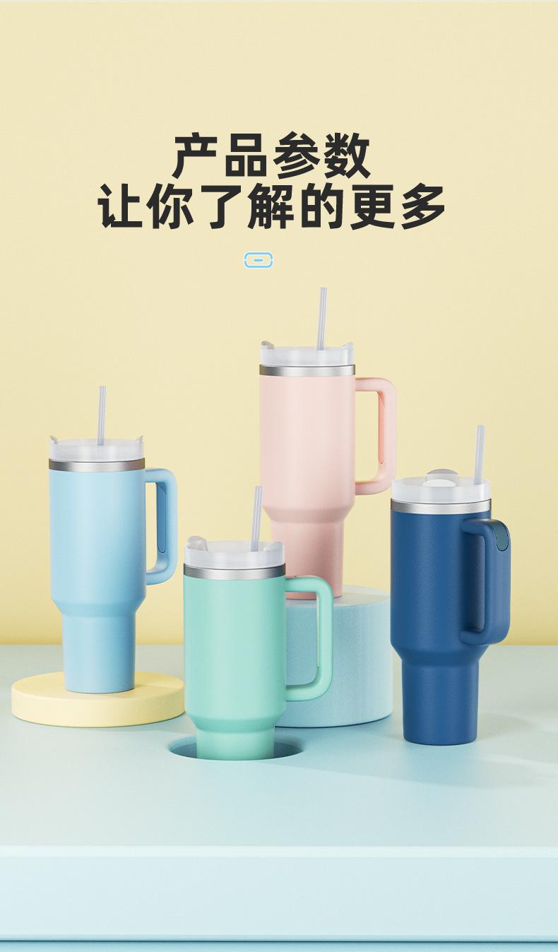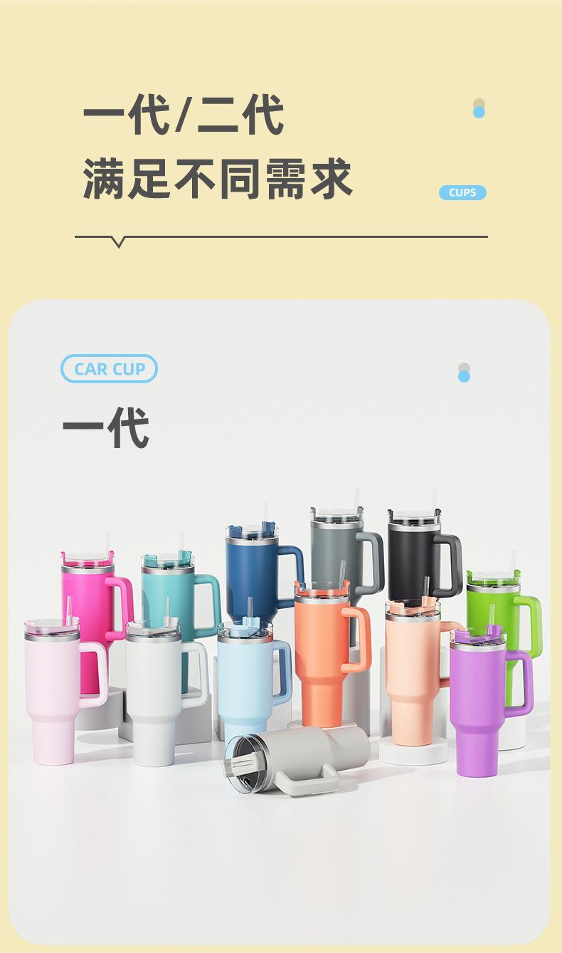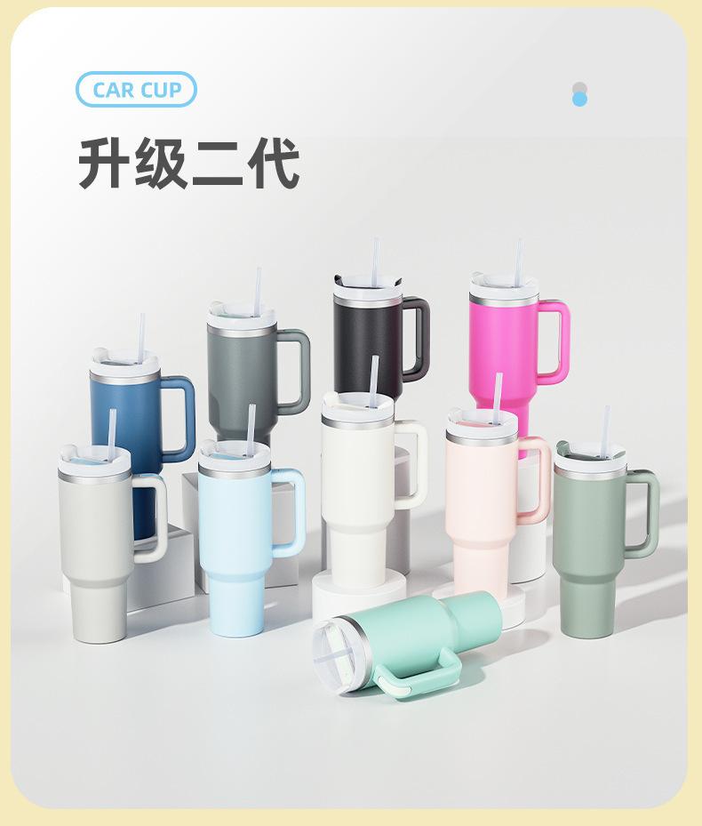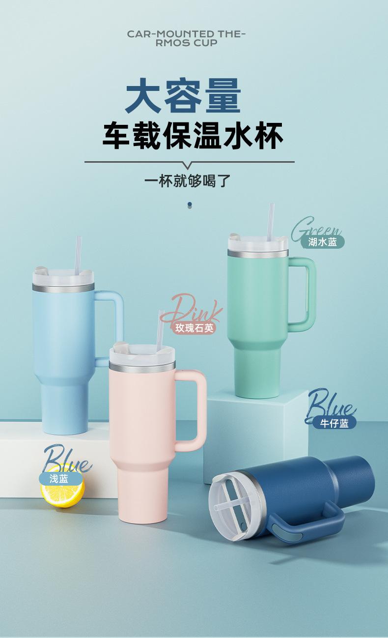 Vaso para Coche de Amazon 40oz con Asa Vaso Aislado Acero Inoxidable 304 Conserva Frío Popote Vaso para Hielo Personalizado Montado para Coche