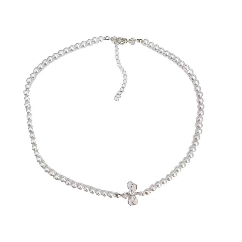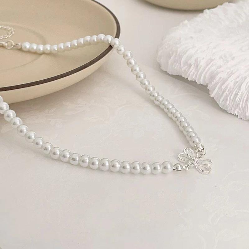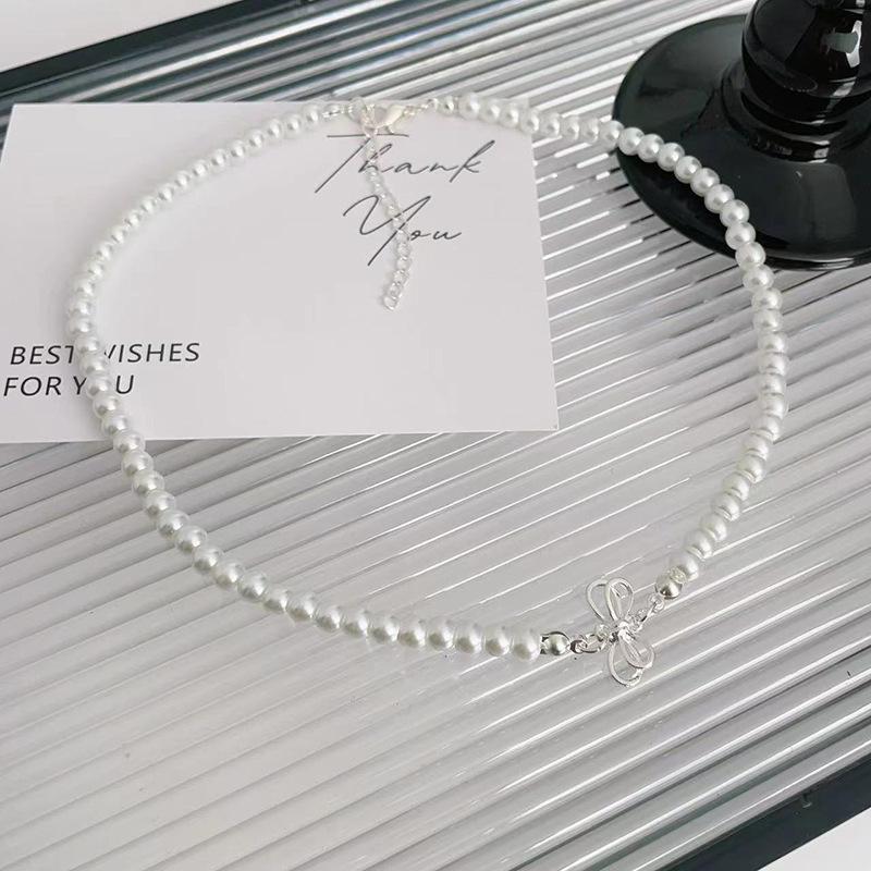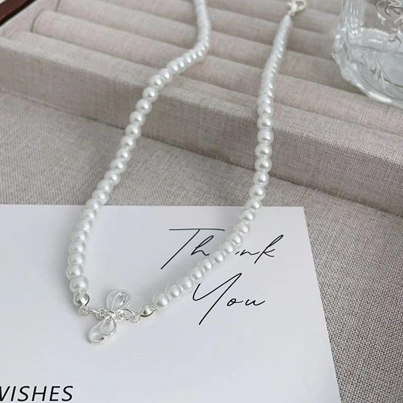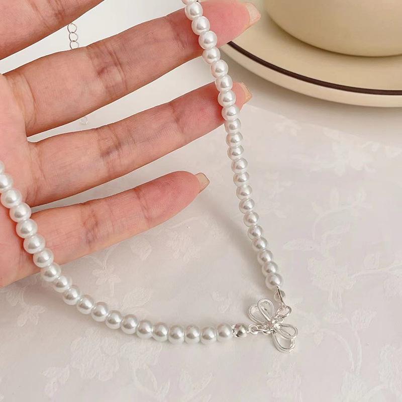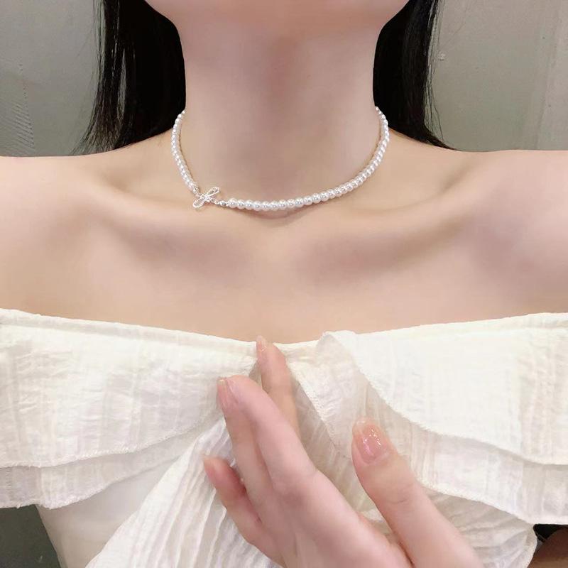 Collar de perlas con lazo de lujo ligero para mujer, diseño de nicho, cadena de collar de alta gama, collar elegante de moda, accesorios para collares