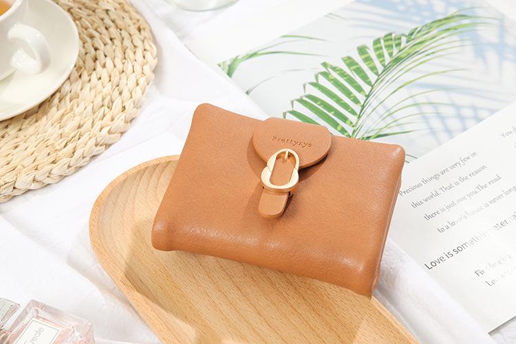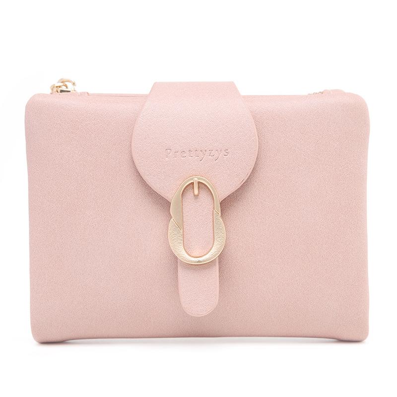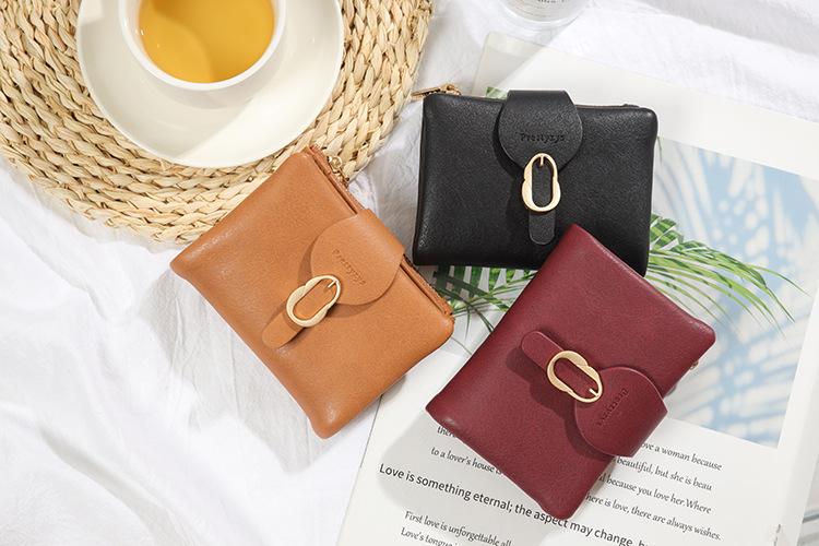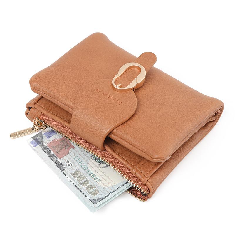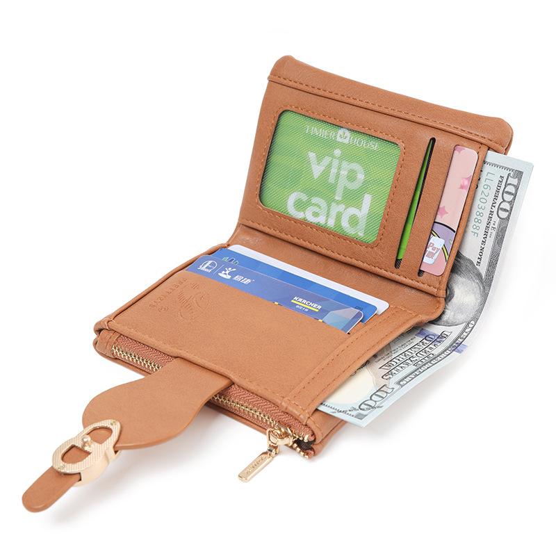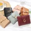 Cartera corta para mujer nueva 2024 estilo coreano PU cuero suave simple todo-combina monedero plegable con cierre de anillo