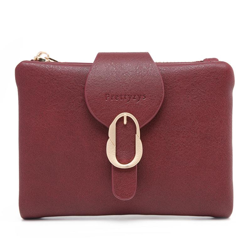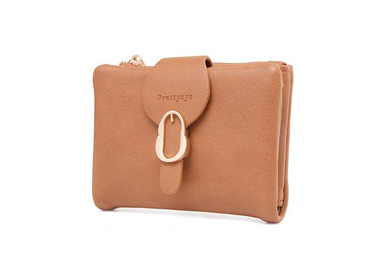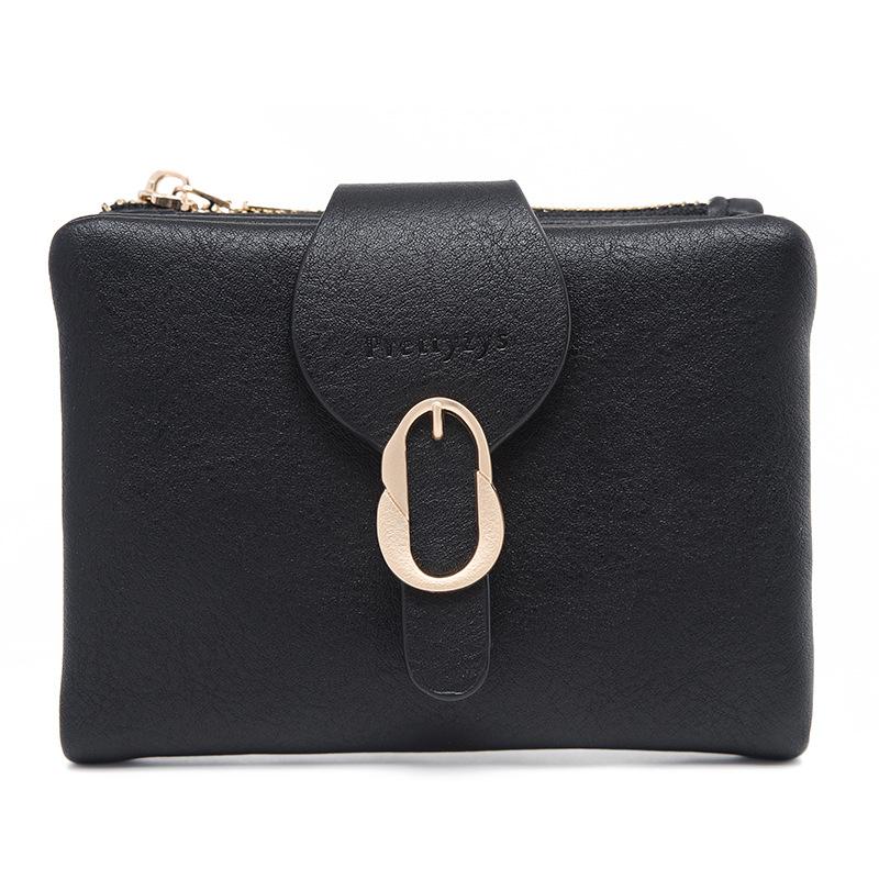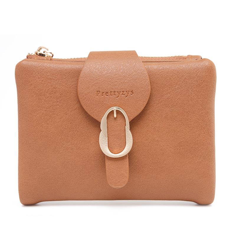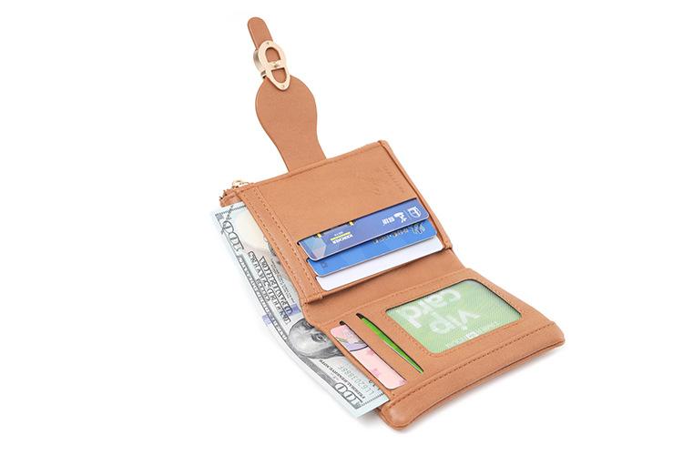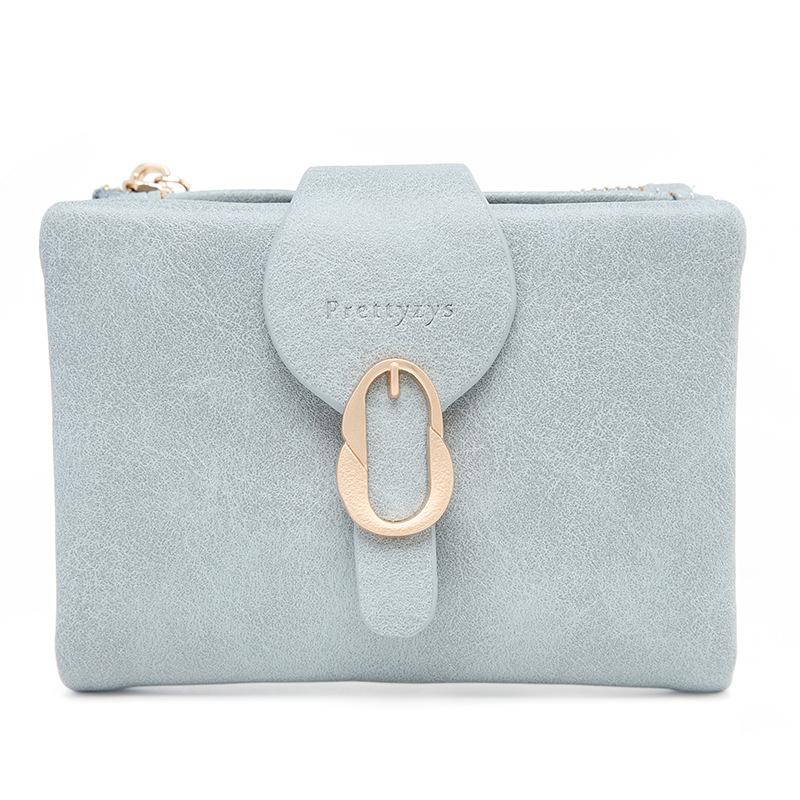 Cartera corta esmerilada, monedero con cremallera vertical y hebilla de hoja retro de comercio exterior de Amazon, cartera de moda simple