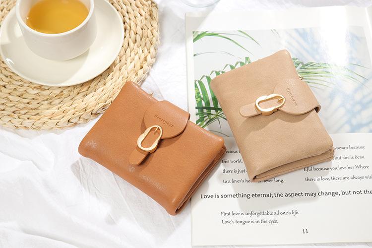 Cartera esmerilada Yiren Beibei para mujer, estilo nicho corto, estilo europeo y americano, estilo retro, linda, con tres pliegues y múltiples tarjetas para mujer