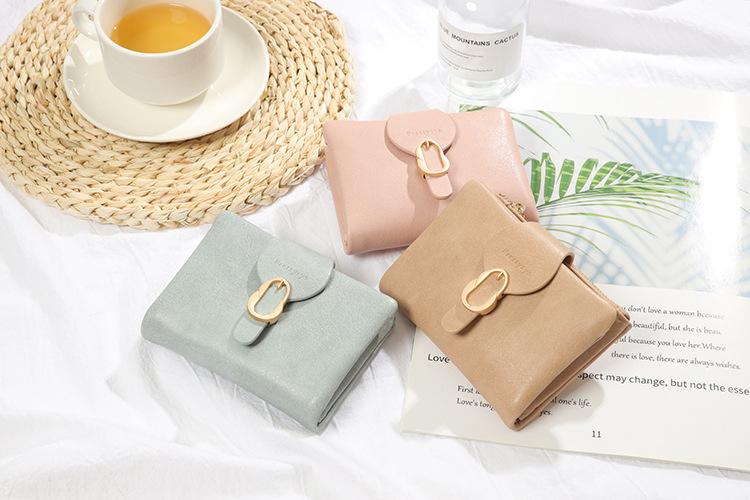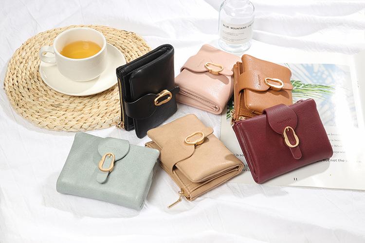 Cartera de mujer 2022, corta, para estudiante, de color sólido, estilo coreano, pequeña, fresca, con tres pliegues, multifunción, monedero
