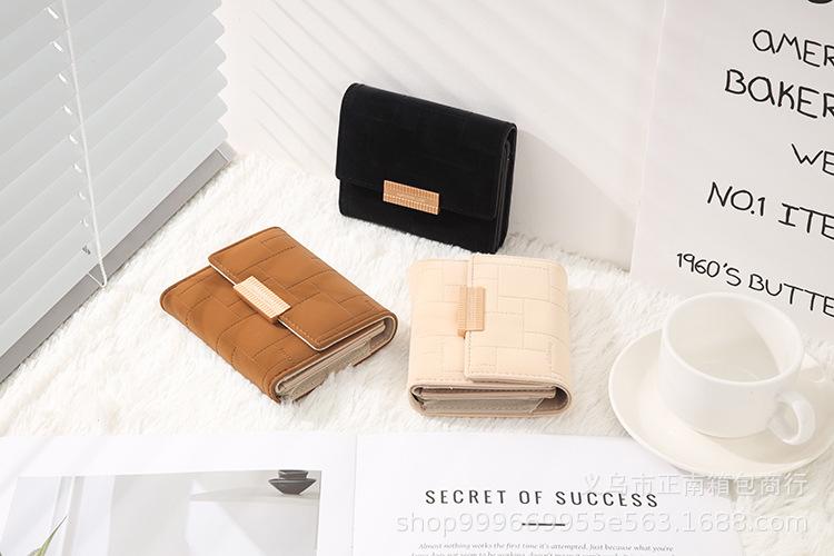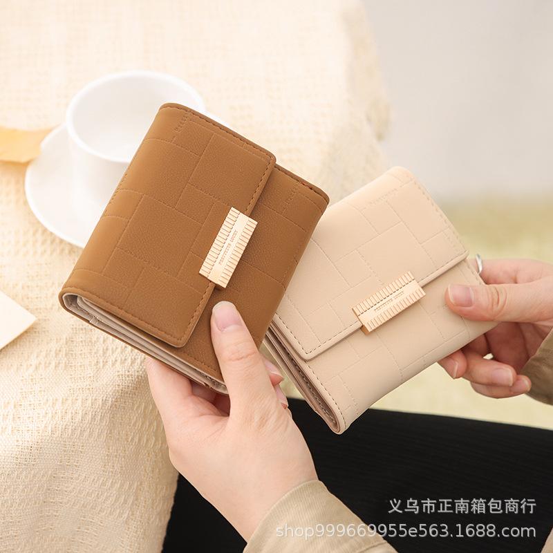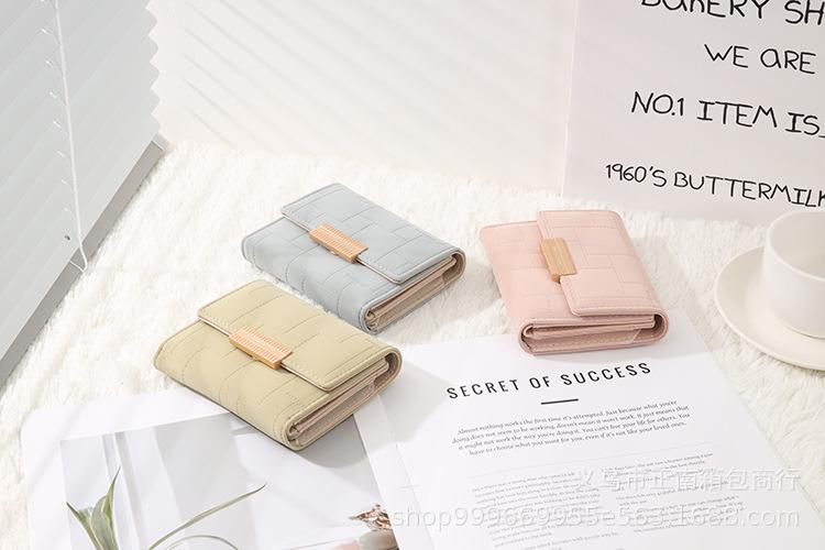 Cartera de mujer 2022, corta, para estudiante, de color sólido, estilo coreano, pequeña, fresca, con tres pliegues, multifunción, monedero |