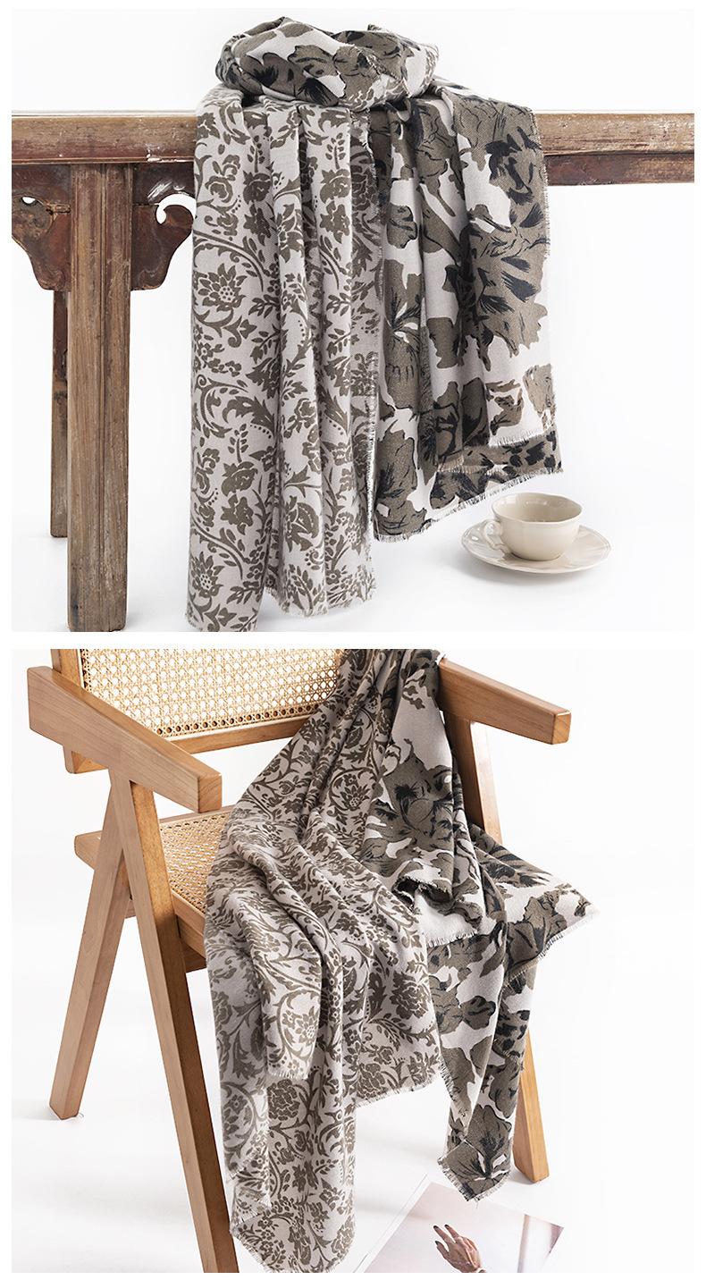 Bufanda Floral Personalizada de Cachemira Imitación para Mujer Ropa de Trabajo de Invierno Protección contra el Frío Bufanda para el Cuello Chal Cálido Elegante y a la Moda Venta al por Mayor