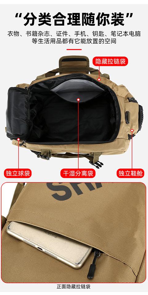 Mochila Deportiva para Exterior, Bolso de Viaje de Gran Capacidad, Bolsa de Viaje para Corta Distancia, Separación Seco y Húmedo, Interfaz USB