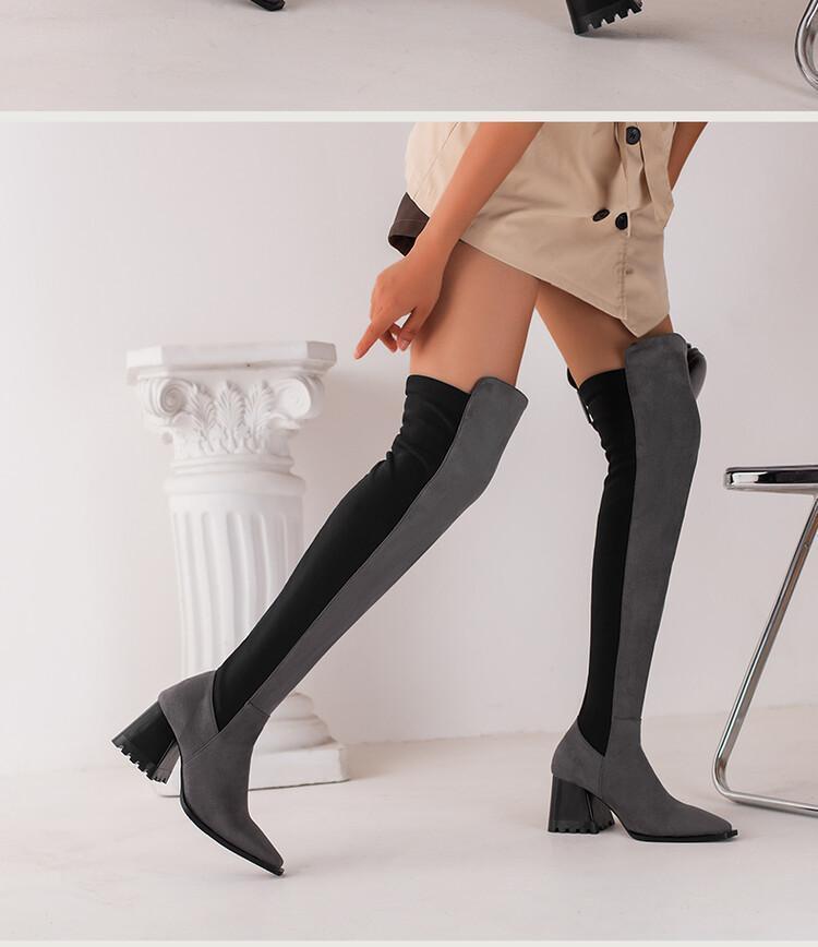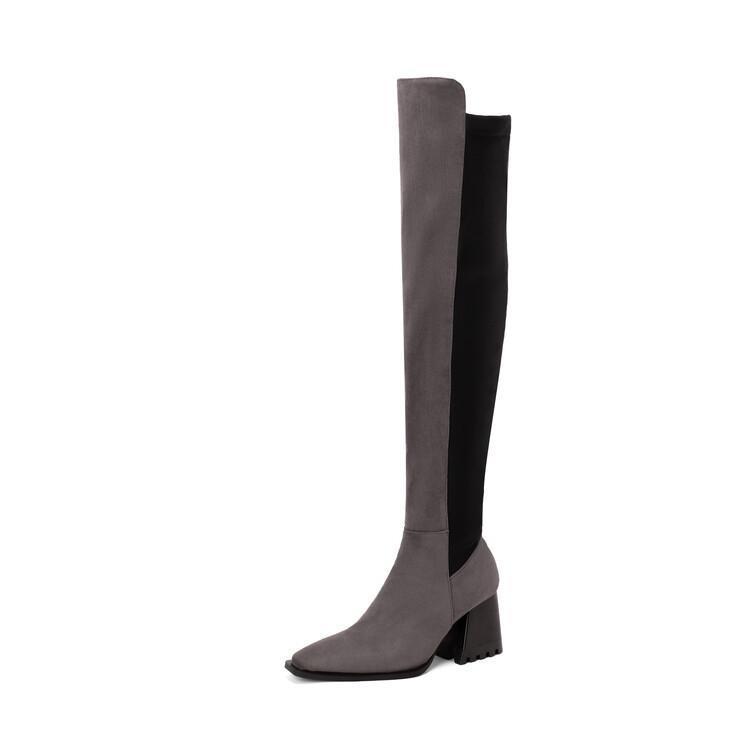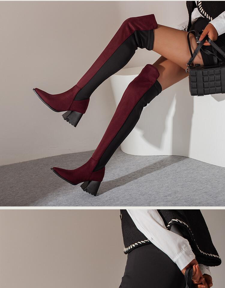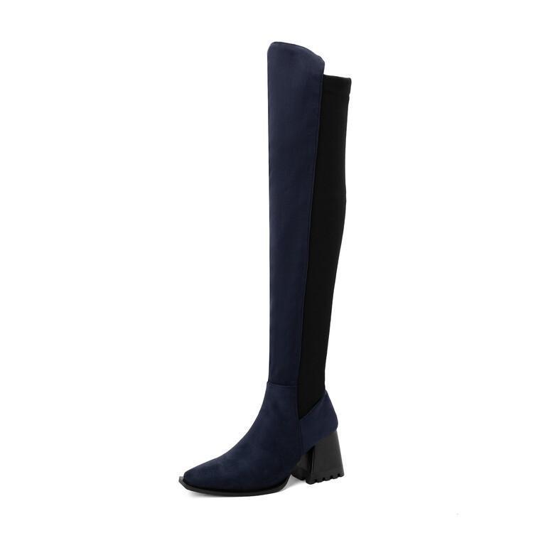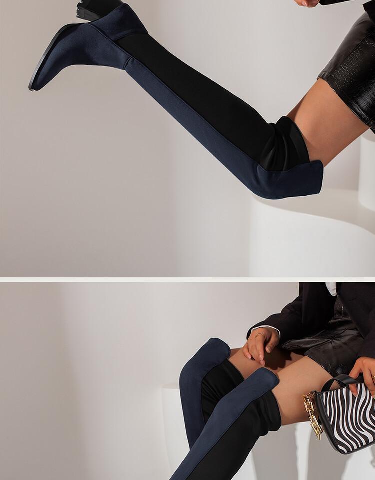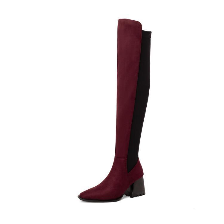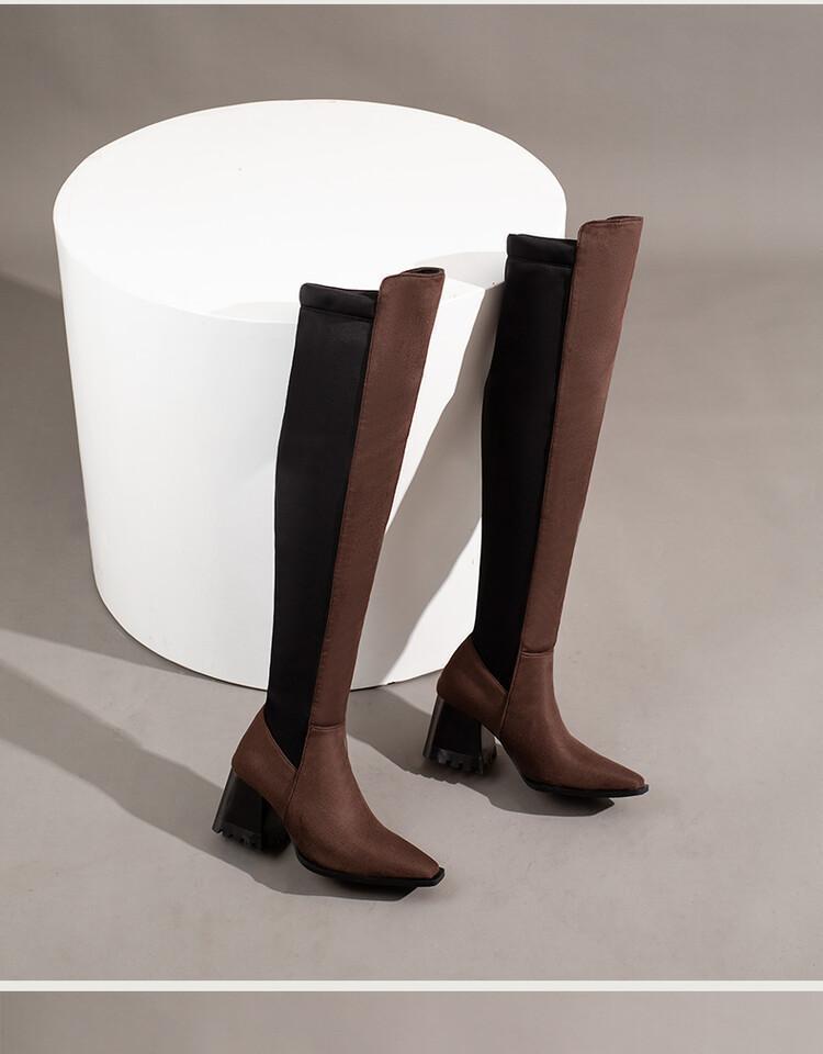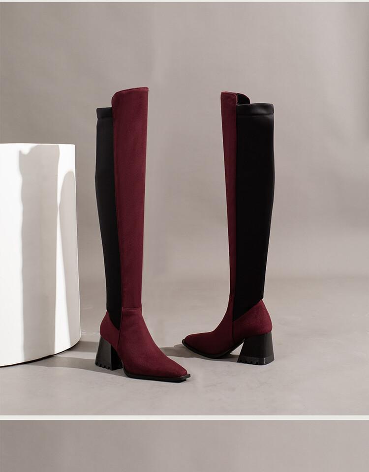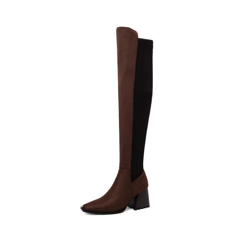 Botas Elásticas por Encima de la Rodilla para Mujer Yingmeier Otoño e Invierno 2022, Botas Retro de Montar con Tacón Grueso de Bloques de Color, Botas Largas para Mujer