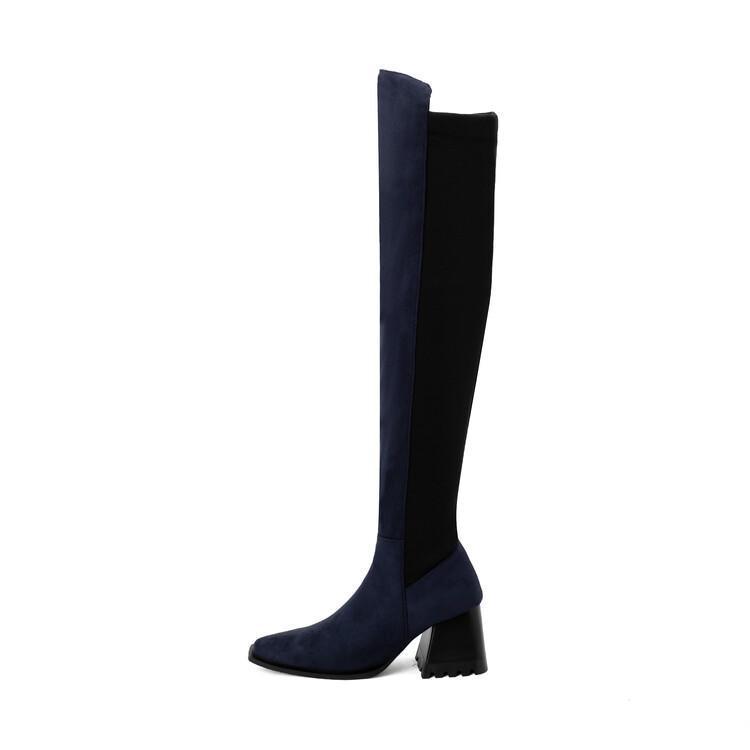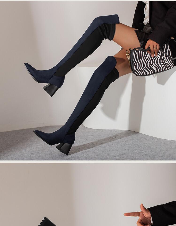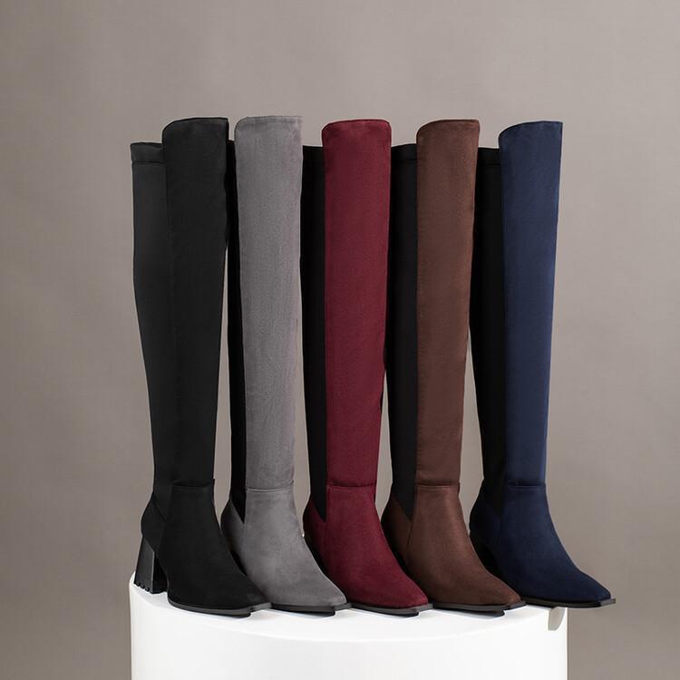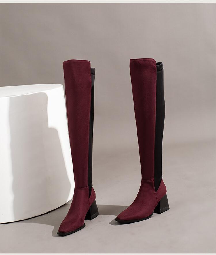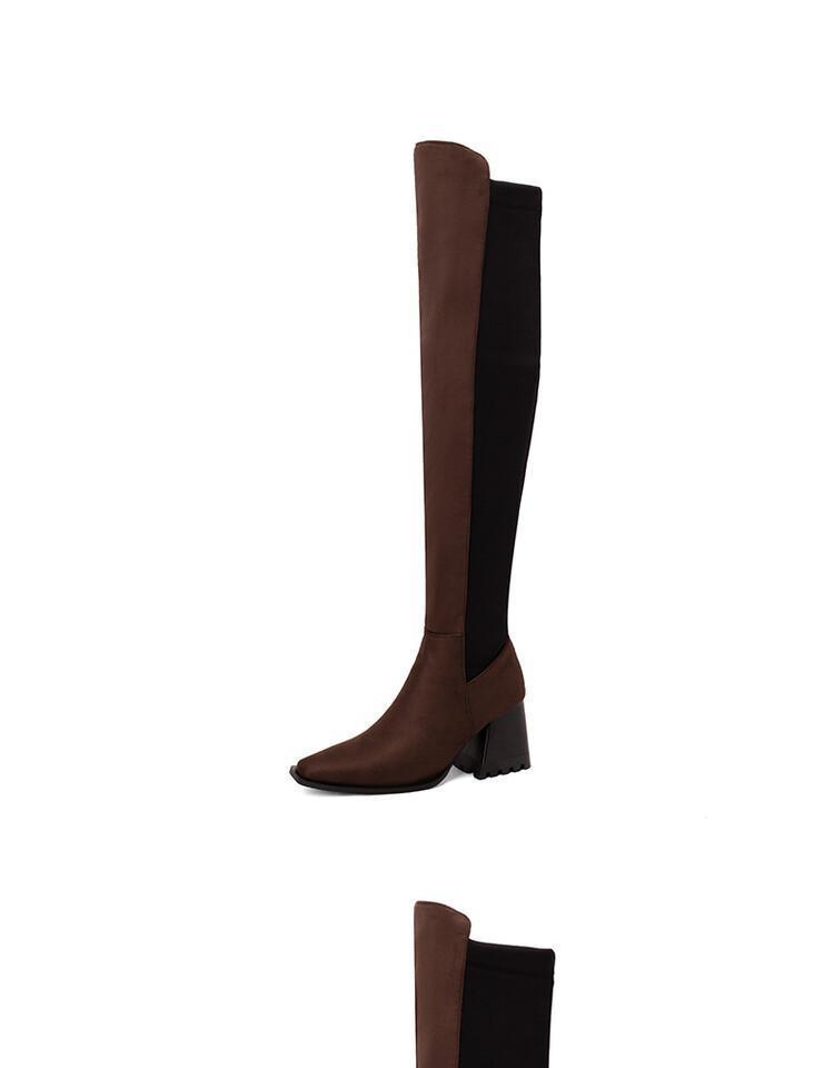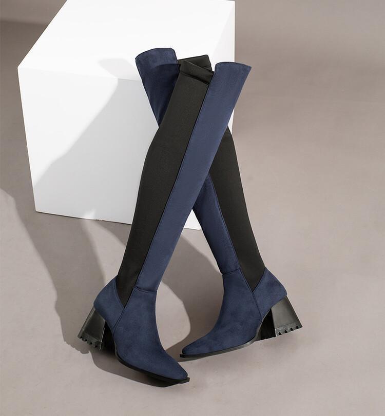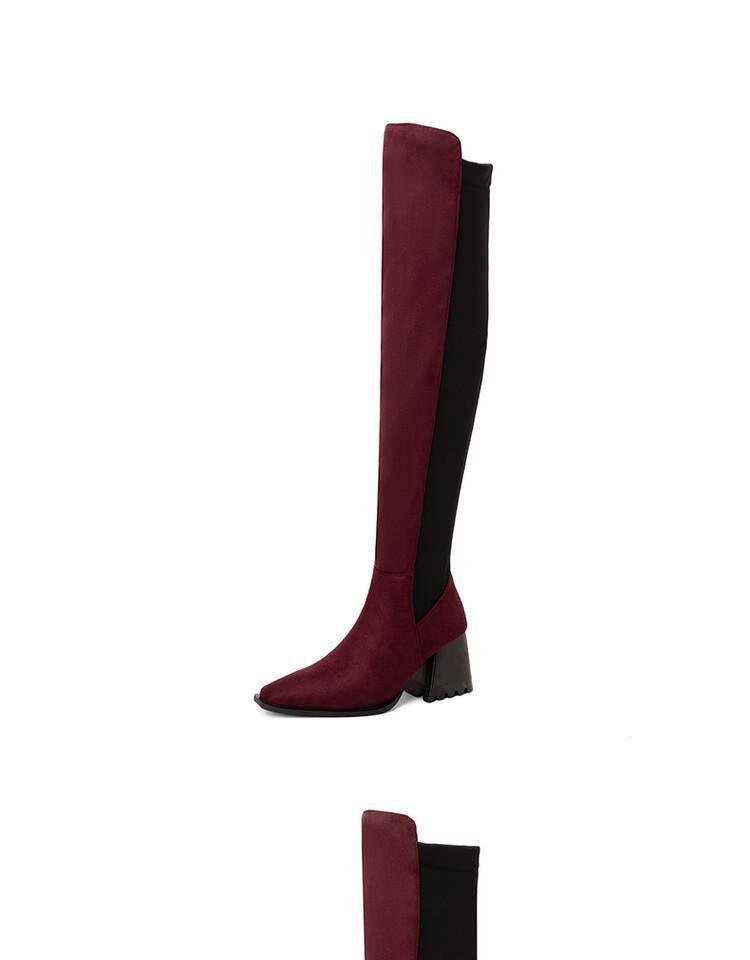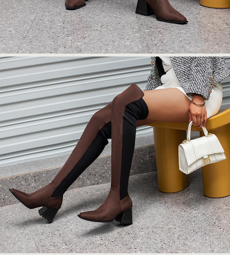 Botas Elásticas por Encima de la Rodilla para Mujer Yingmeier Otoño e Invierno 2022, Botas Retro de Montar con Tacón Grueso de Bloques de Color, Botas Largas para Mujer