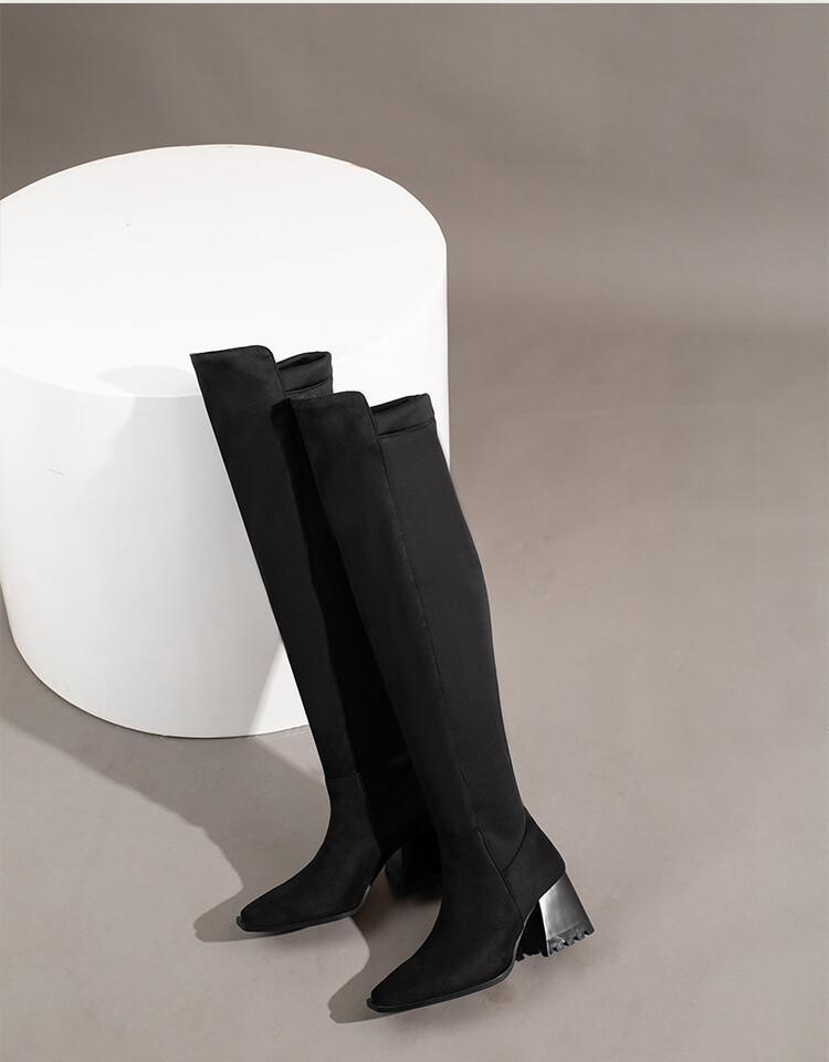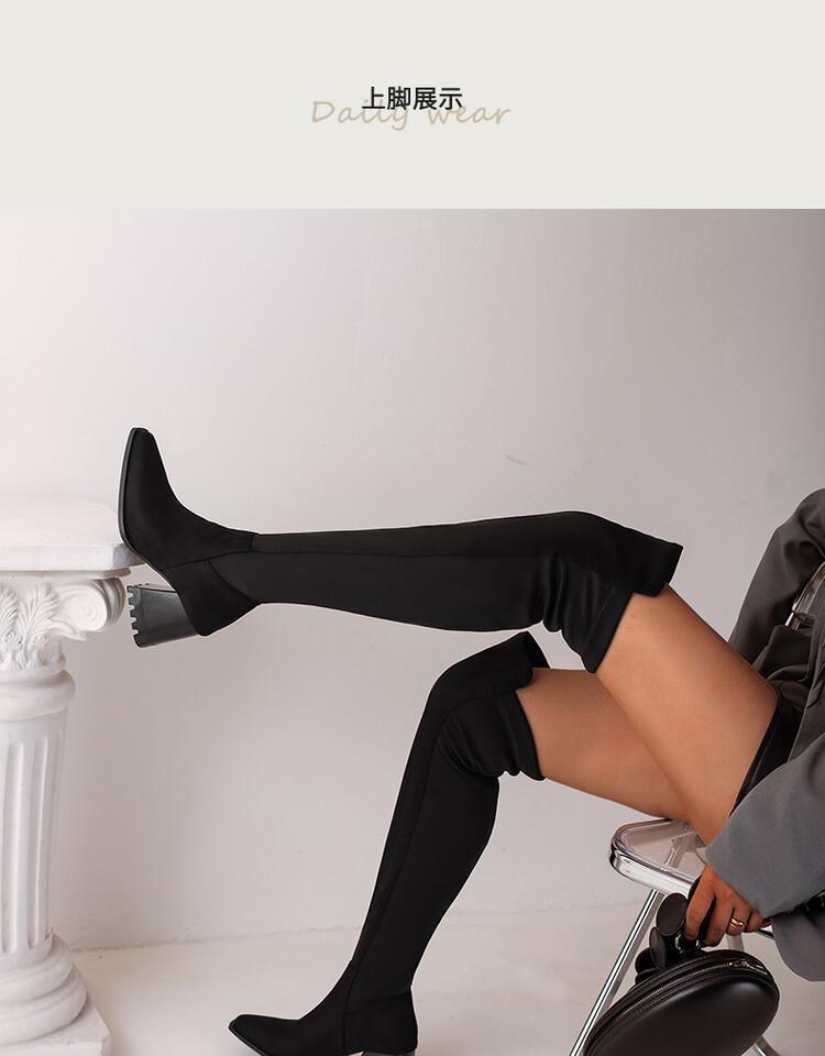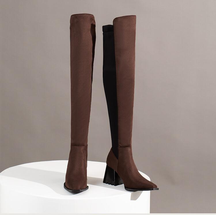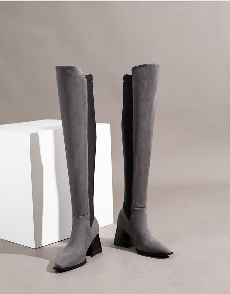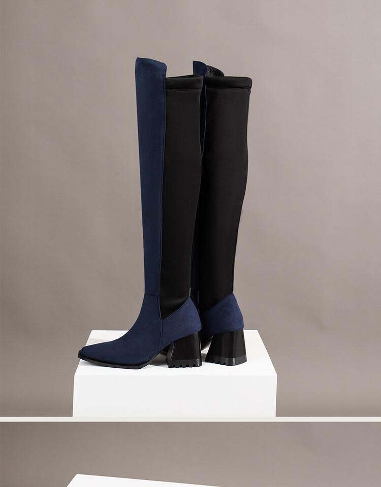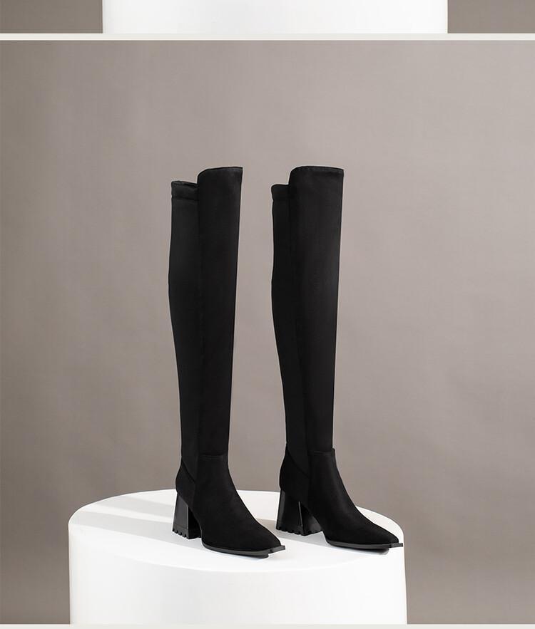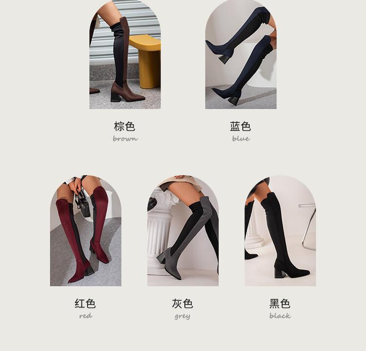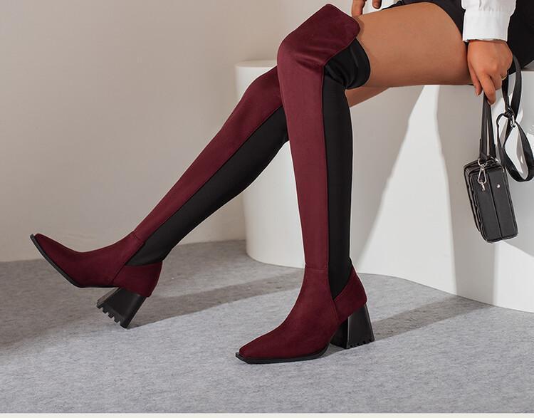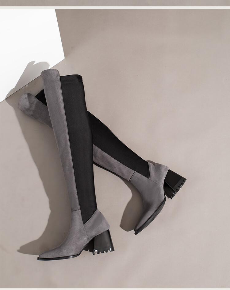 Botas Elásticas por Encima de la Rodilla para Mujer Yingmeier Otoño e Invierno 2022, Botas Retro de Montar con Tacón Grueso de Bloques de Color, Botas Largas para Mujer