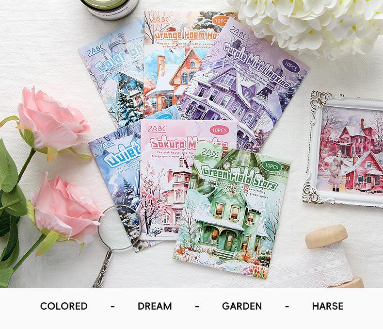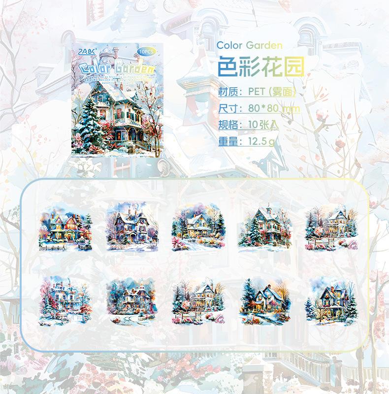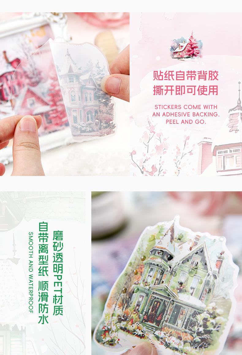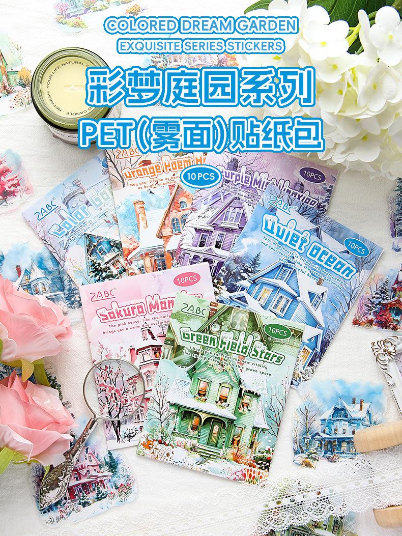 Pegatinas impermeables para mascotas, diseño de niebla de jardín de ensueño colorido, para bolsa, para diario, cuentas de mano, decoración de castillo, transfronterizas