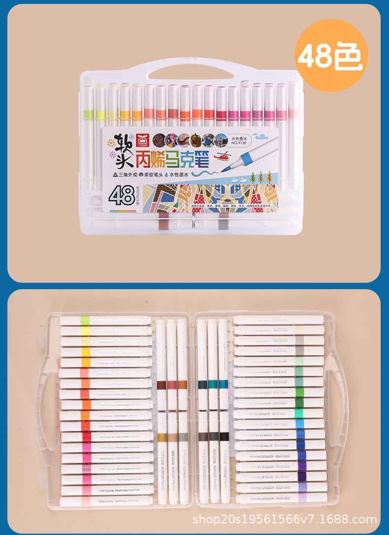 Rotulador triangular acrílico, caja de colores, pintura artística para niños, estudiantes, papelería especial, bolígrafo de acuarela, juego de cabezal suave