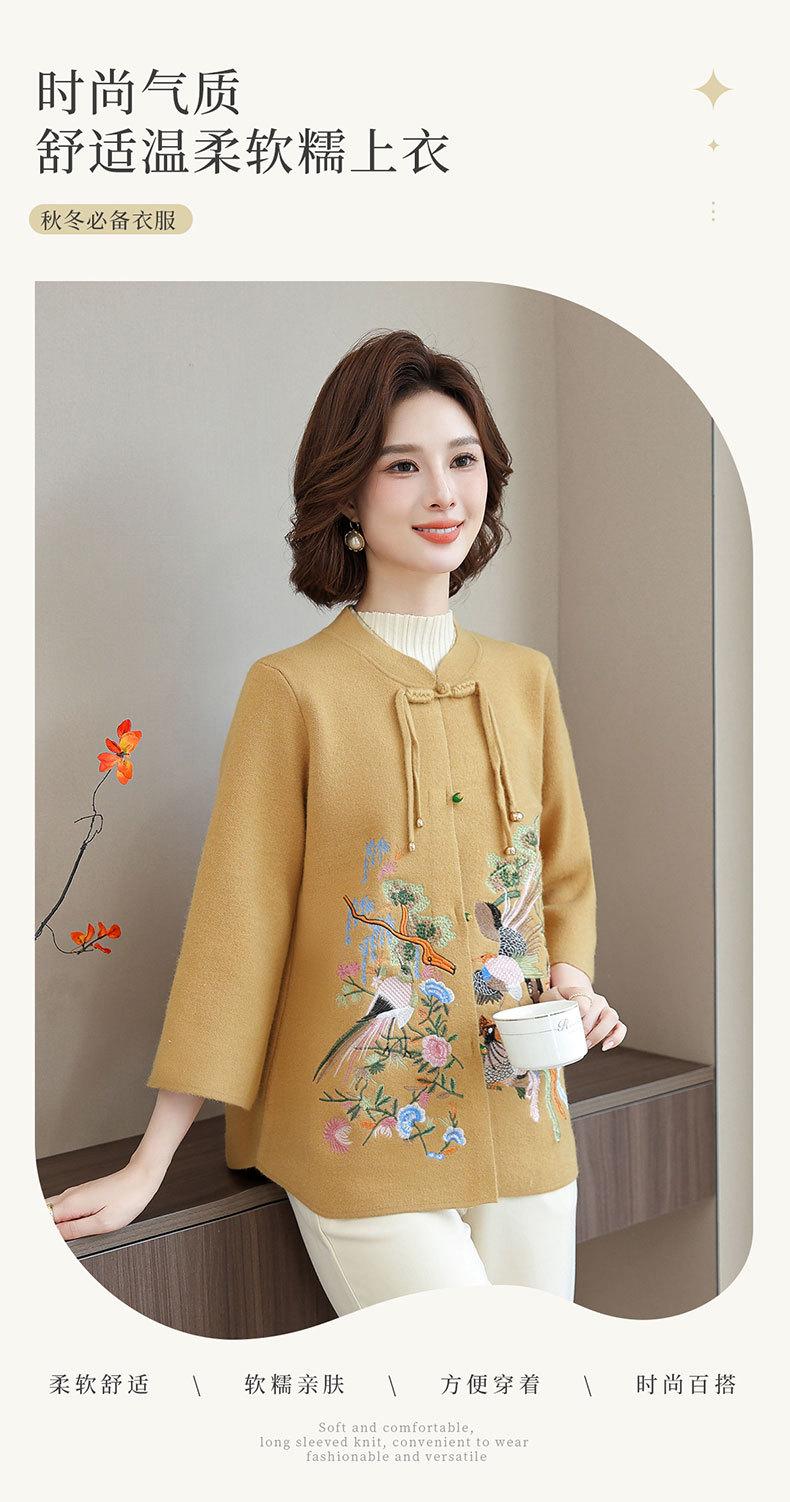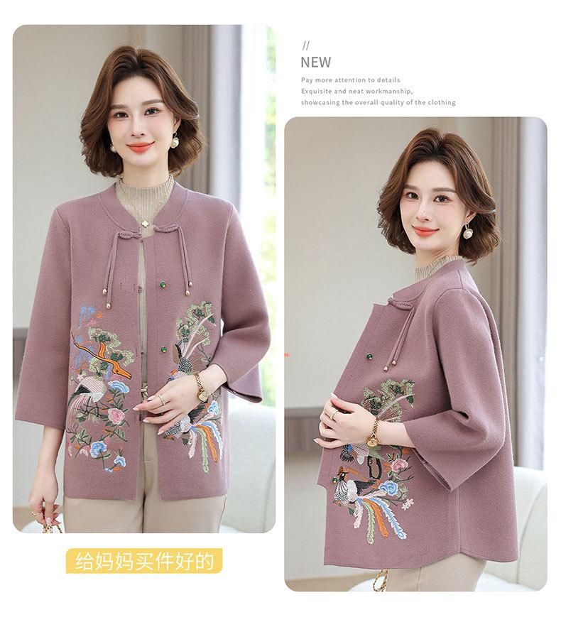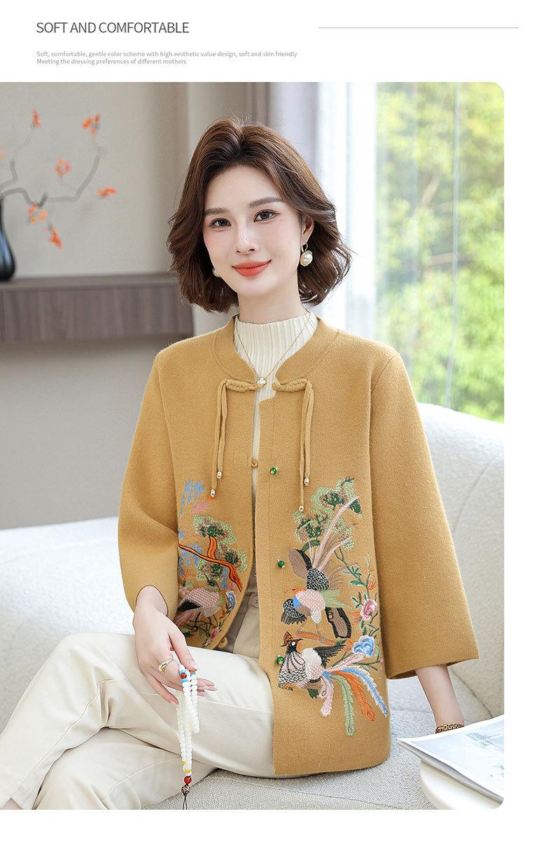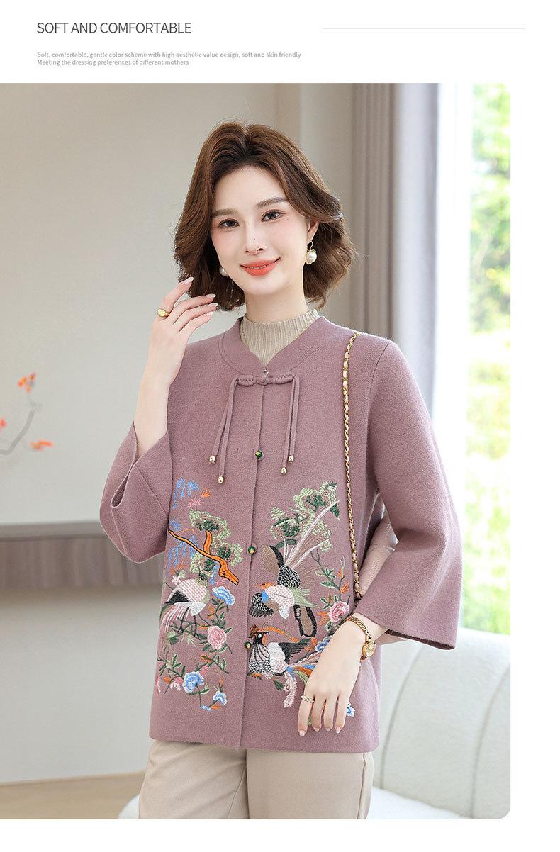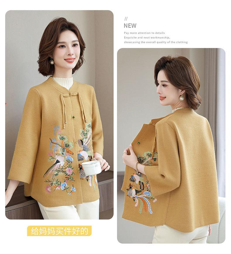 Nueva Chaqueta de Otoño de Estilo Chino para Madres, Ropa Elegante para Mujeres de Mediana Edad y Mayores, Cárdigan de Punto de Estilo Nacional Nuevo para Primavera y Otoño 2025
