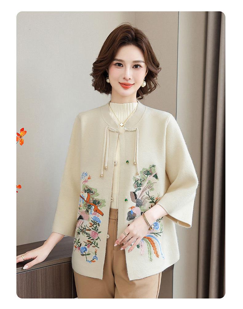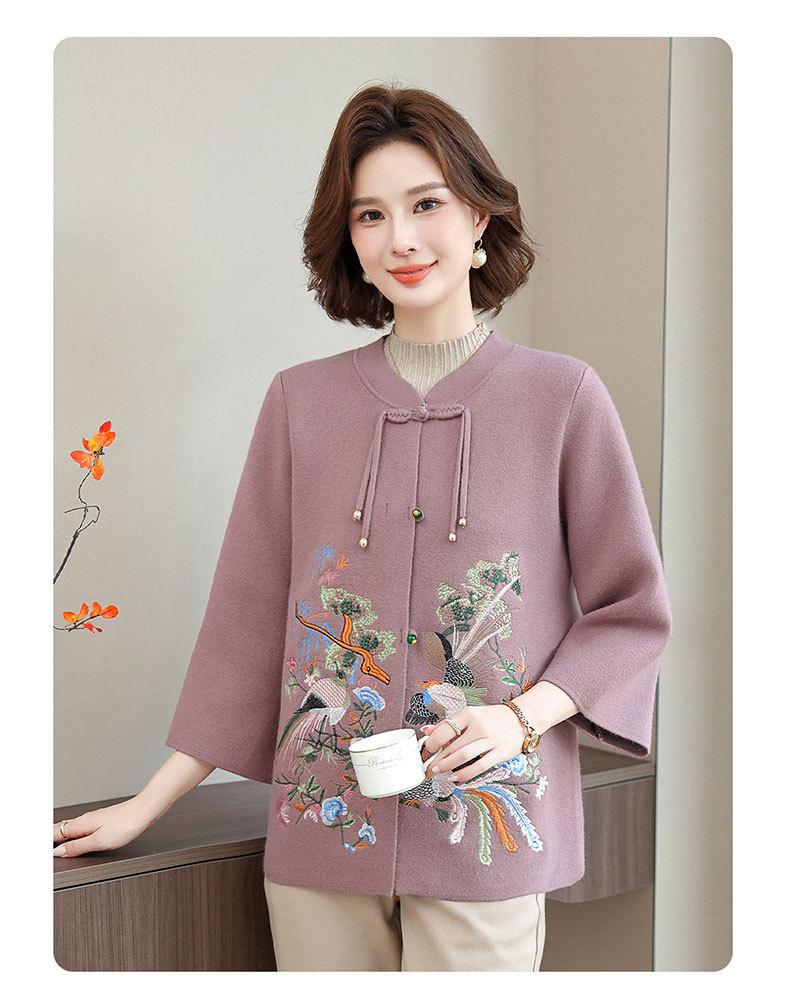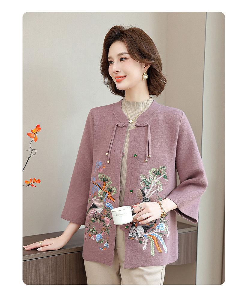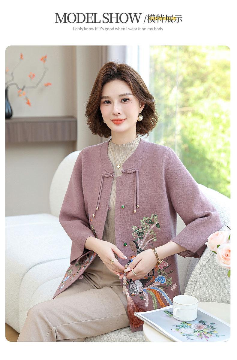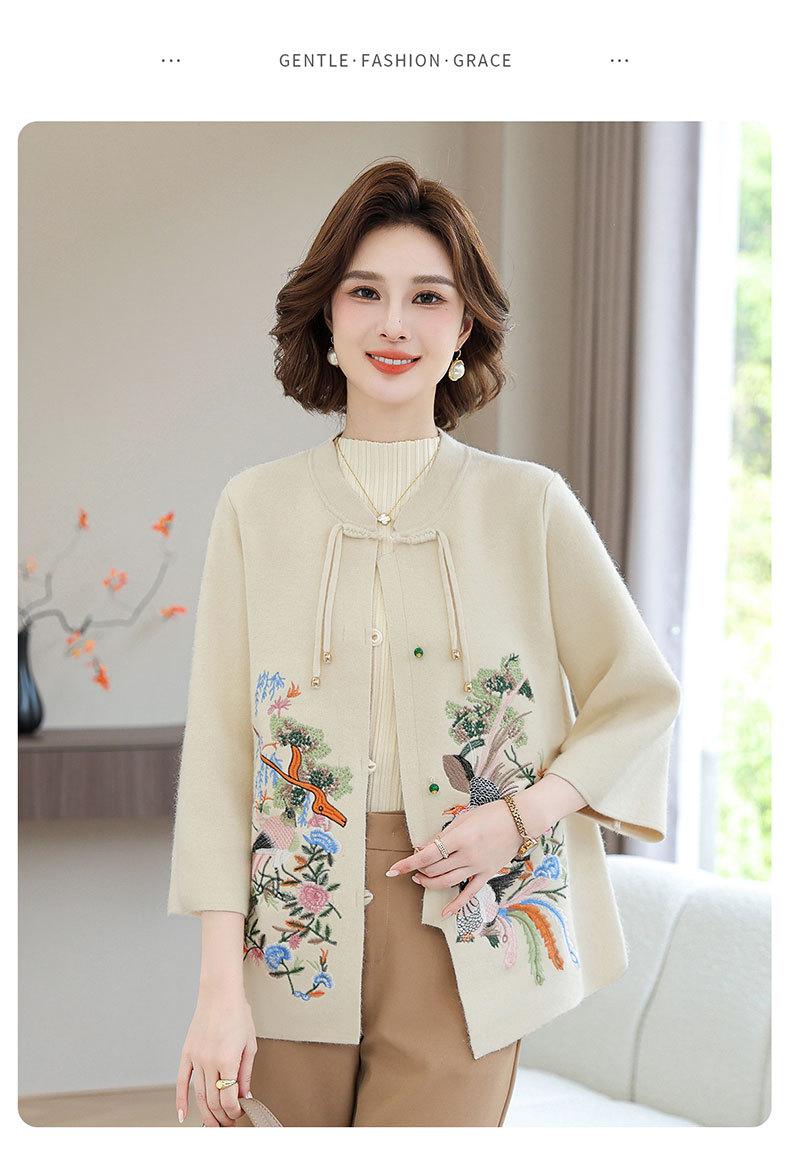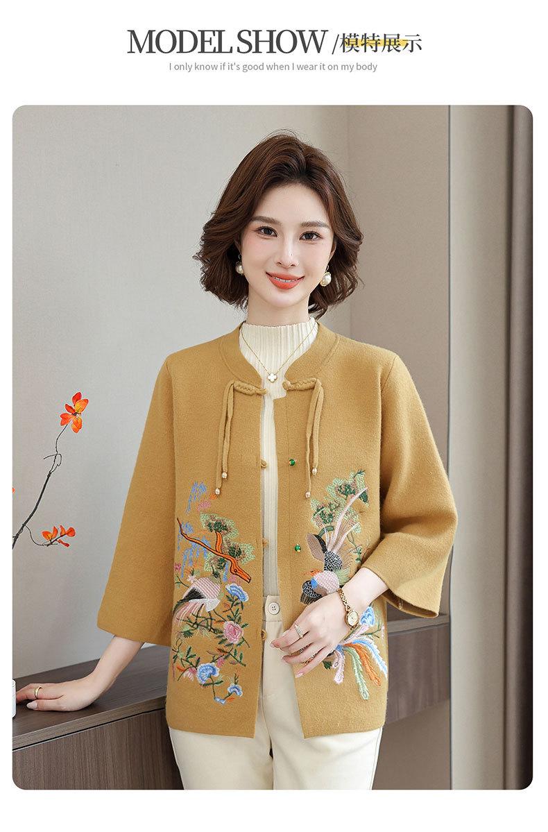 Nueva Chaqueta de Otoño de Estilo Chino para Madres, Ropa Elegante para Mujeres de Mediana Edad y Mayores, Cárdigan de Punto de Estilo Nacional Nuevo para Primavera y Otoño 2025