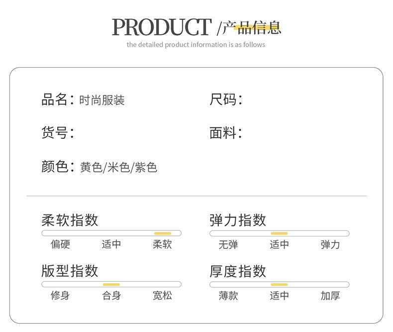 Yellow, Beige, Purple, Yellow + black bottoming shirt, Yellow + apricot bottoming shirt, Beige + black bottomi...