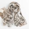 Bufanda de algodón y lino transfronteriza para mujer en primavera y otoño, color puro, bufanda de gasa japonesa y coreana, protección solar, chal cálido, bufanda de cuello simple con borde de piel.