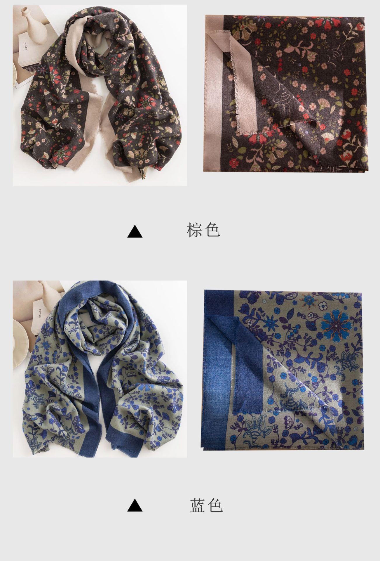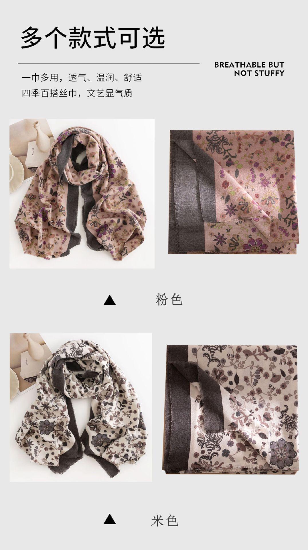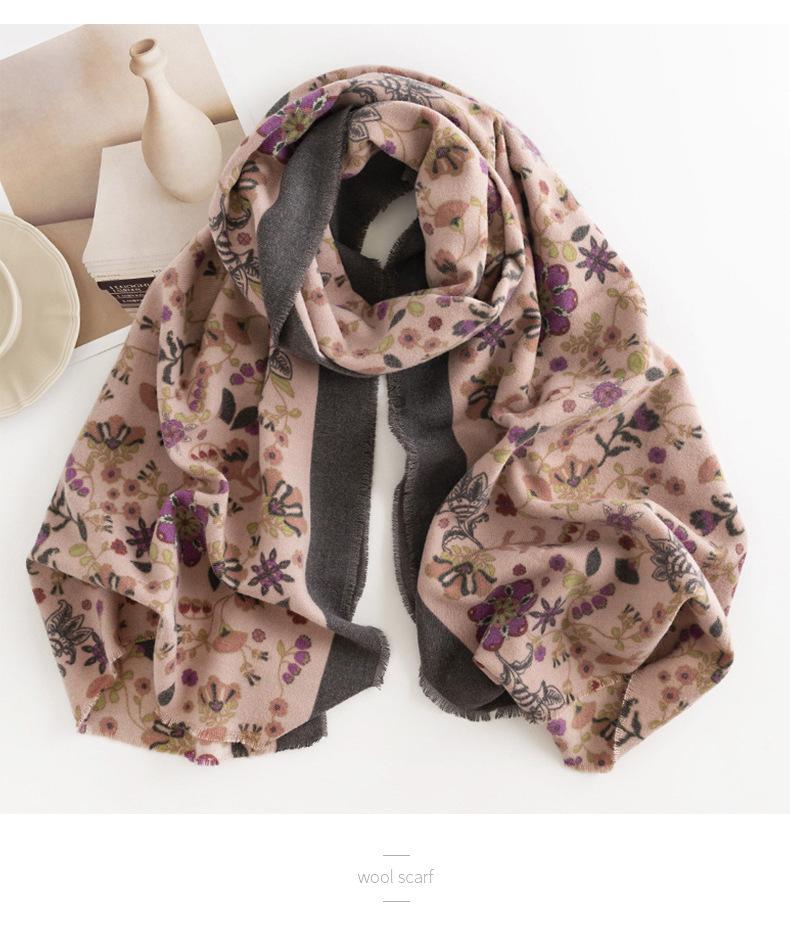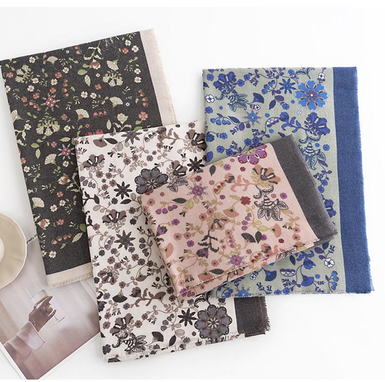 Bufanda Floral Pequeña Otoño e Invierno 2025 Estilo Elegante de Socialité Bufanda Estampada de Imitación Cachemira Bufanda Cálida y a Prueba de Frío para Mujer