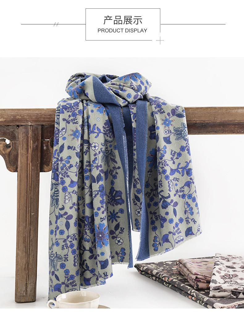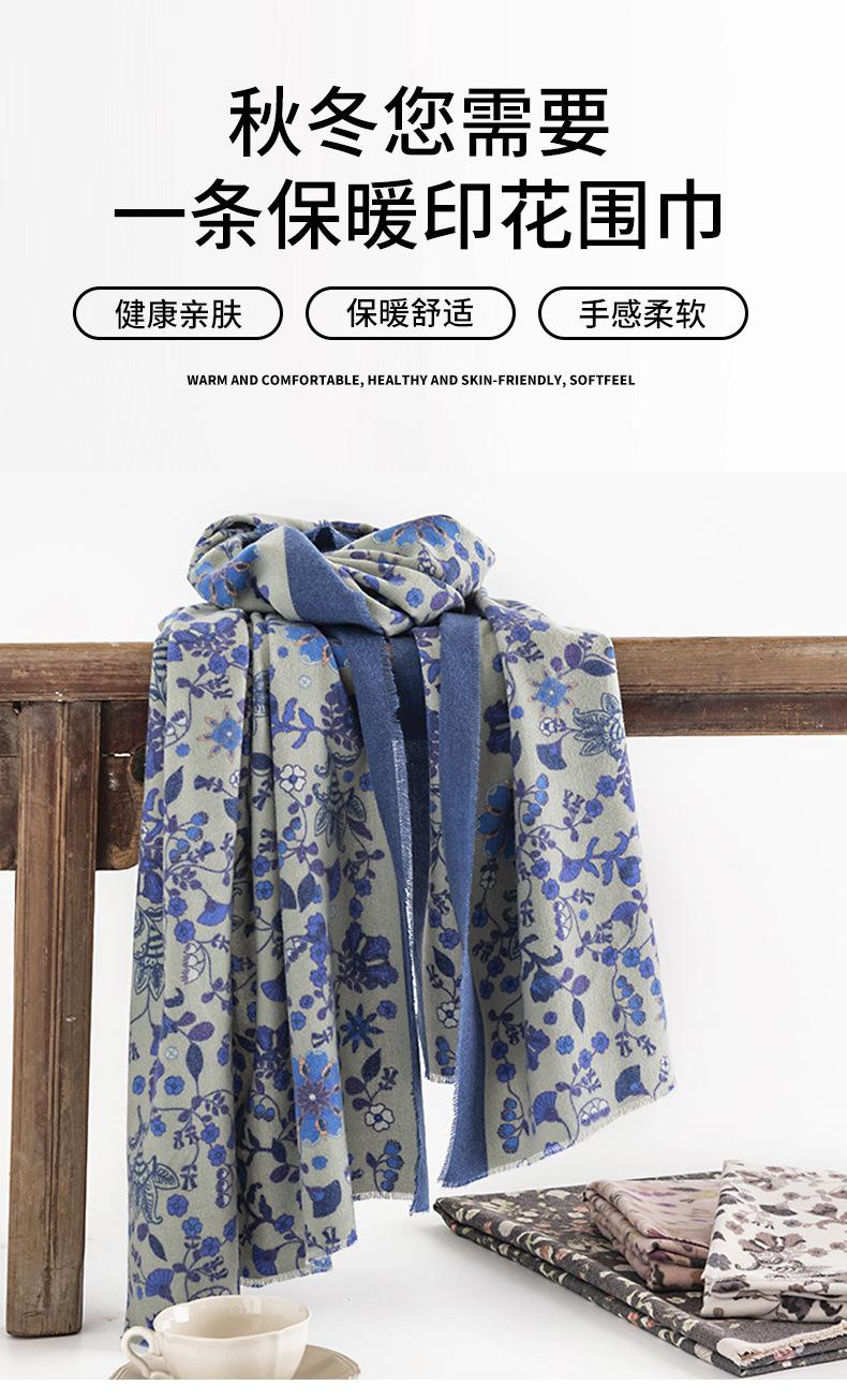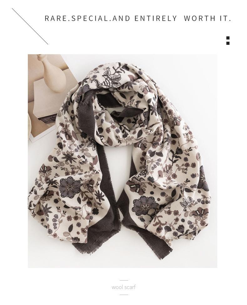Bufanda Floral Pequeña Otoño e Invierno 2025 Estilo Elegante de Socialité Bufanda Estampada de Imitación Cachemira Bufanda Cálida y a Prueba de Frío para Mujer