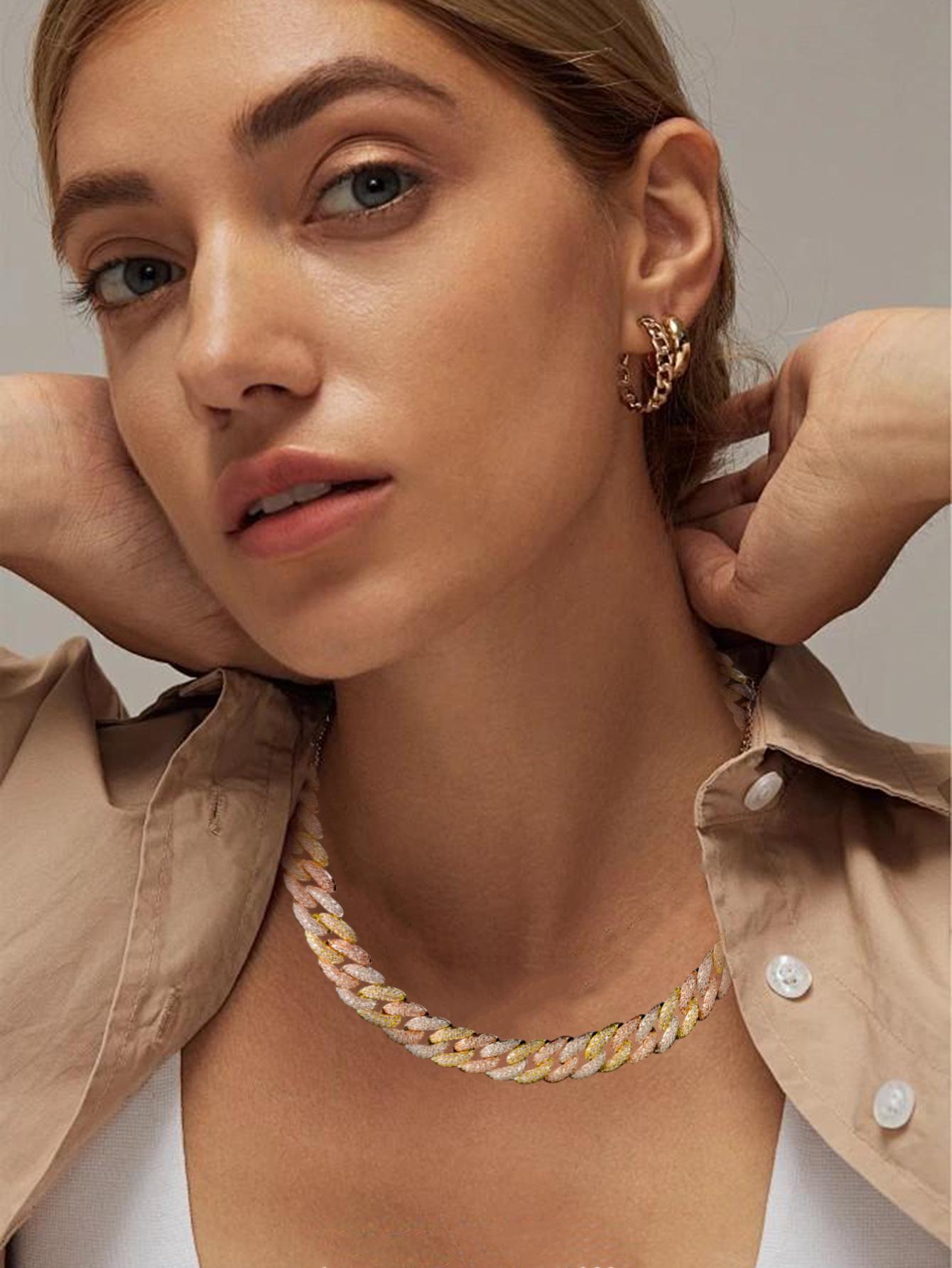 Collar con personalidad de moda transfronteriza europea y americana, cadena cubana, nuevo collar de hip hop con circón, explosiones geniales, accesorios de gran venta.