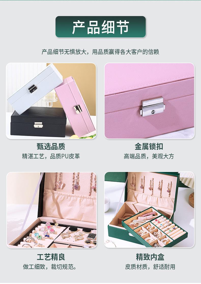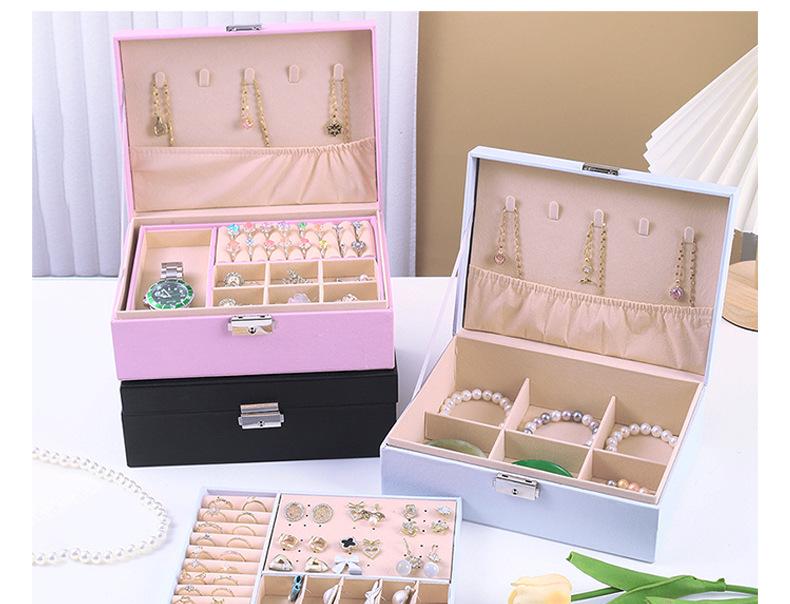 Suministro Directo de Fábrica Joyería Caja de Embalaje de Joyería Anillo Aretes Collar Caja de Almacenamiento de Joyería Caja Creativa de Doble Capa con Cerradura