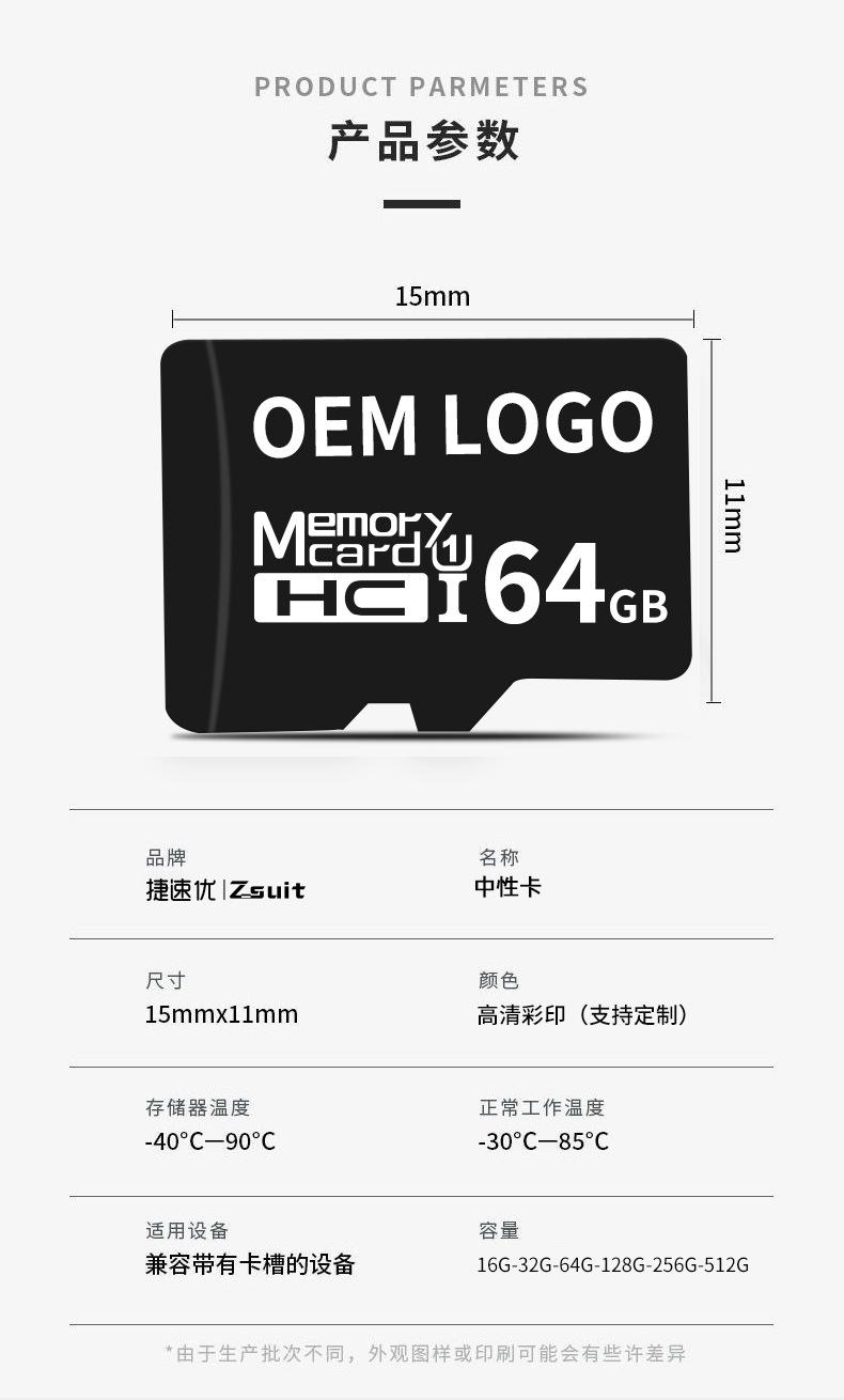 Fabricante personalizado de tarjetas TF de 16 g de almacenamiento, grabadora, cámara de vigilancia, audio inteligente, serigrafía a color, impresión de logotipo, tarjeta de memoria