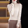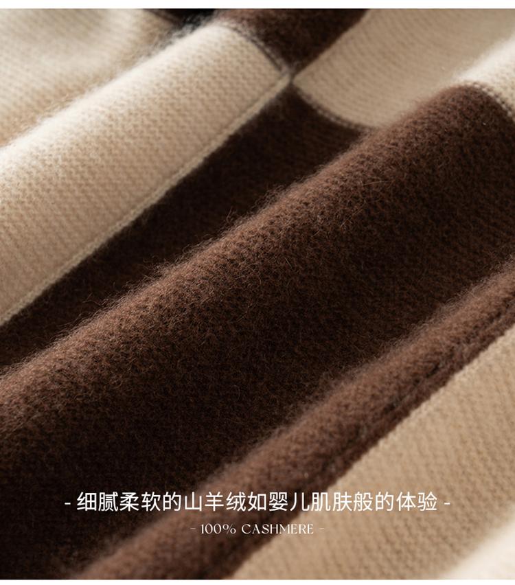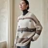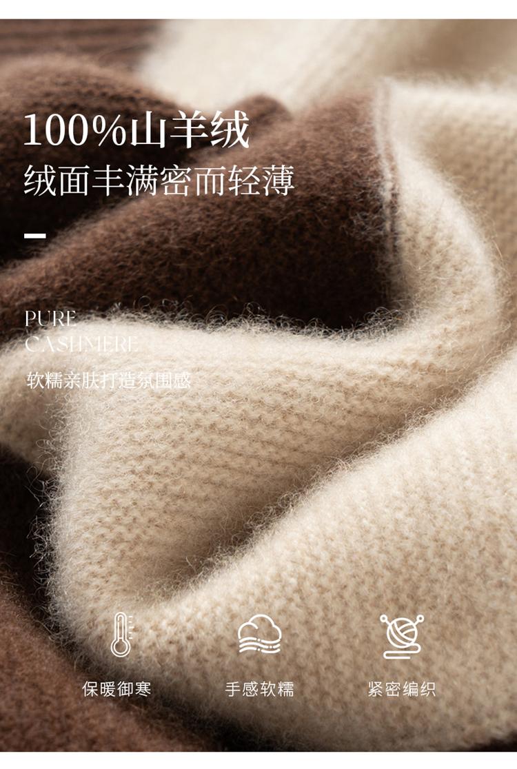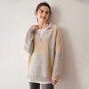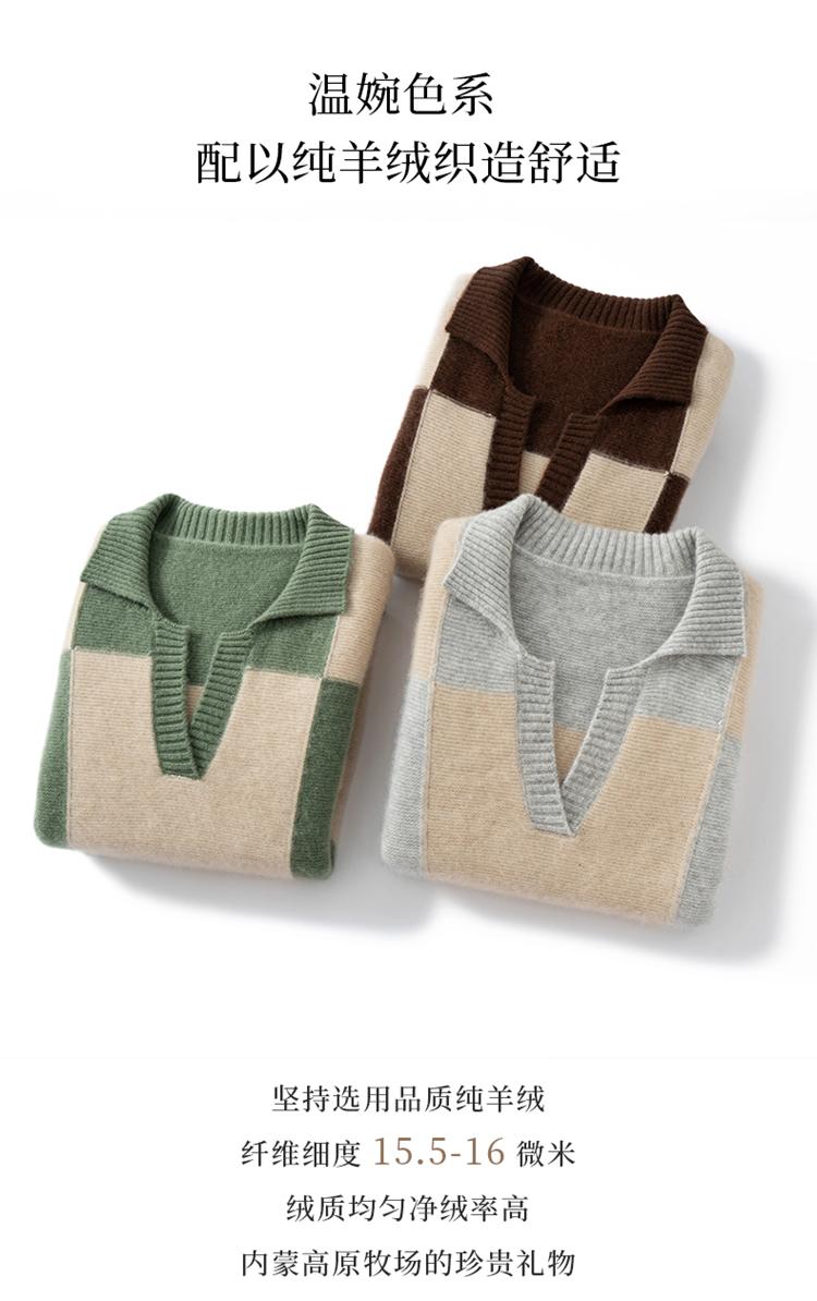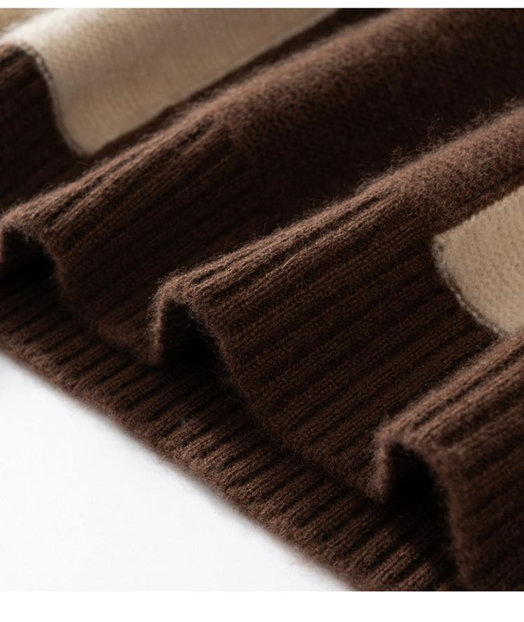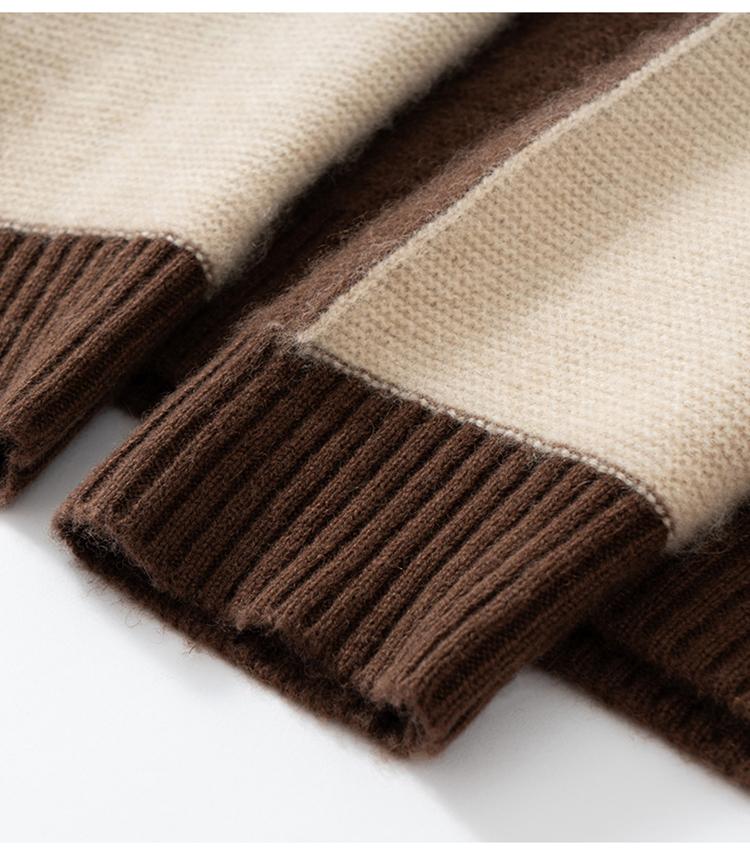 Suéter de cachemira pura 100% para mujer, otoño e invierno, nuevo, suelto, con solapa y bloques de color, suéter de cachemira de base tejida.
