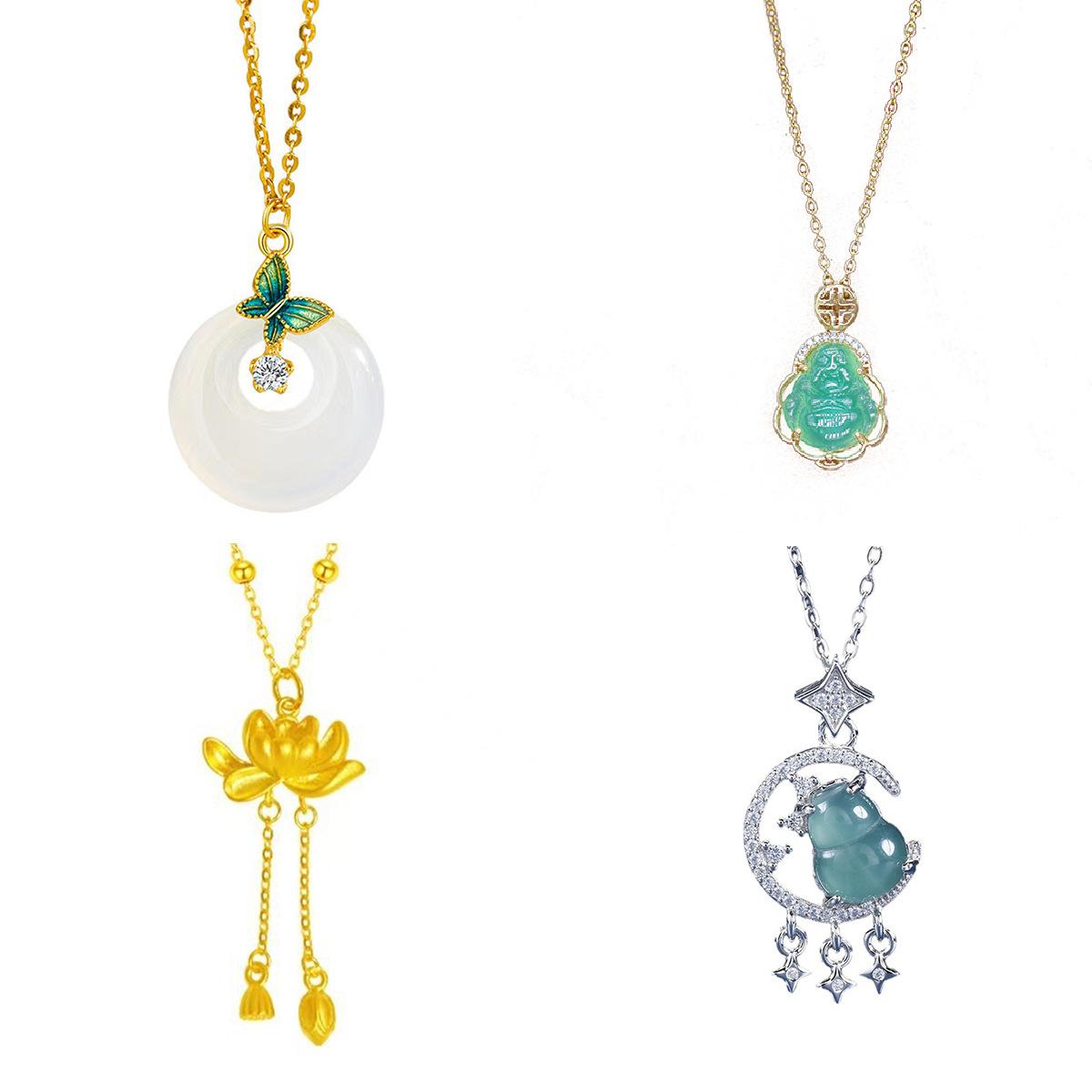 S925 silver jade star and moon gourd style, S925 silver jade maitreya buddha style-gold, S925 silver jade bag ...