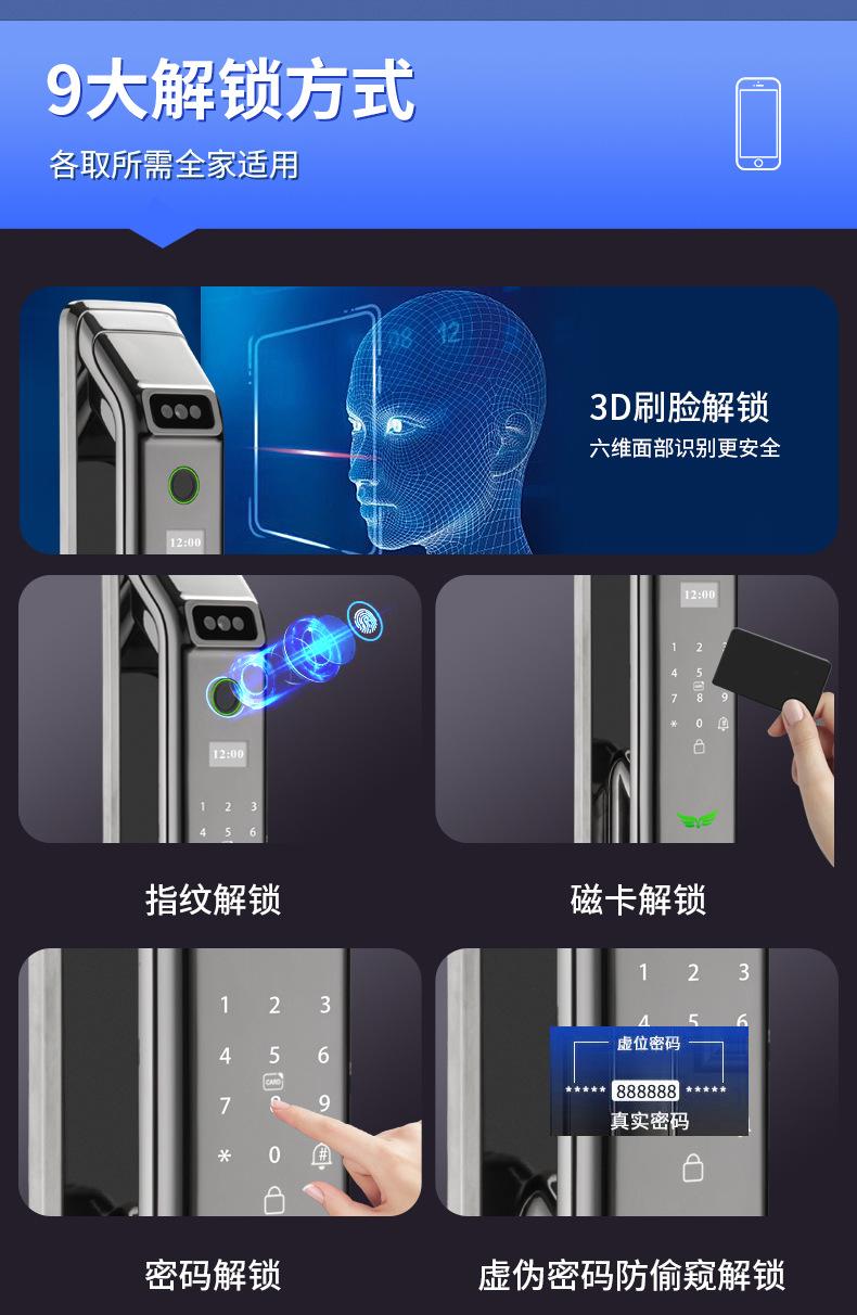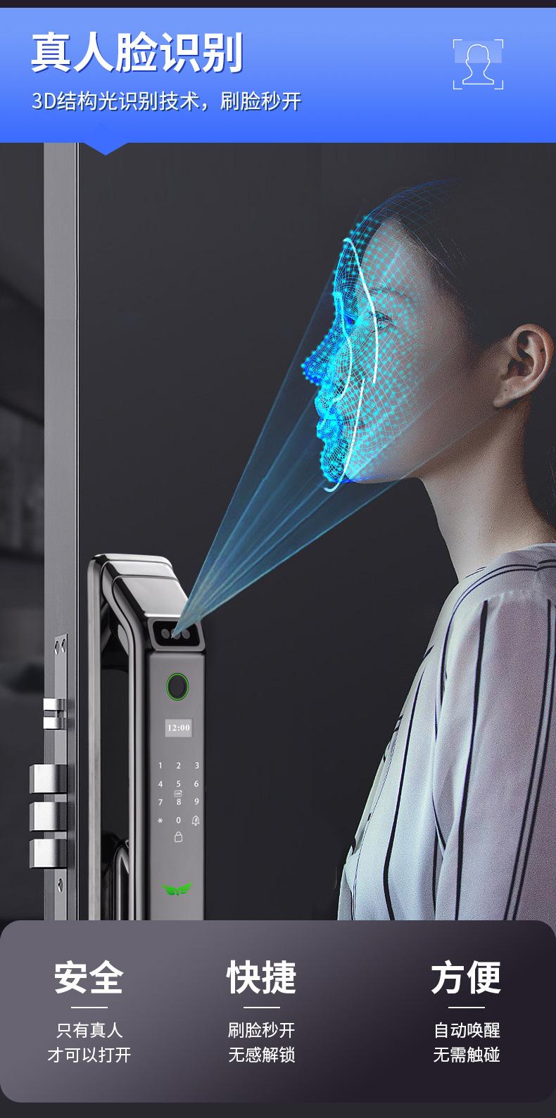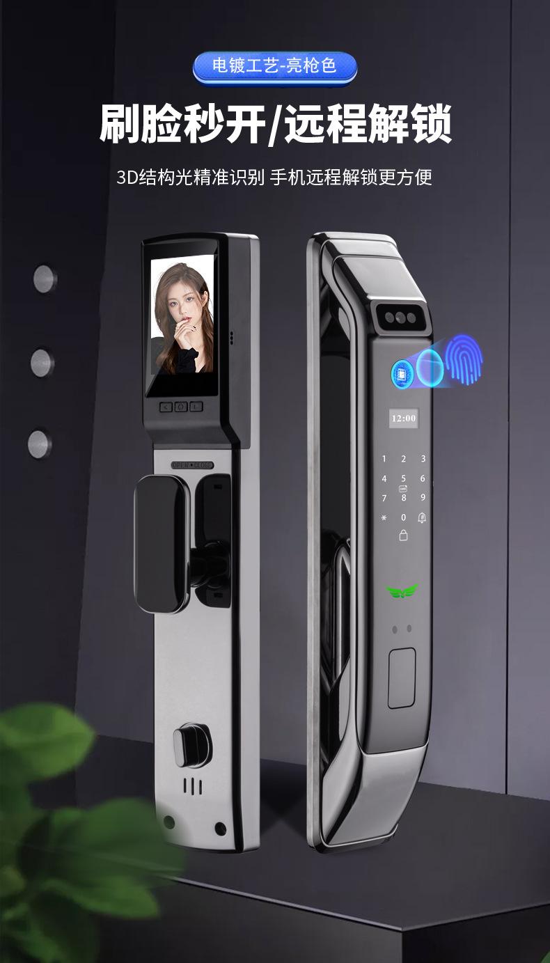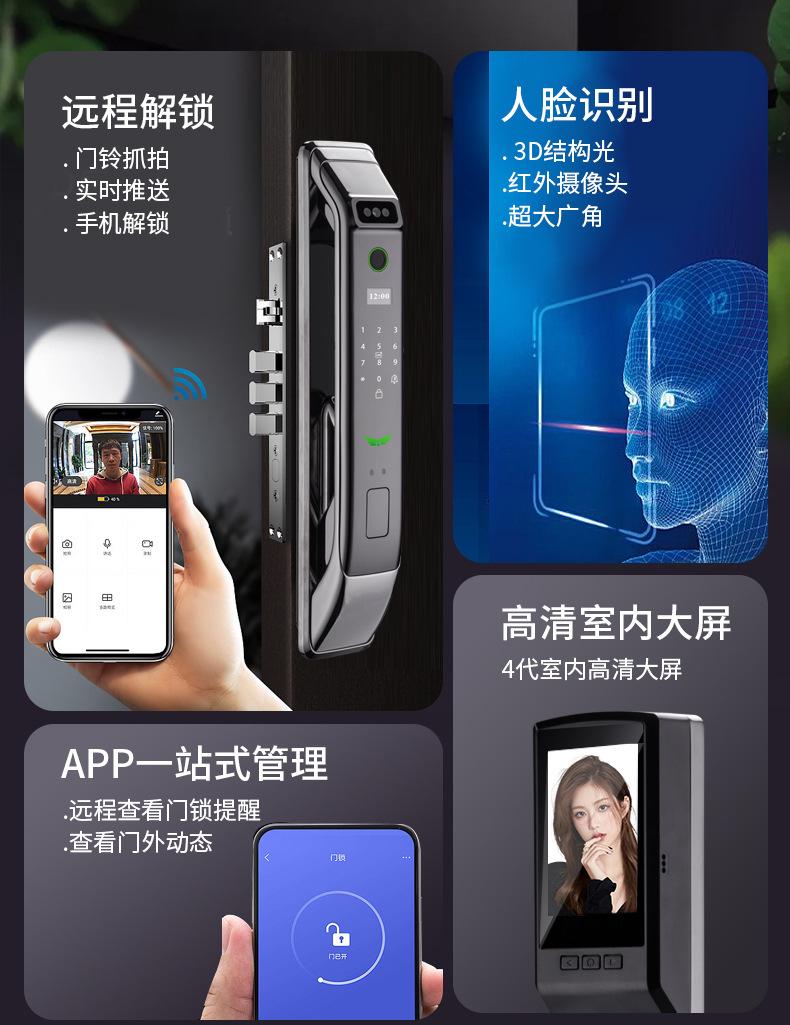 Cerradura de huella dactilar con reconocimiento facial 3D, cerradura inteligente con contraseña digital remota, cerradura digital visual para el hogar, se puede personalizar de fábrica.