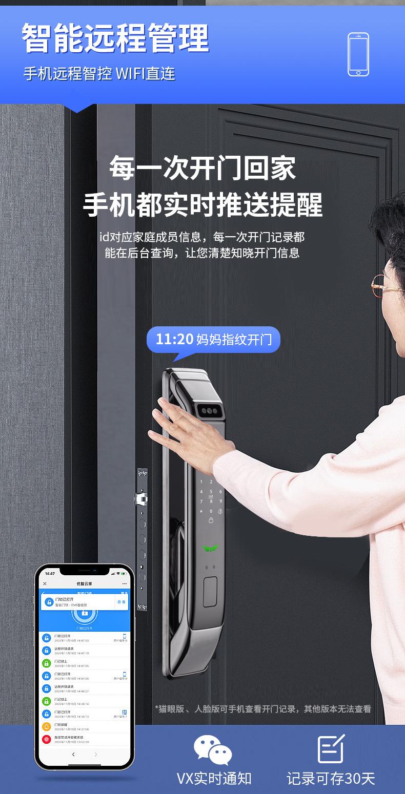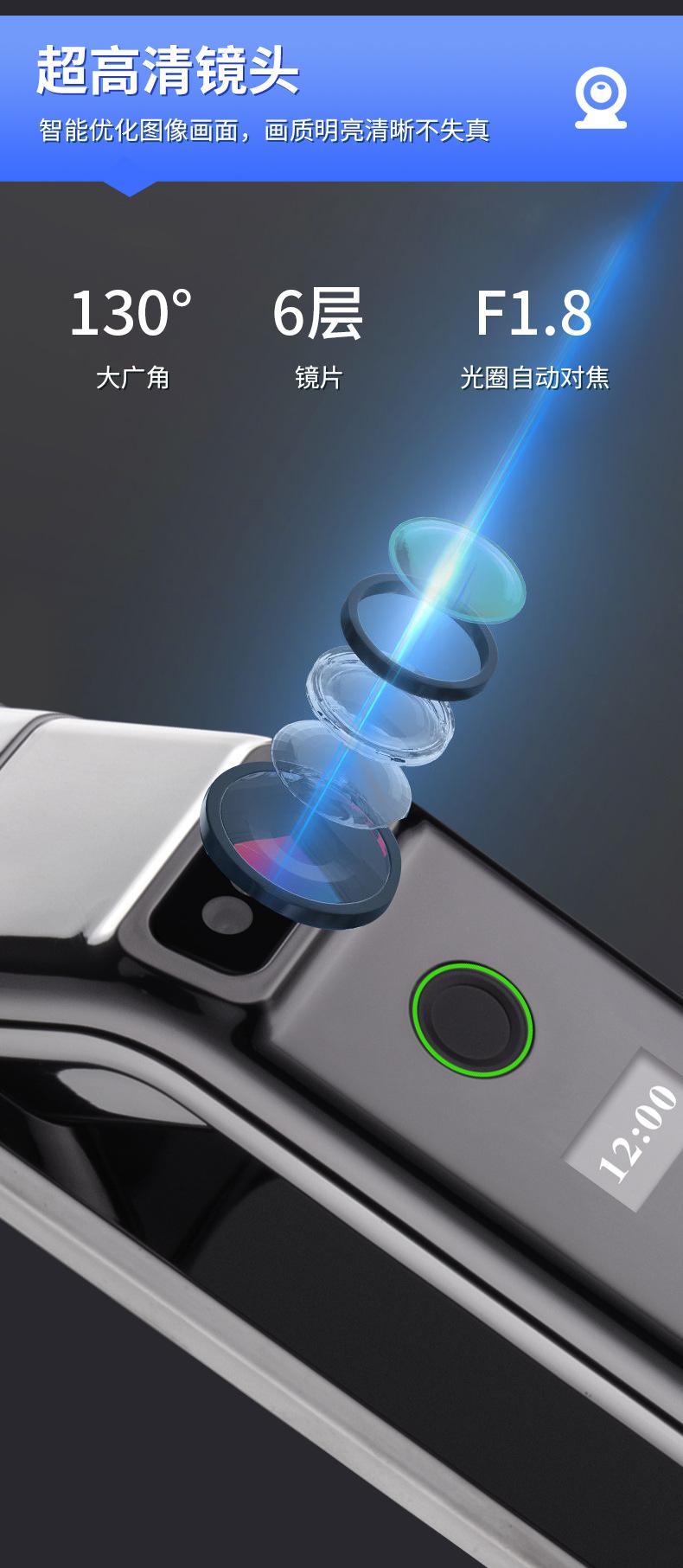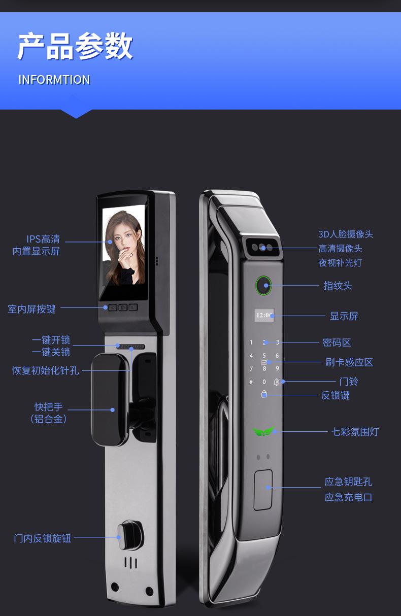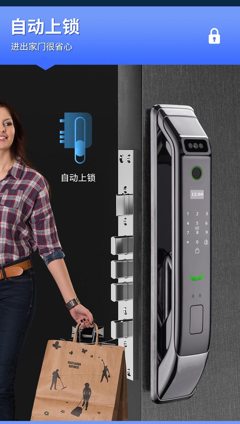 Cerradura de huella dactilar con reconocimiento facial 3D, cerradura inteligente con contraseña digital remota, cerradura digital visual para el hogar, se puede personalizar de fábrica.