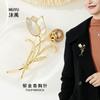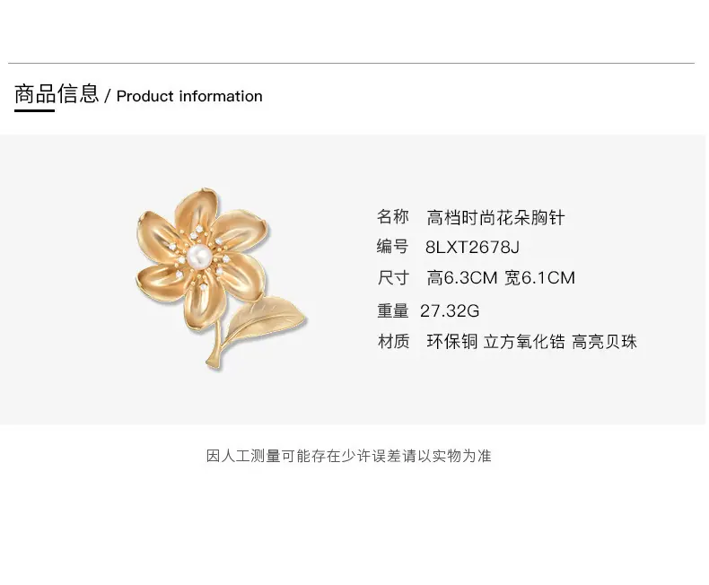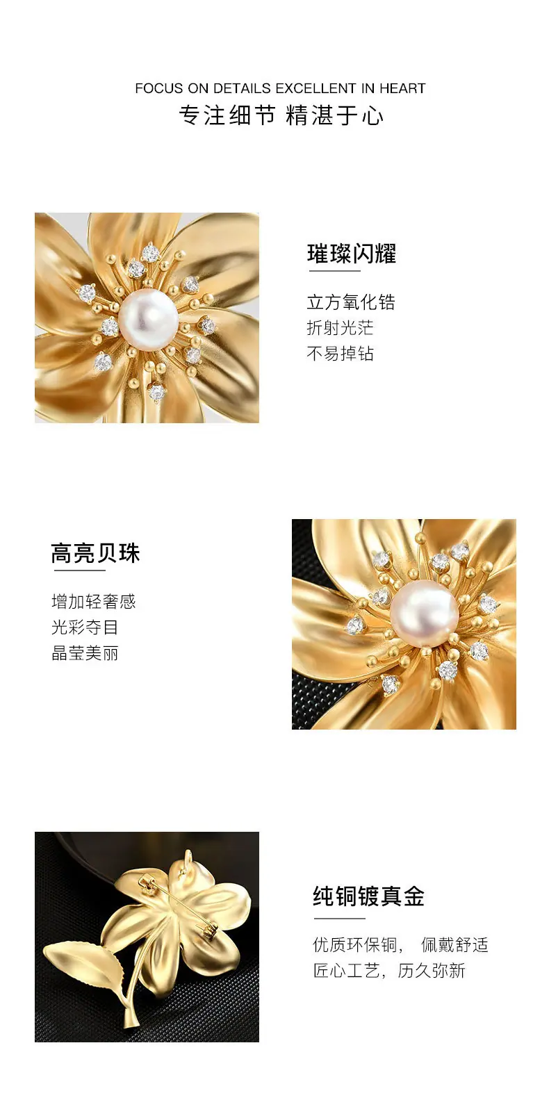 Moda Europea y Americana Broche Mate de Lujo Ligero con Flor de Perla y Zircón Micro-Incrustado, Elegante y Versátil Accesorio Corsage Floral