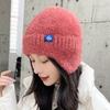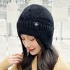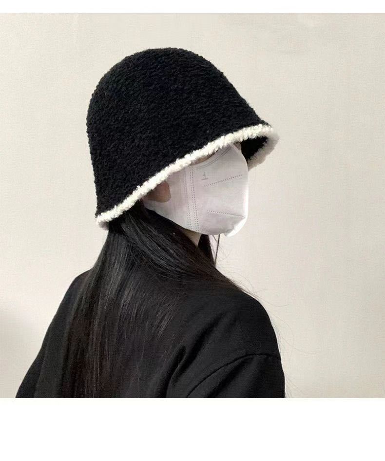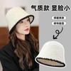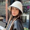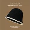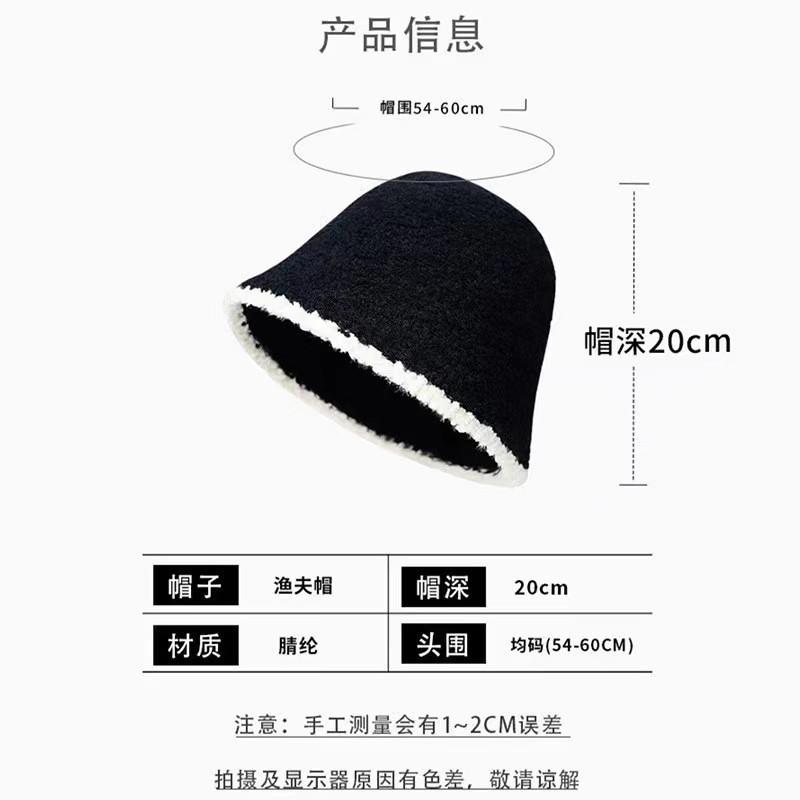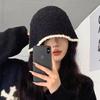 Sombrero de pescador de felpa de punto negro para mujer, gorro de pescador de cabeza grande estilo coreano para otoño e invierno, gorro cálido para mostrar el rostro, moderno