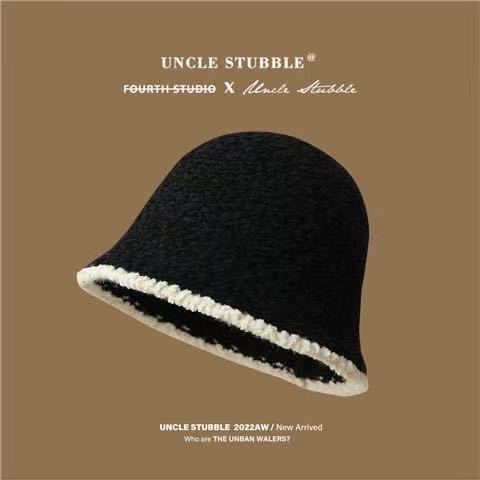 Plush bucket hat—khaki, Plush bucket hat—black, Plush bucket hat—white, Black Knitted Hat with Bear Ears, Brow...