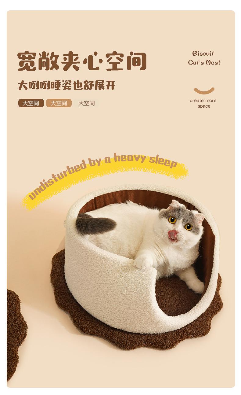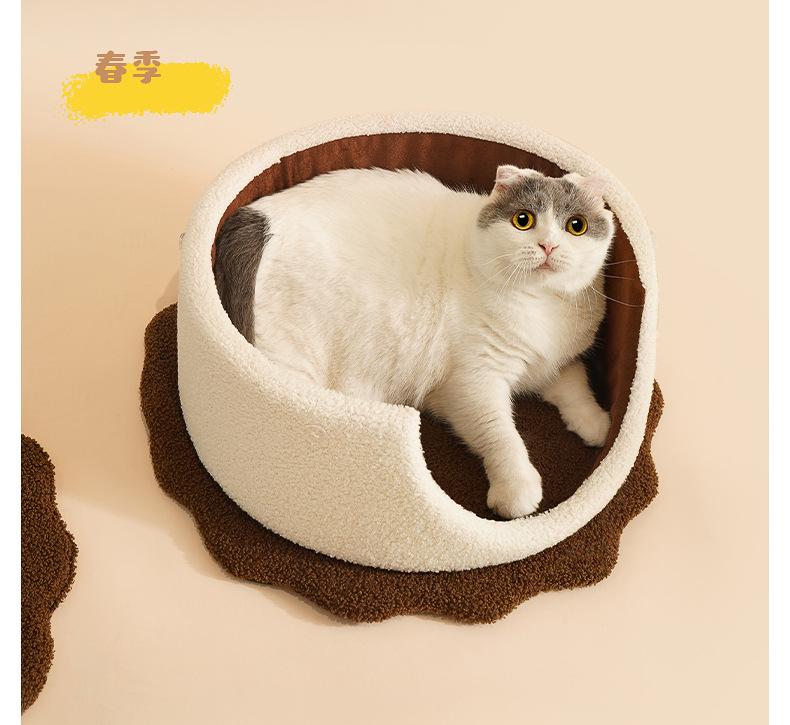 Nuevo Nido para Gatos Galleta Sándwich Otoño e Invierno a Prueba de Frío Dormir Gato Casa Cerrada Cama para Gatos Nido para Mascotas Casa para Perros Suministros