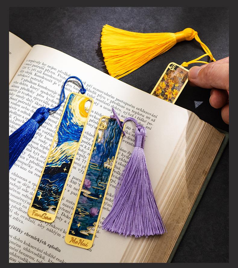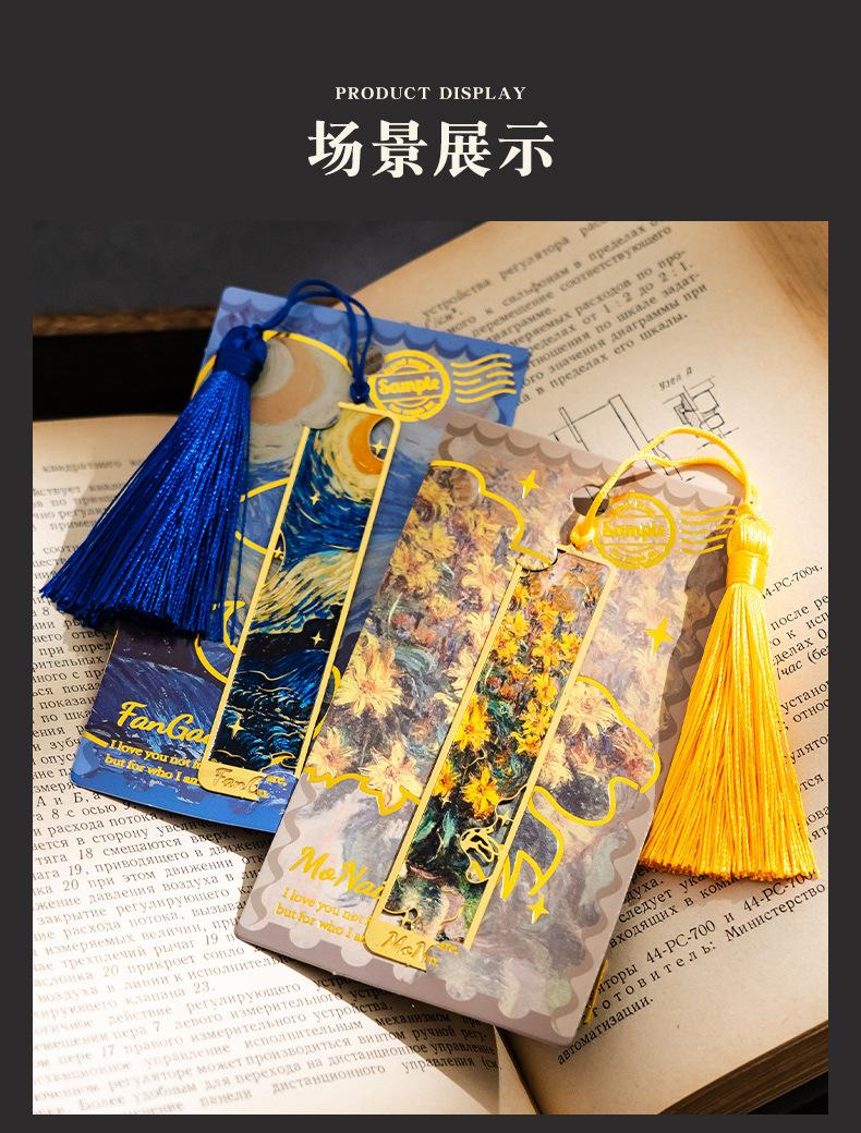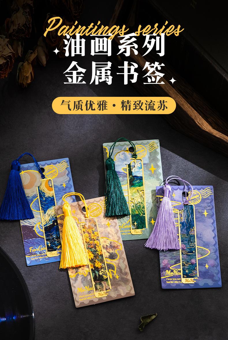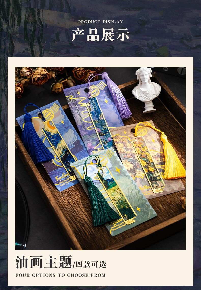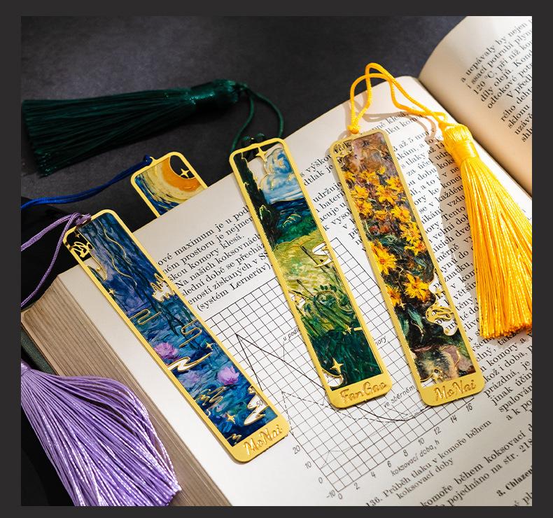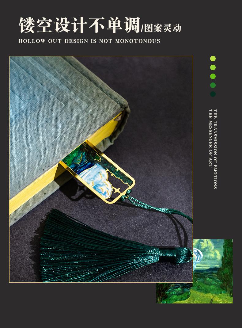 Marcapáginas de metal con pintura al óleo, hueco, de alto nivel, clásico, con clip para páginas, papelería, premio Wenchuang, pequeño obsequio.