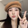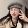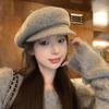 2024 lana circunferencia de cabeza grande boina de mujer otoño e invierno nuevo estilo coreano red popular cara pequeña cálido sombrero de pintor