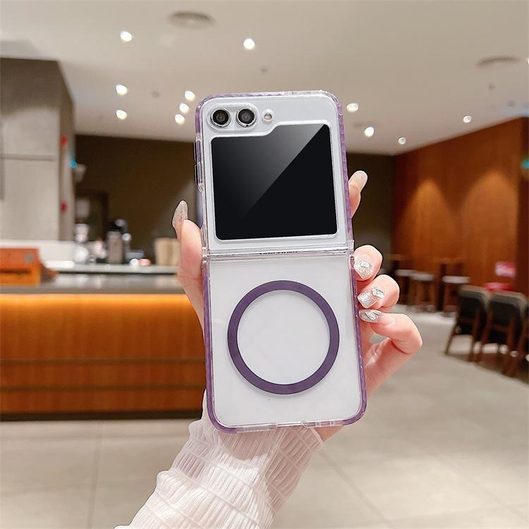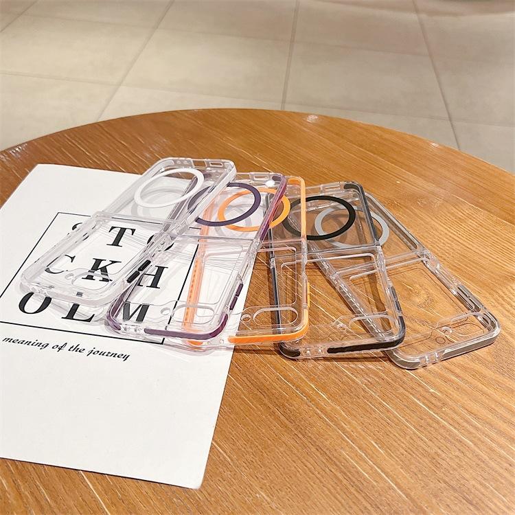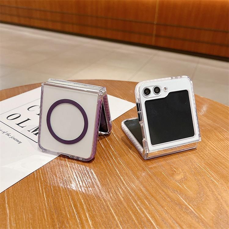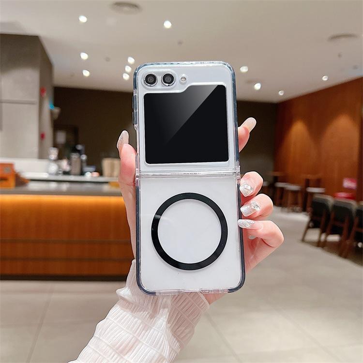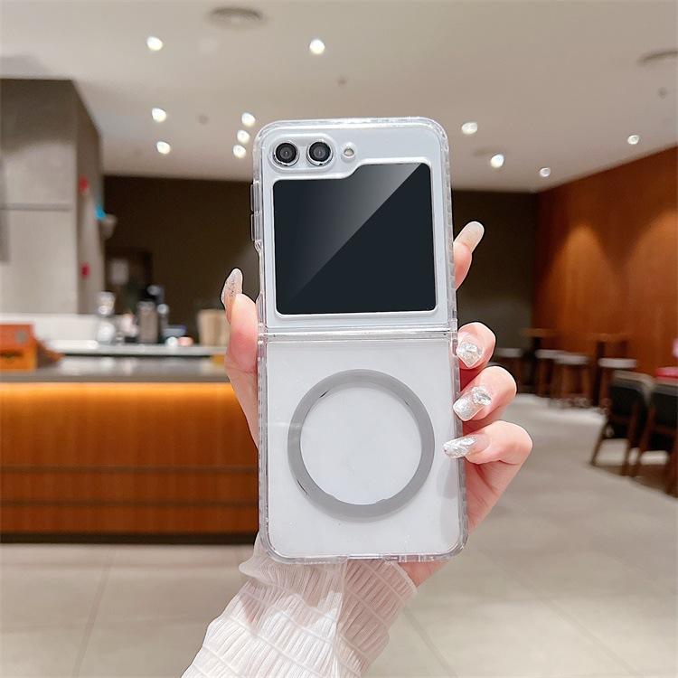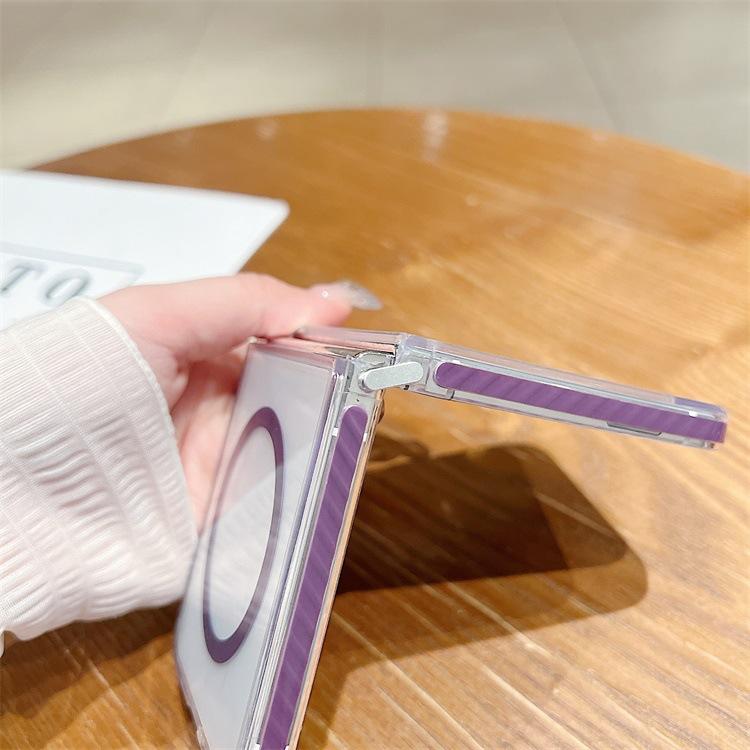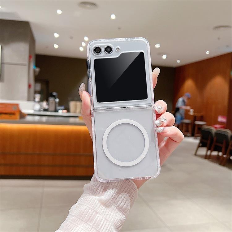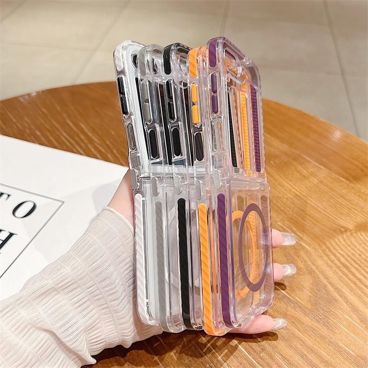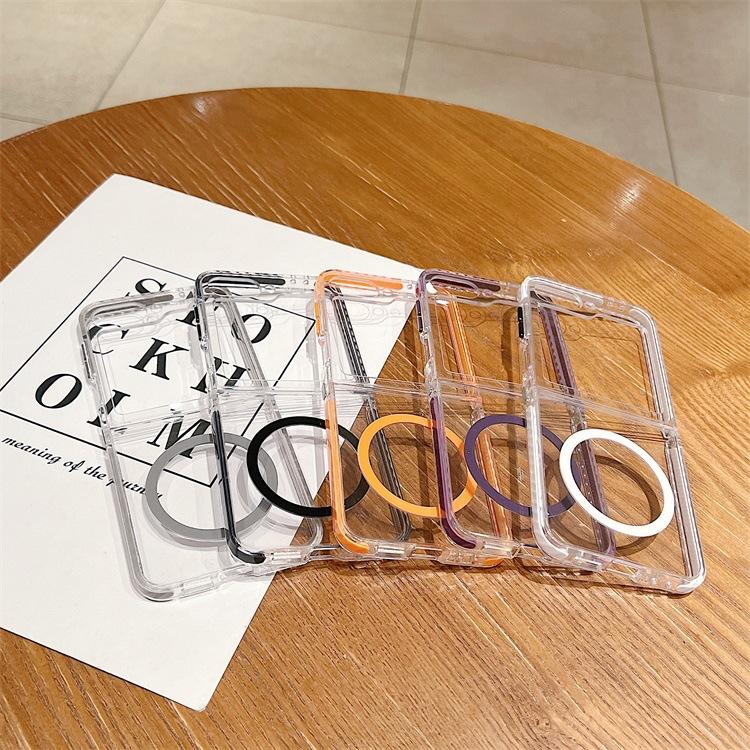 Funda para teléfono Samsung Zflip6 con pantalla plegable y bisagra Zflip5, funda protectora magnética transparente de dos colores y anticaídas.