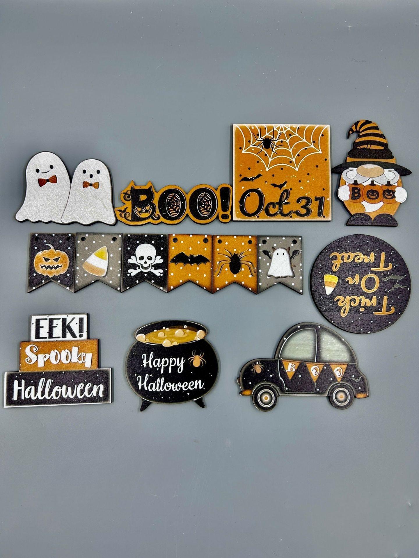 Halloween wooden ornaments 5-piece set, 15 piece set, 6 piece set, Halloween 15-piece set