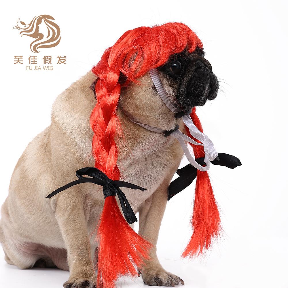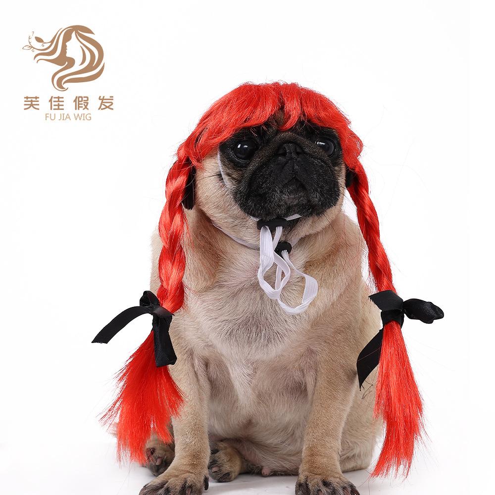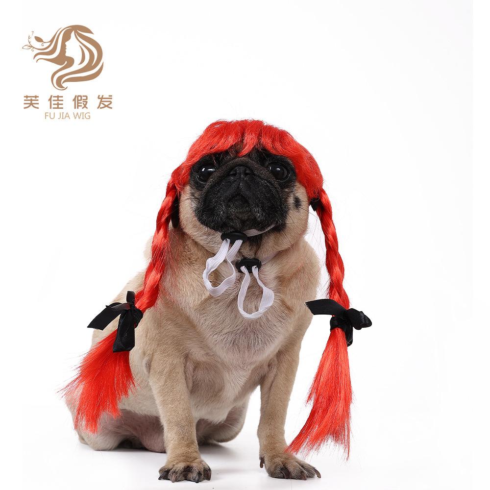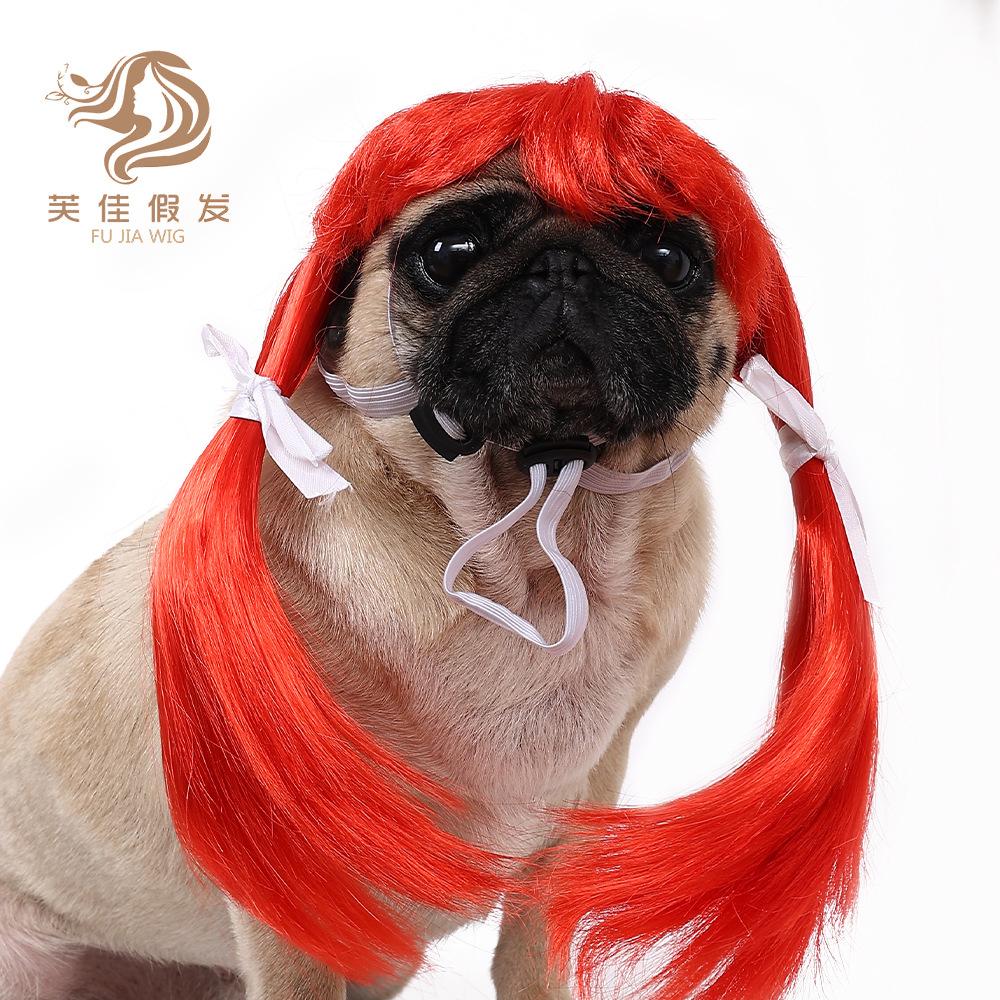 Pet wig double ponytail [red]