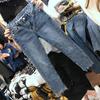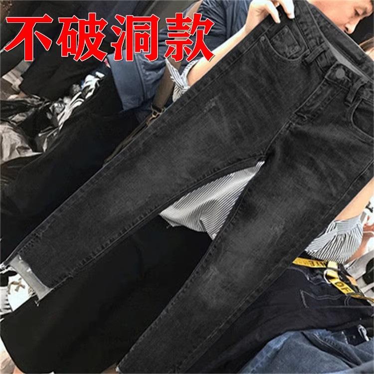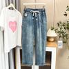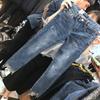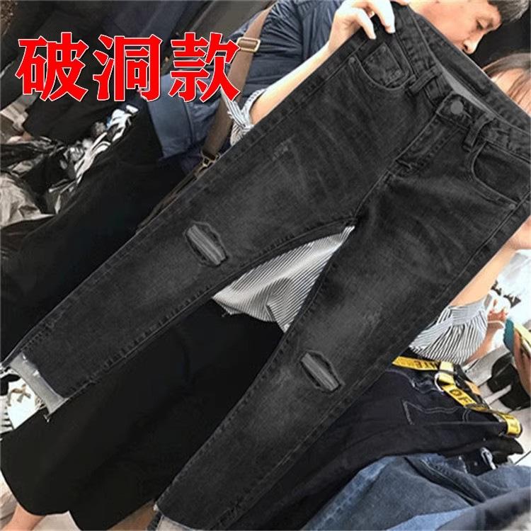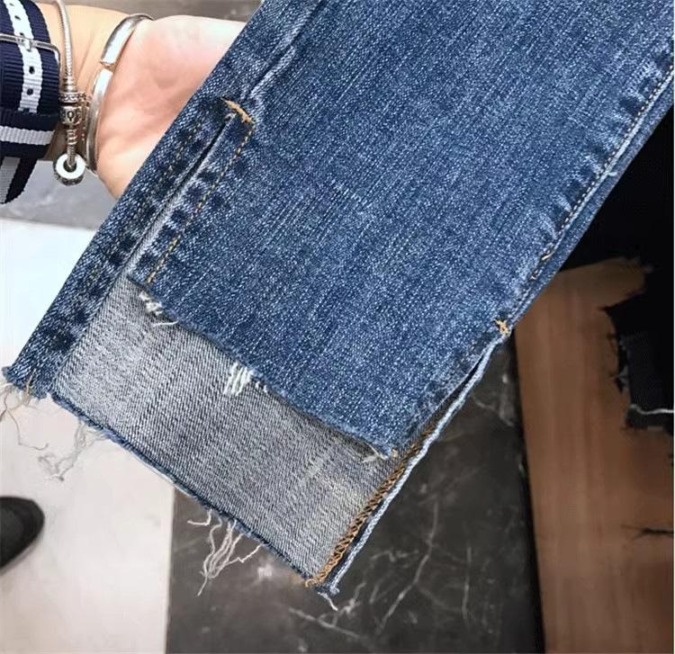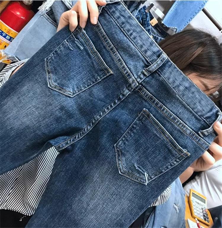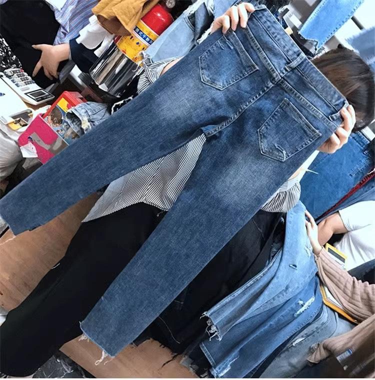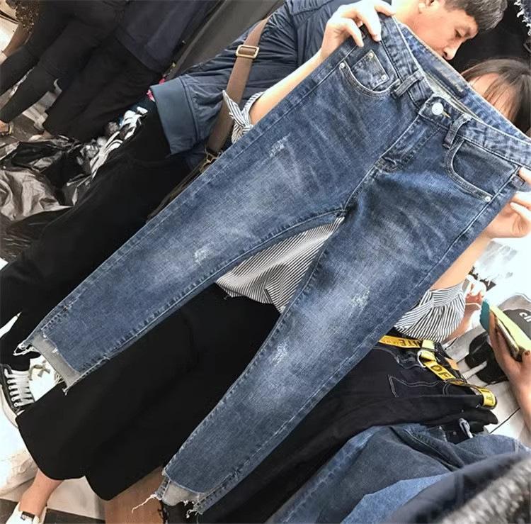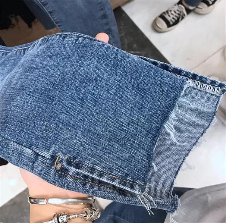 Talla Grande Mujer Gordo mm Verano Azul Jeans Rotos Slim Elásticos Pantalones Rectos Delgados Pantalones Nueve Puntos