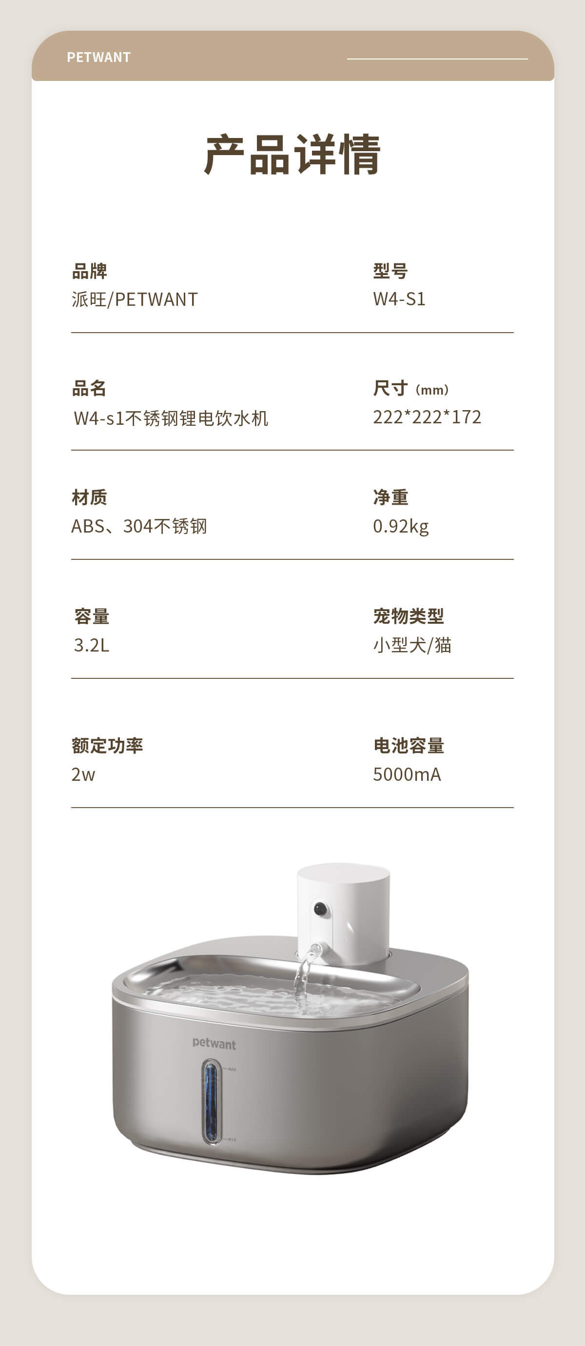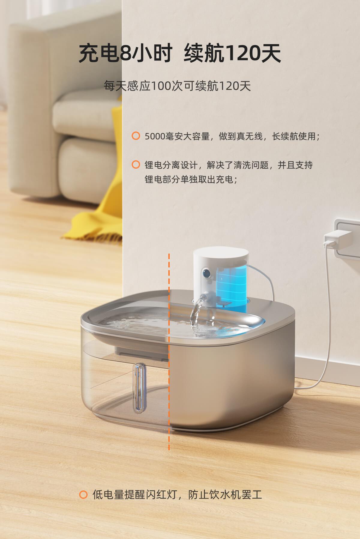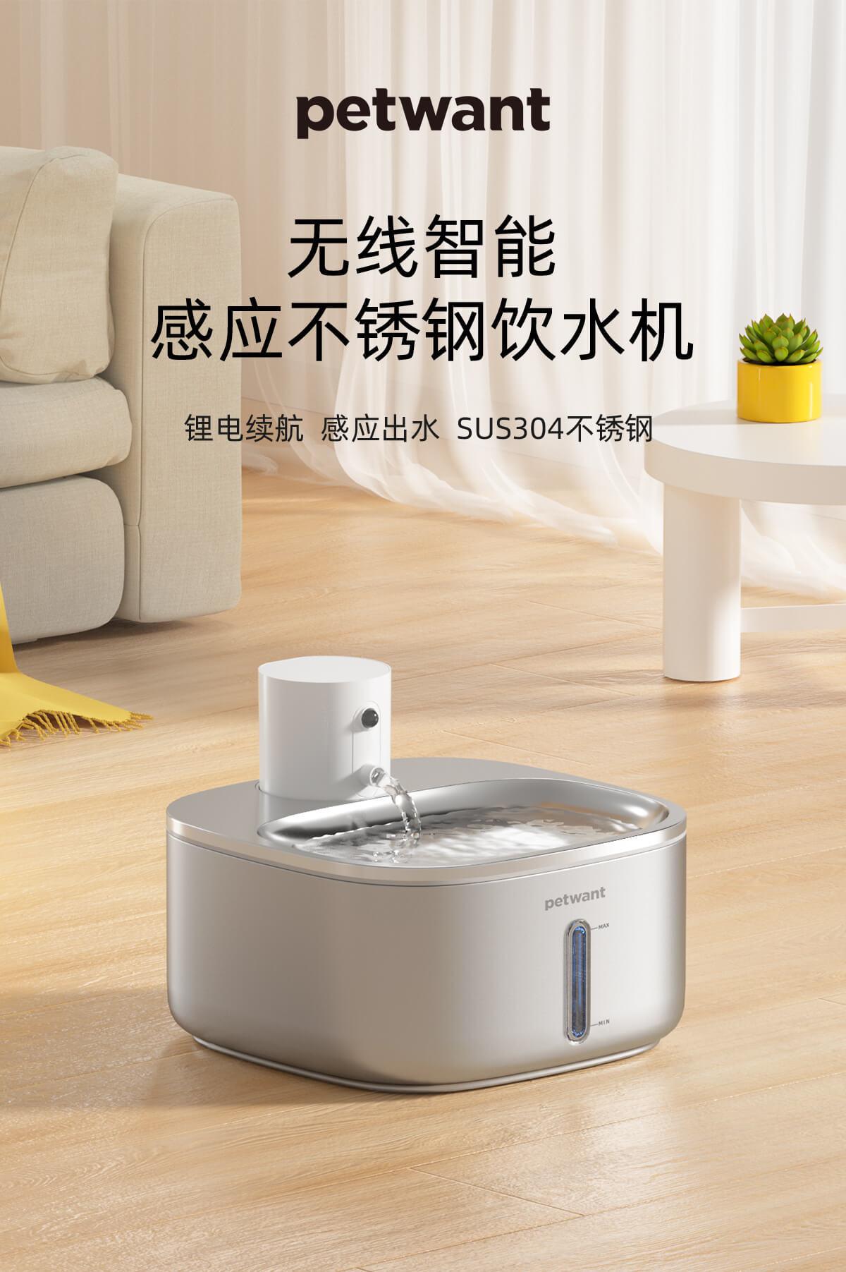 Wireless lithium battery stainless steel pet water dispenser