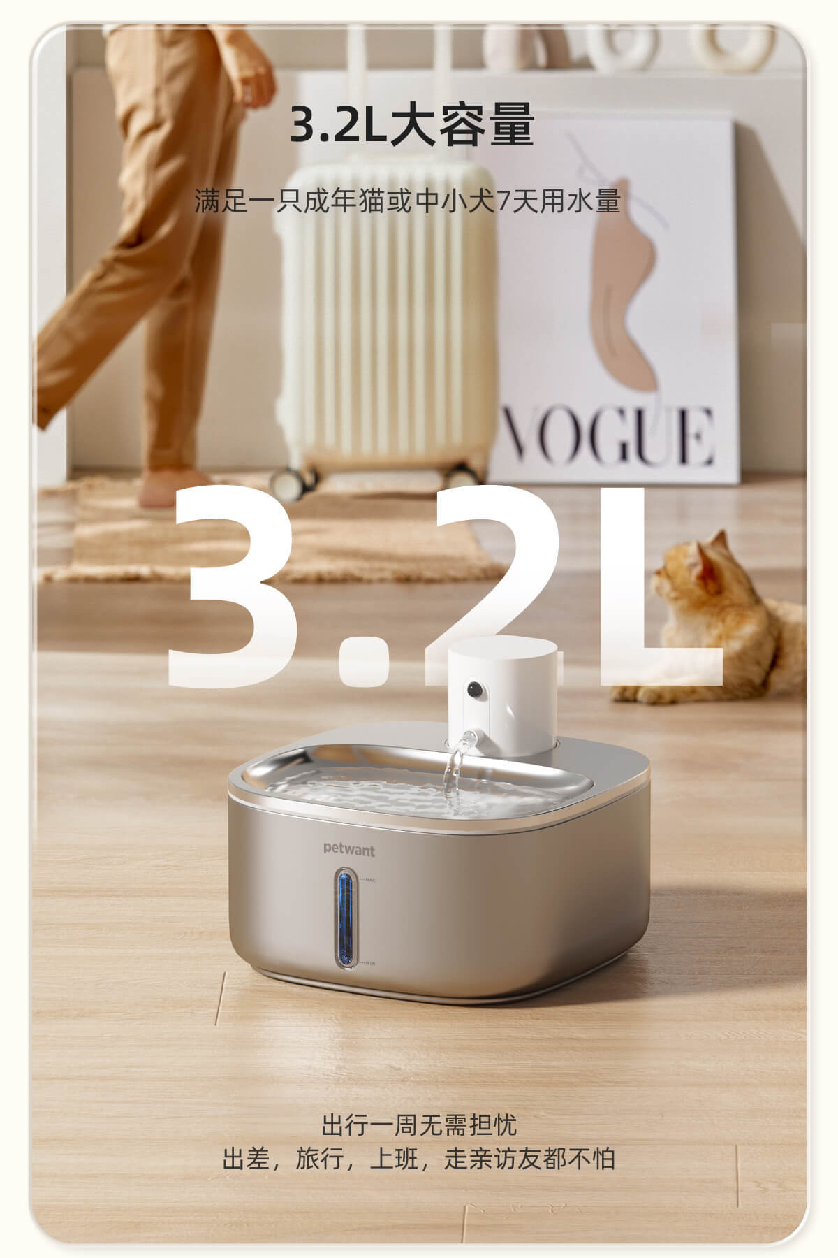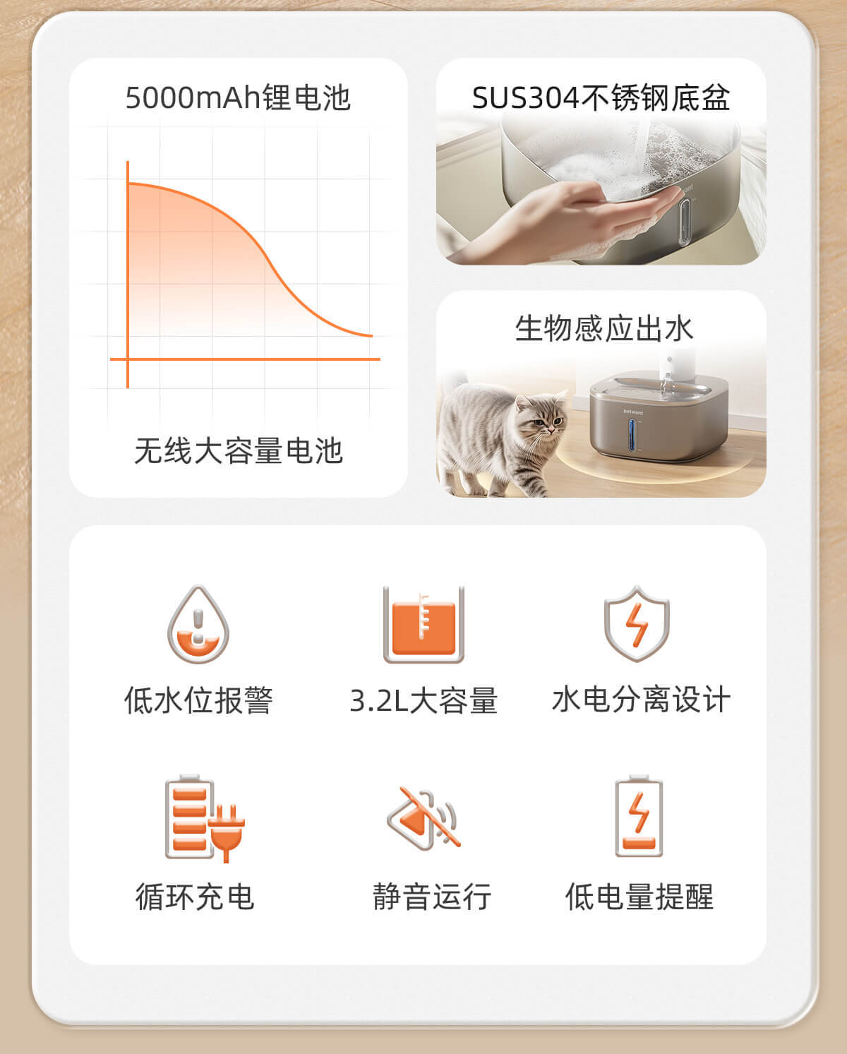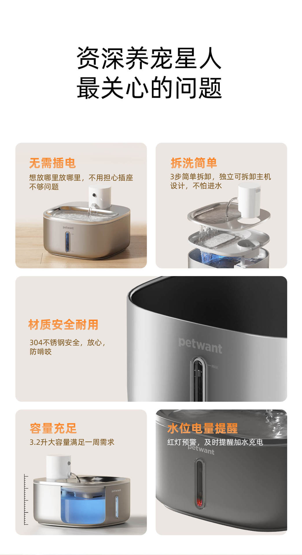Wireless lithium battery stainless steel pet water dispenser