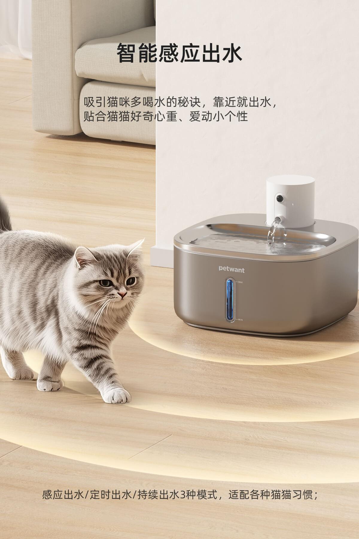 Dispensador de Agua Inalámbrico de Acero Inoxidable para Mascotas de 3.2L Paiwang Personalizado 5000Ma Bebedero de Agua con Sensor Infrarrojo para Mascotas Perros