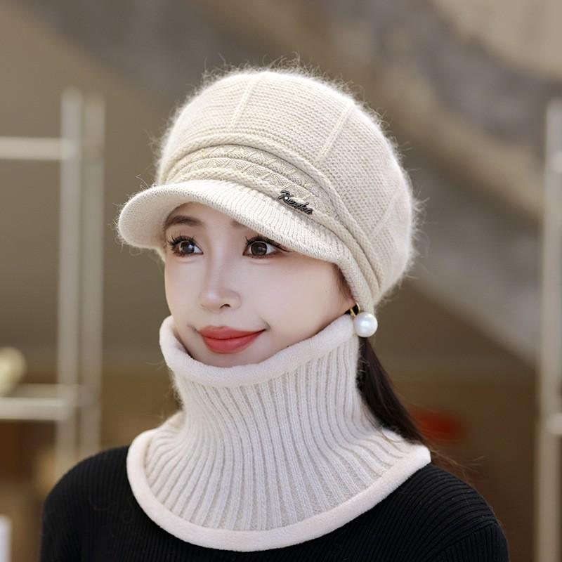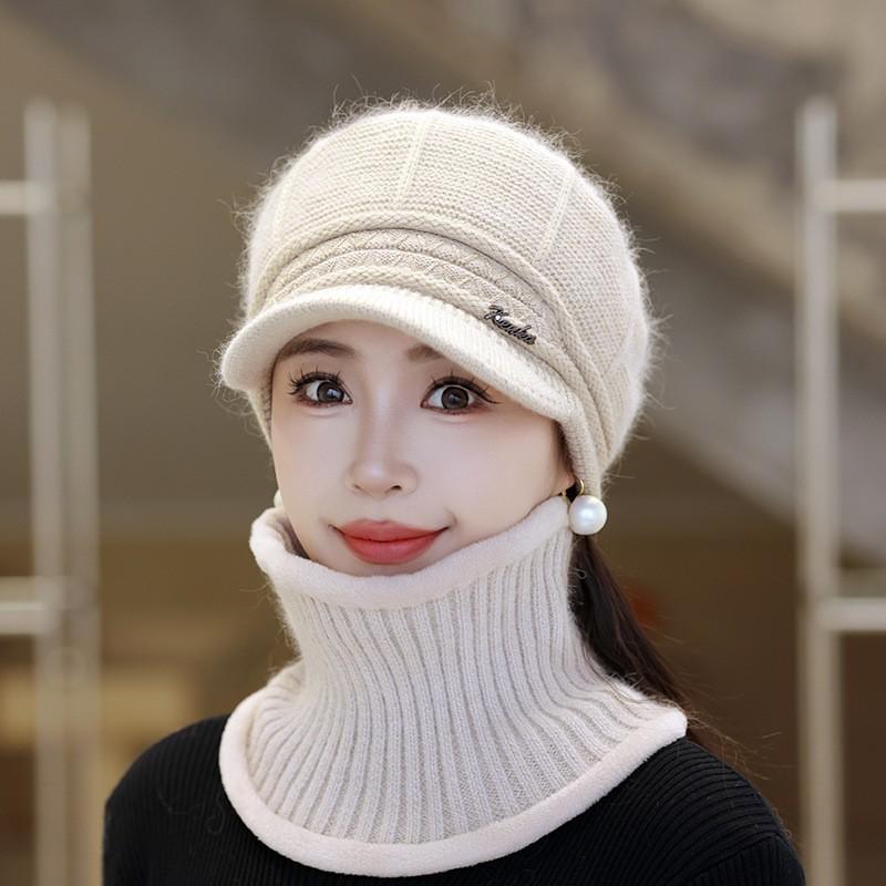 Gorro de lana de estilo coreano de invierno para mujer, combina con todo, con terciopelo, grueso, cálido, con protección para las orejas, resistente al frío, de punto con lengüeta de pato.