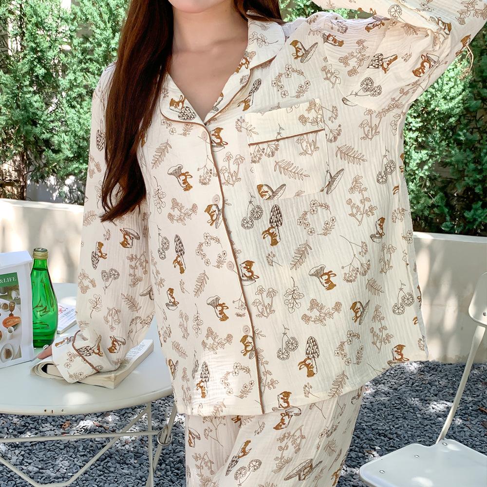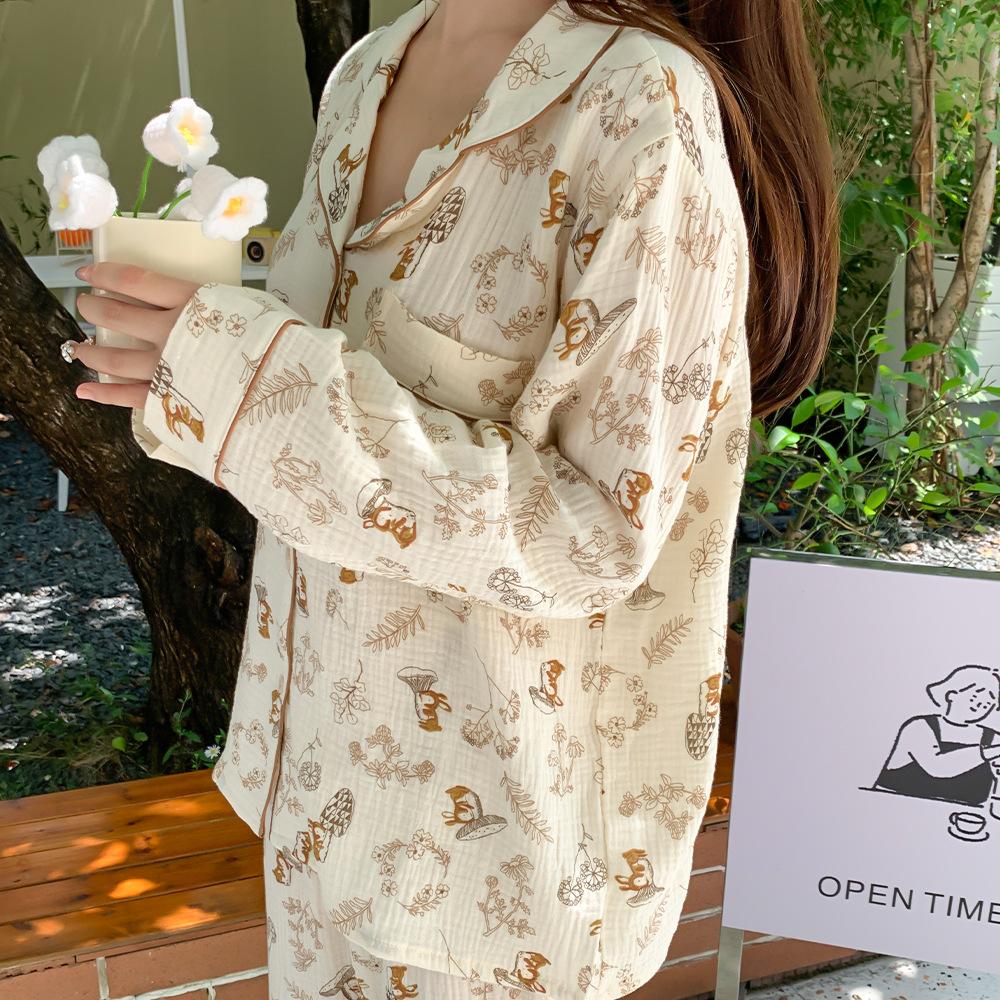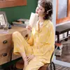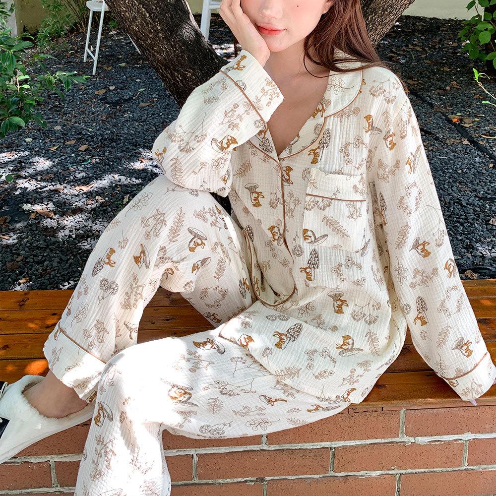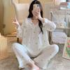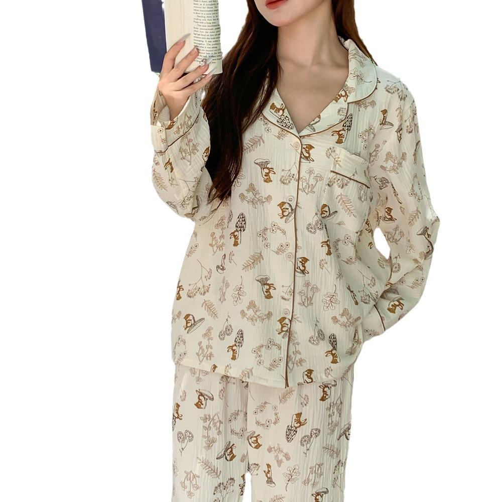 Pijamas de Primavera Otoño Estilo Europeo y Americano para Mujer Traje de Pantalón de Manga Larga Algodón Cárdigan Solapa Transfronterizo Comercio Exterior Ropa para el Hogar
