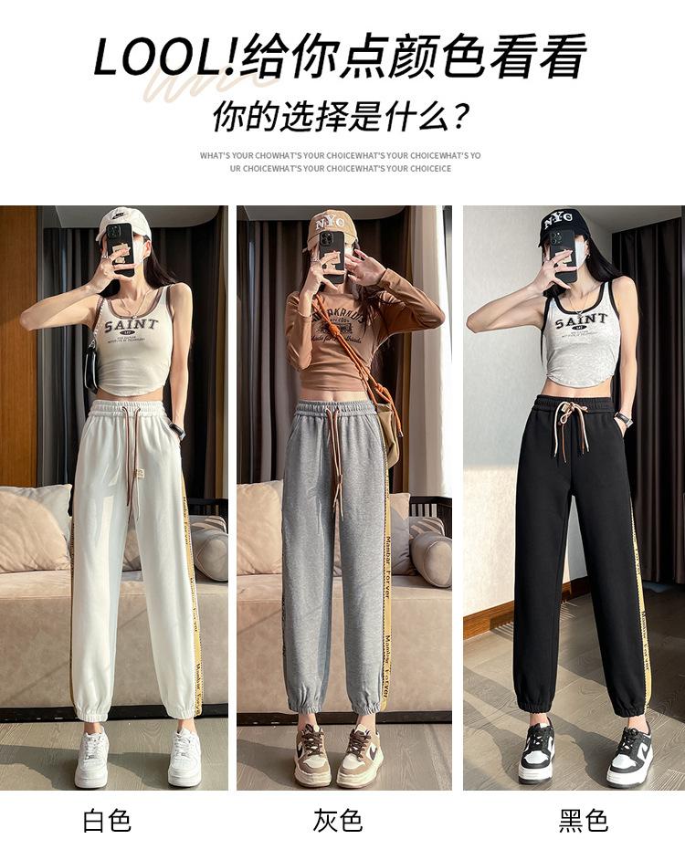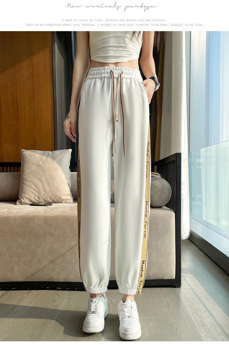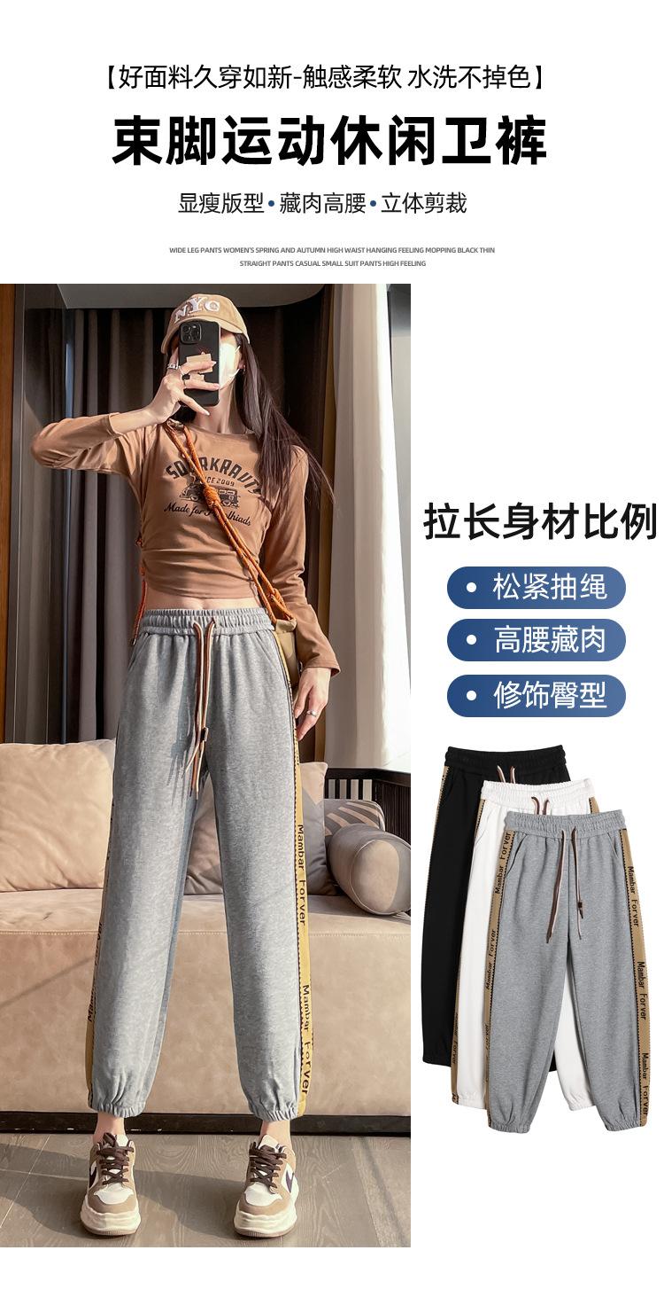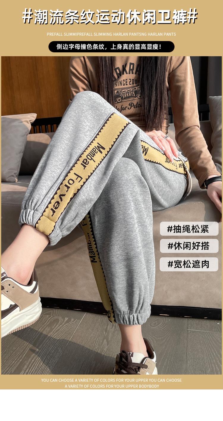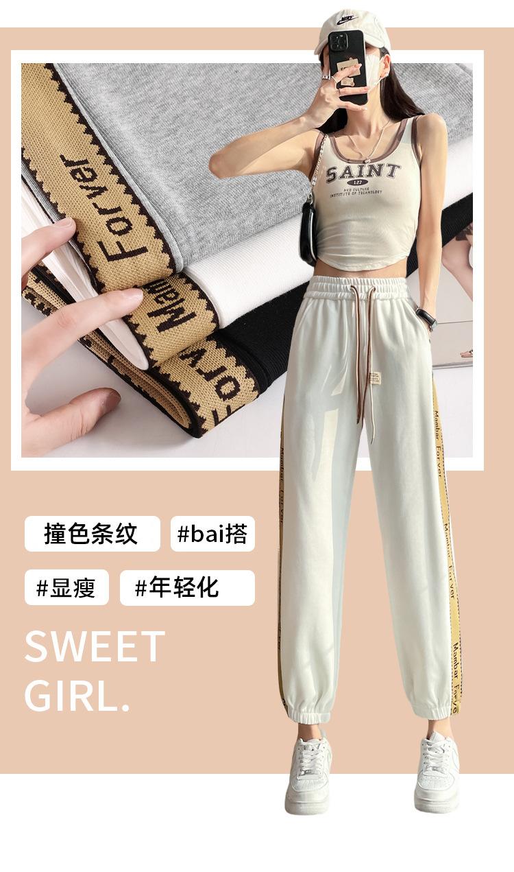Pantalones deportivos a rayas de color contrastante para mujer 2023 Otoño Petite Pantalones casuales Versátiles Rectos Sueltos Moda Leggings Pantalones deportivos