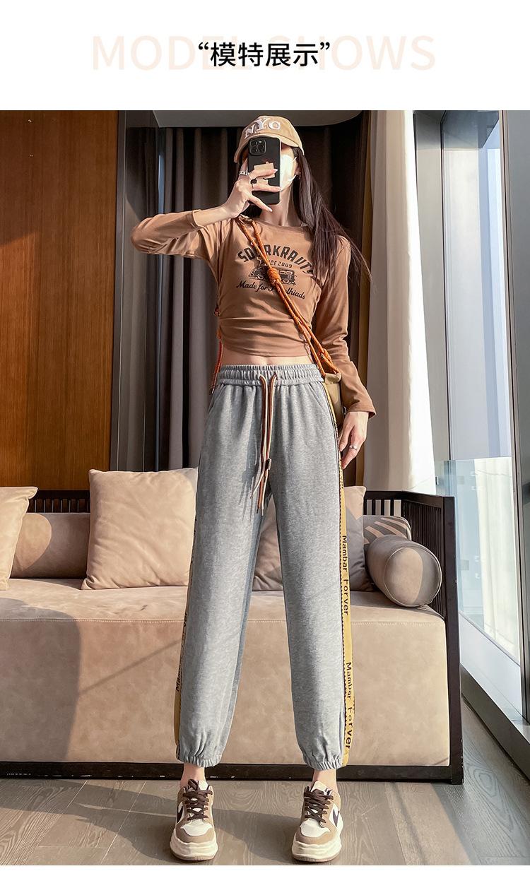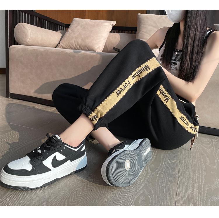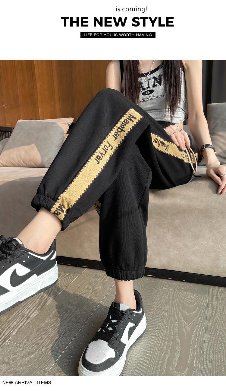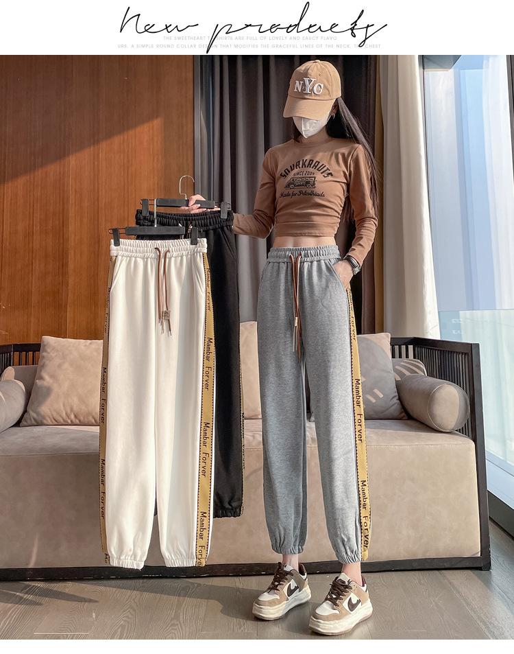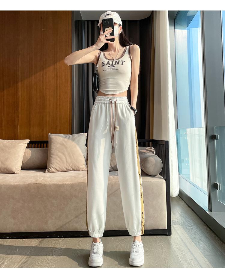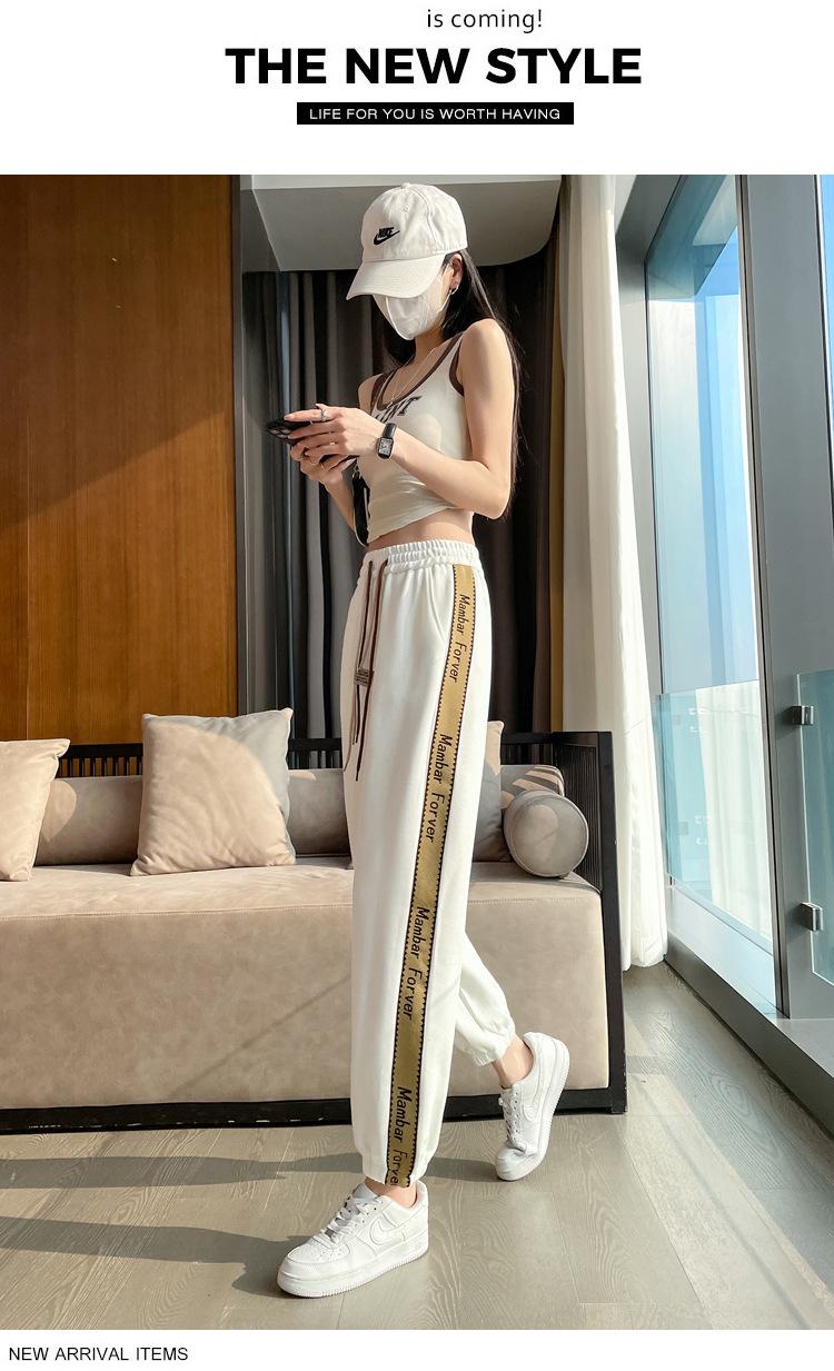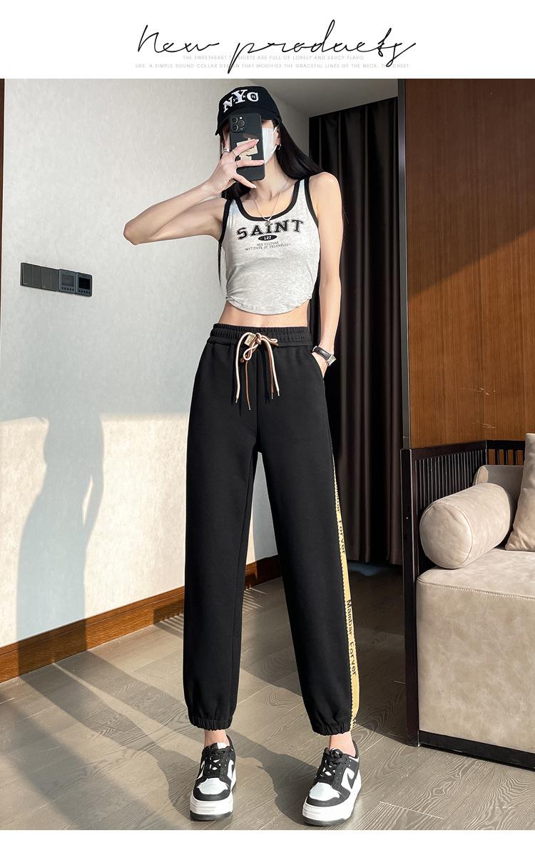 Pantalones deportivos a rayas de color contrastante para mujer 2023 Otoño Petite Pantalones casuales Versátiles Rectos Sueltos Moda Leggings Pantalones deportivos