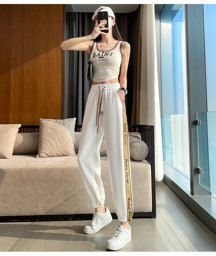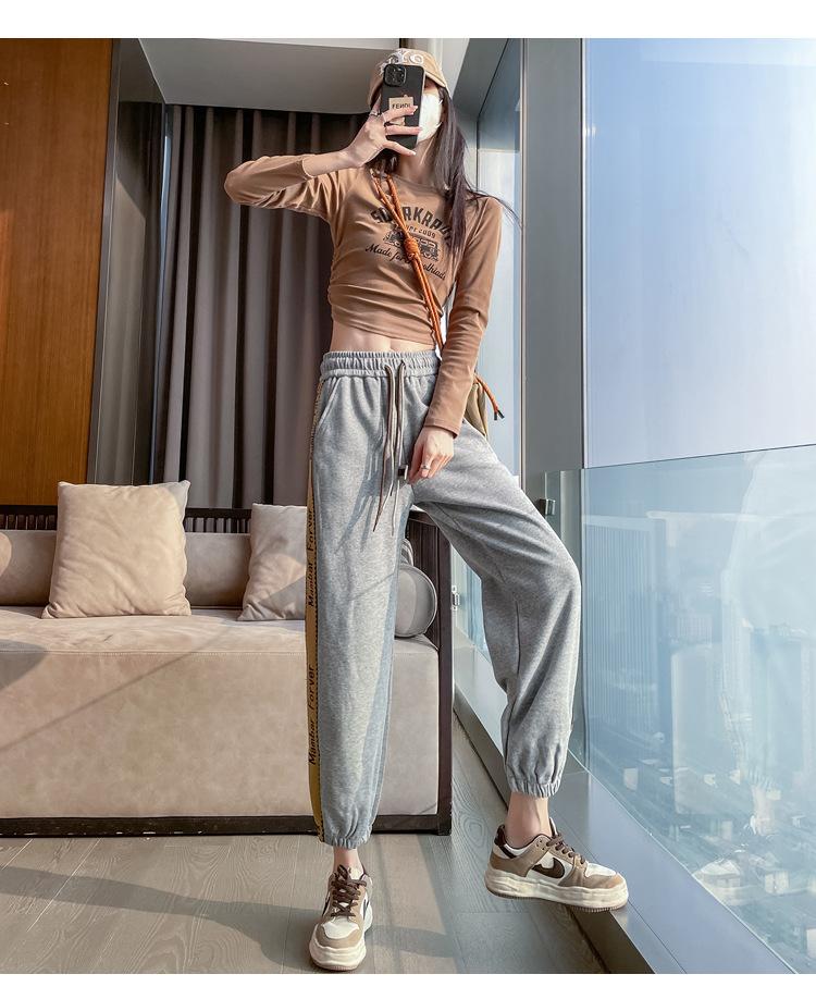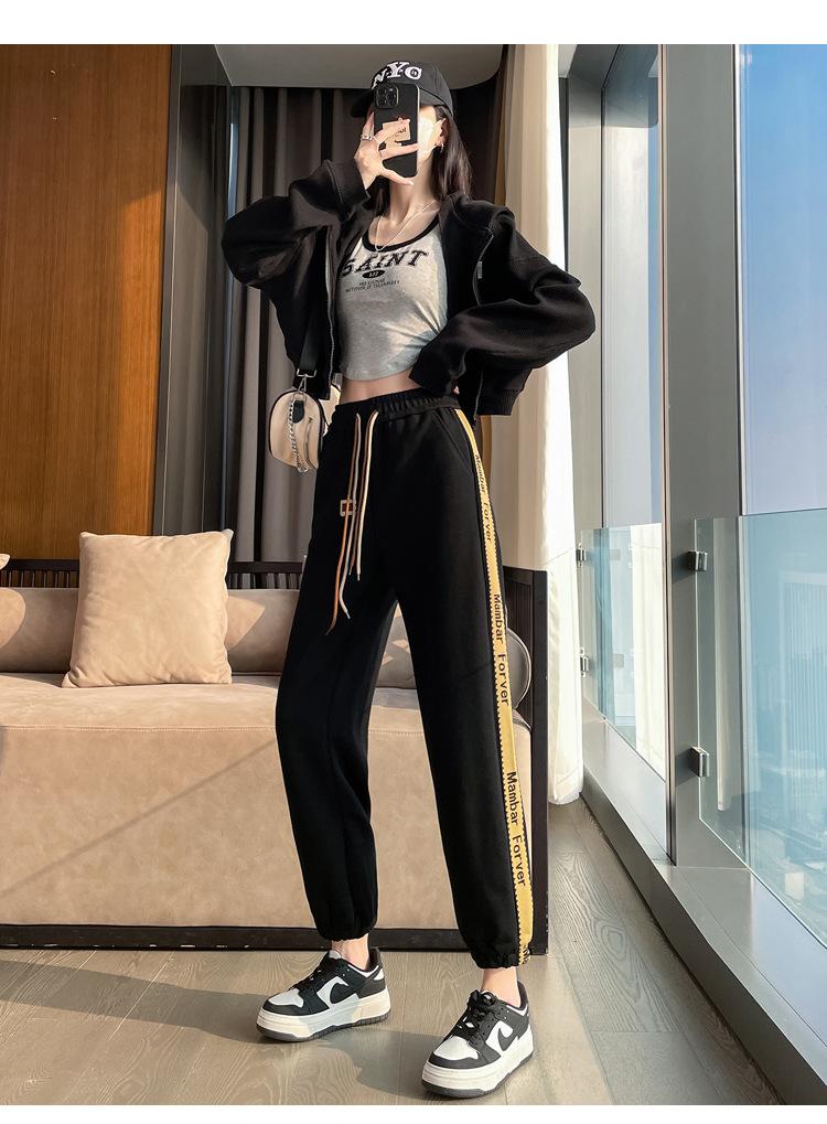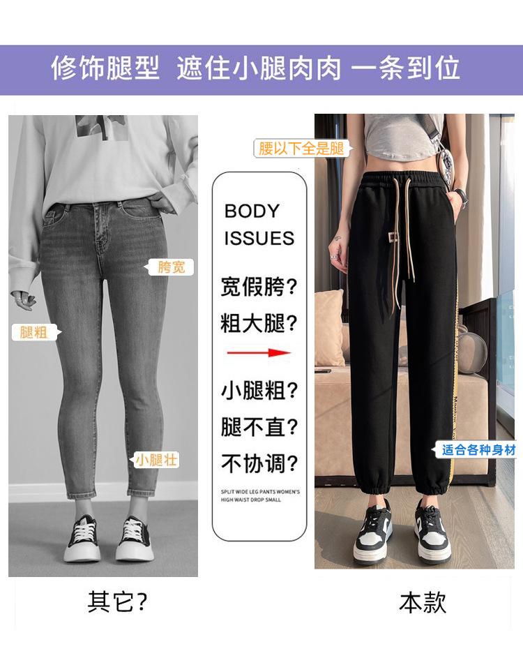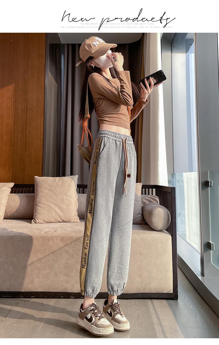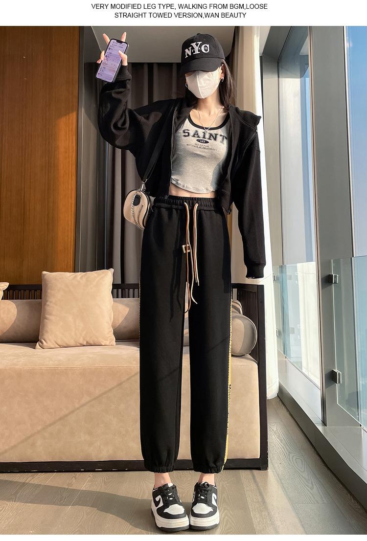 Pantalones deportivos a rayas de color contrastante para mujer 2023 Otoño Petite Pantalones casuales Versátiles Rectos Sueltos Moda Leggings Pantalones deportivos