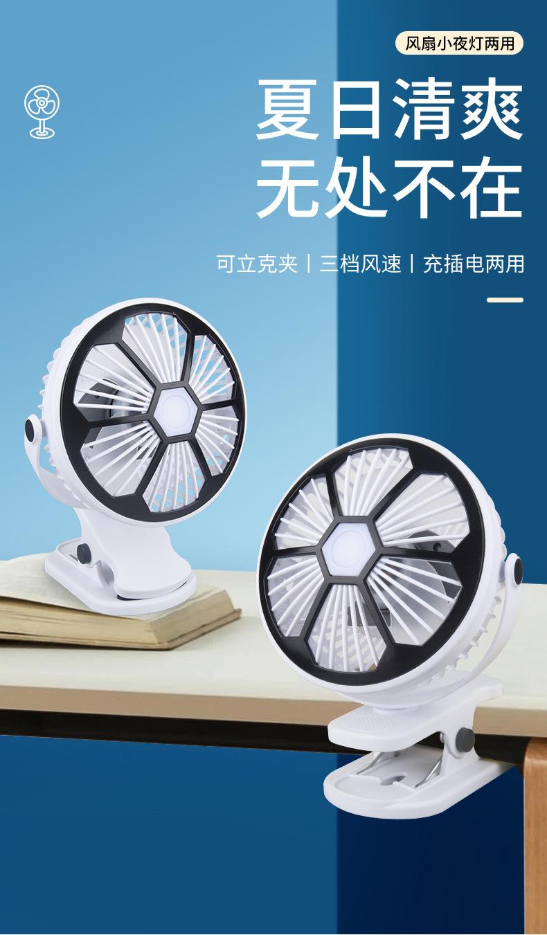 Mini ventilador de pared para dormitorio, portátil, USB, con clip