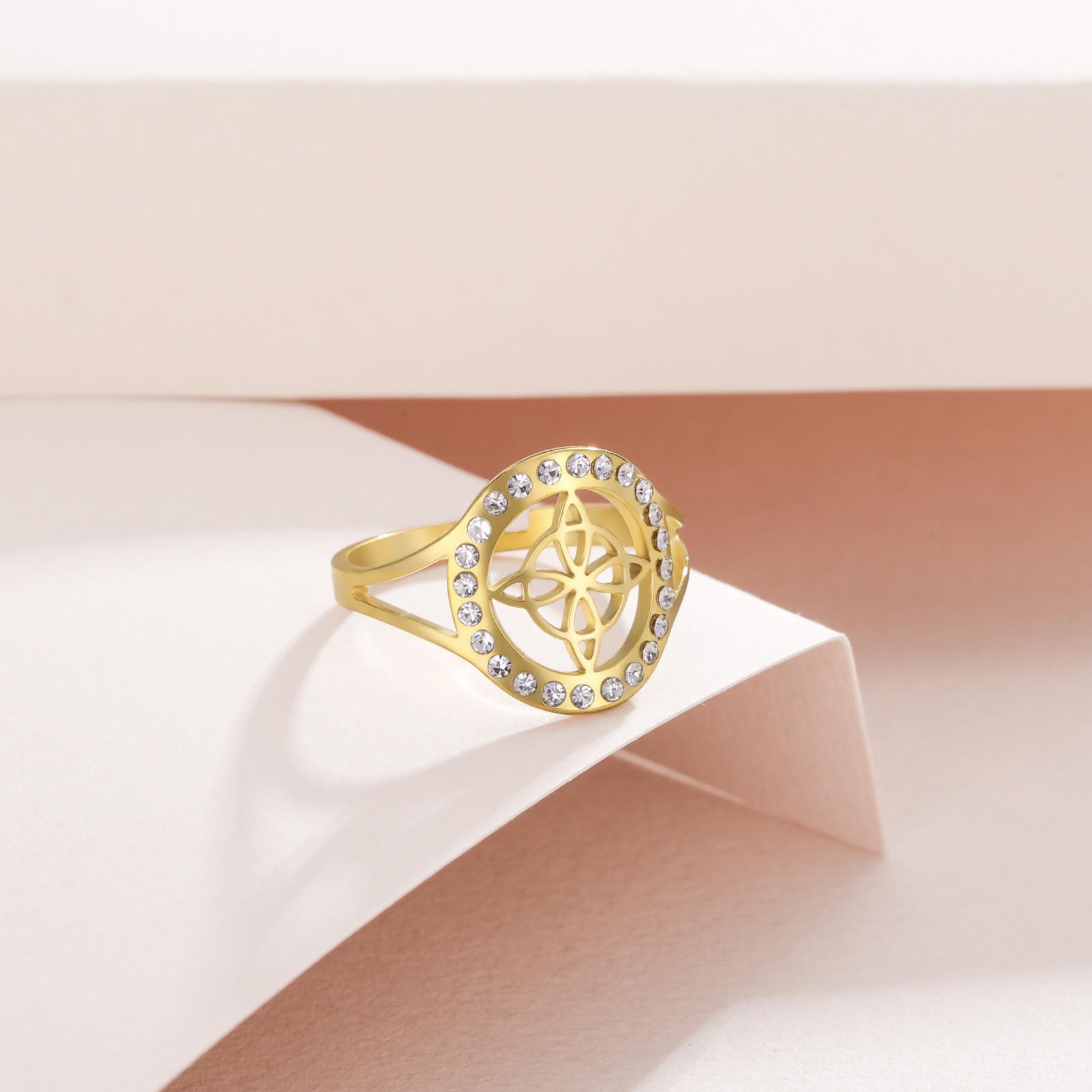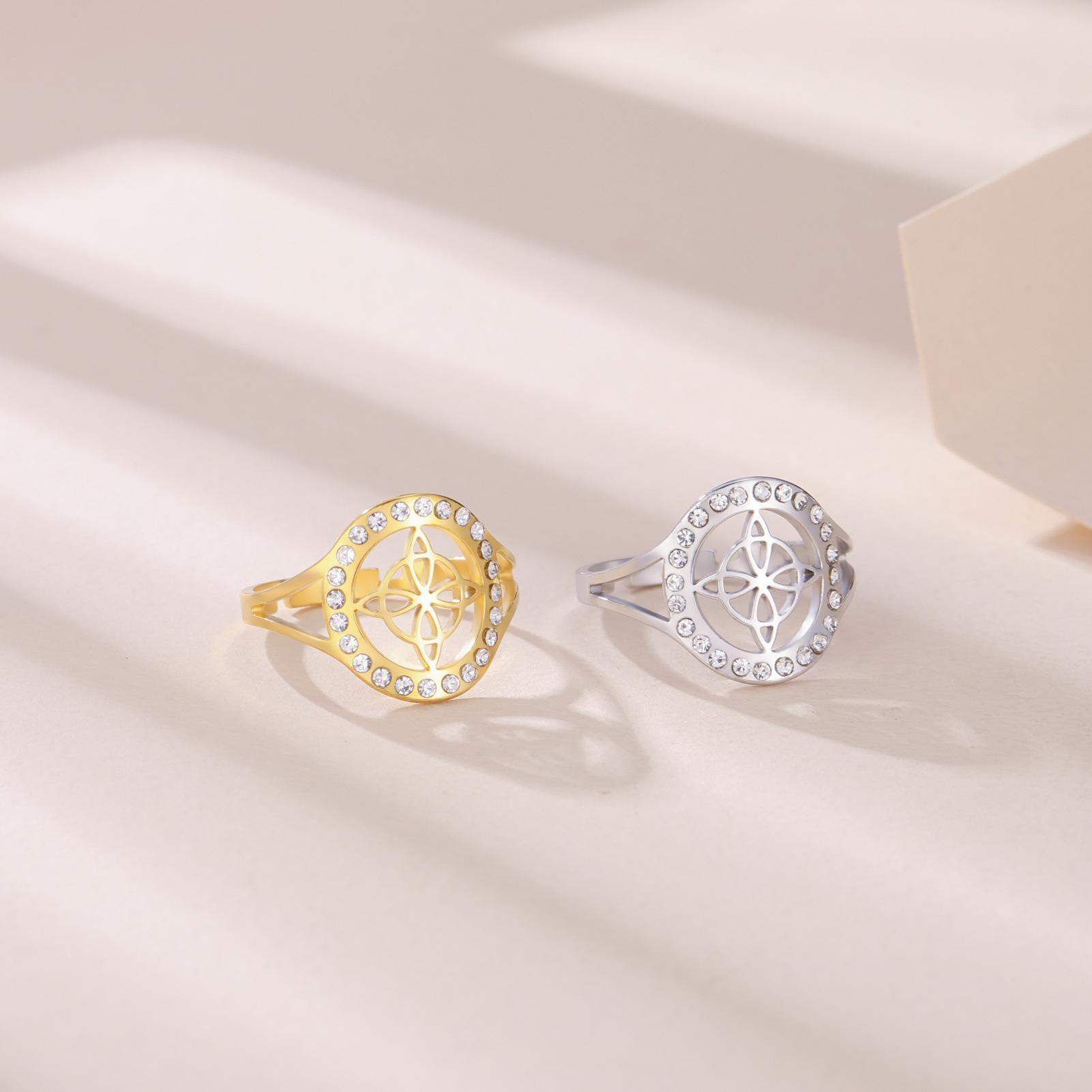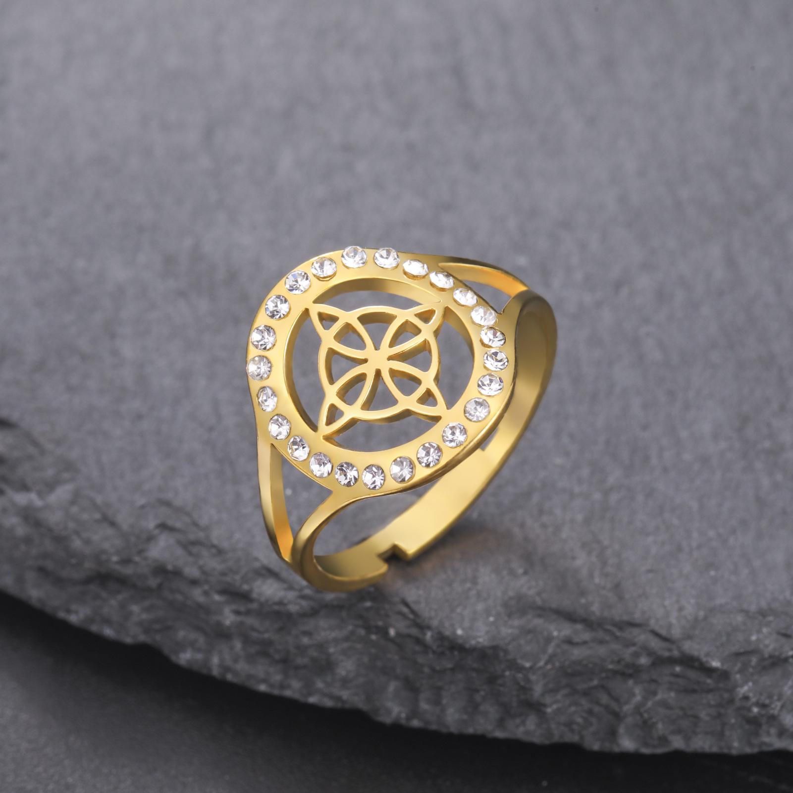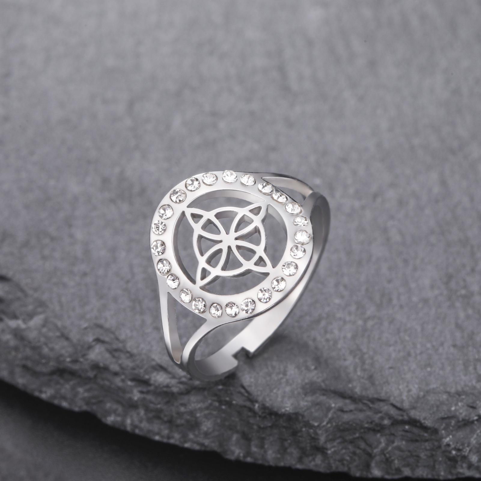 Anillo de acero inoxidable con corte de titanio y nudo de bruja hueco, ajustable, con diamantes, para hombres y mujeres, para exportación y comercio exterior
