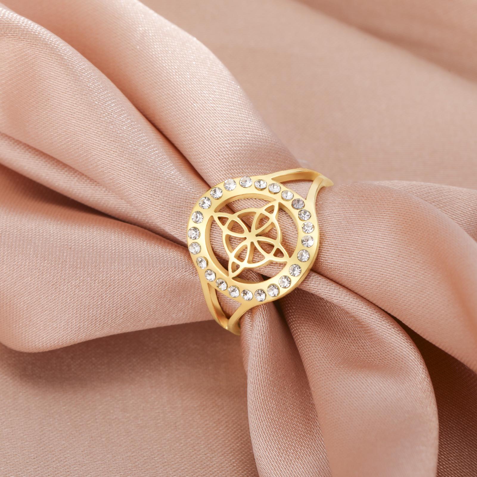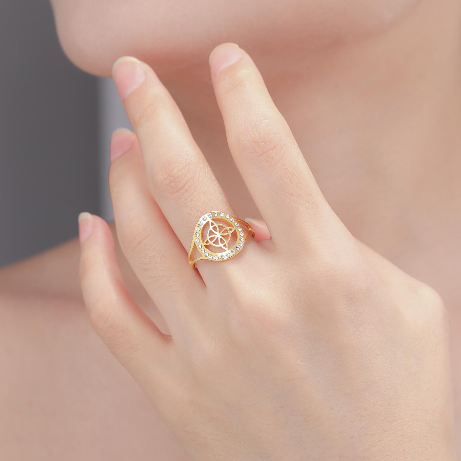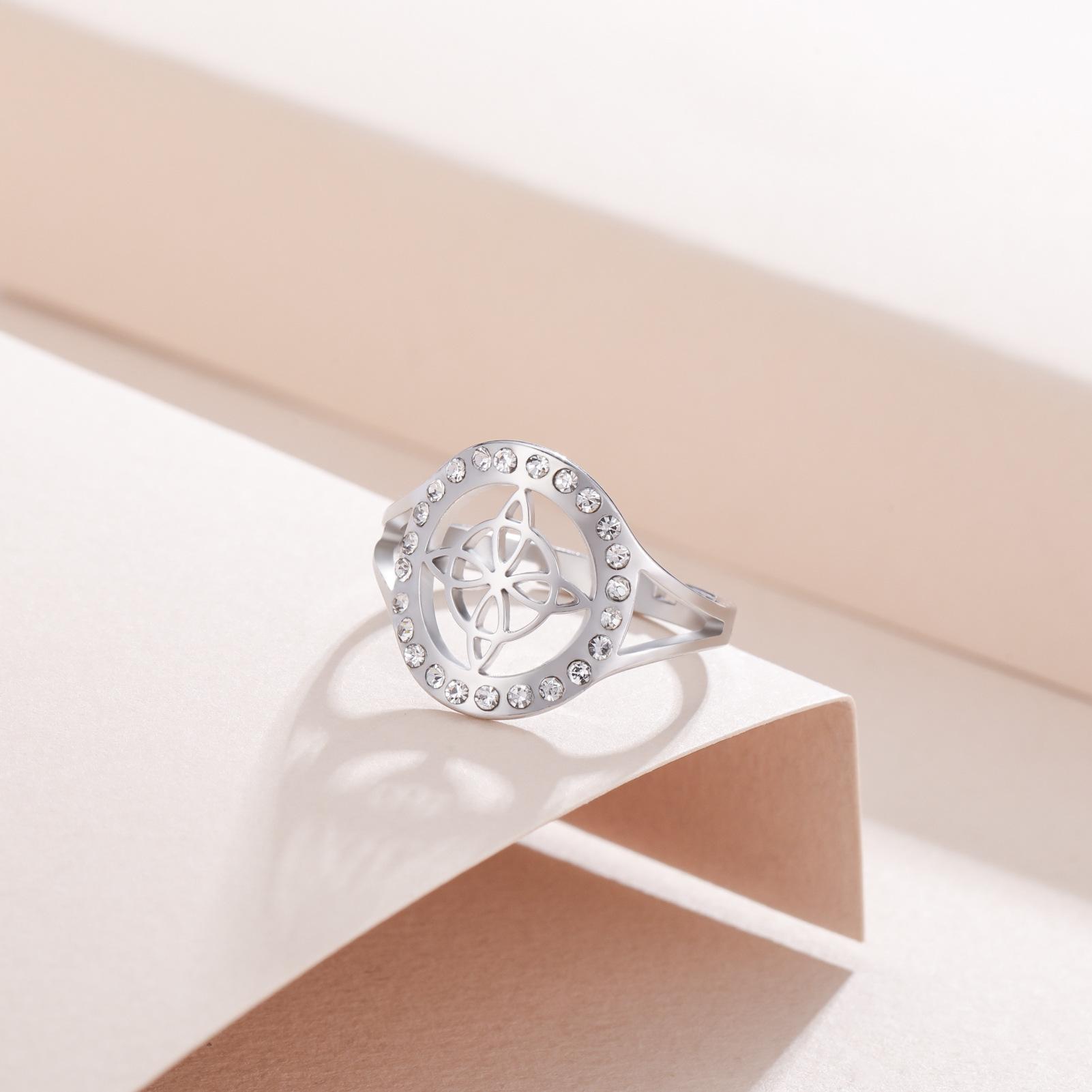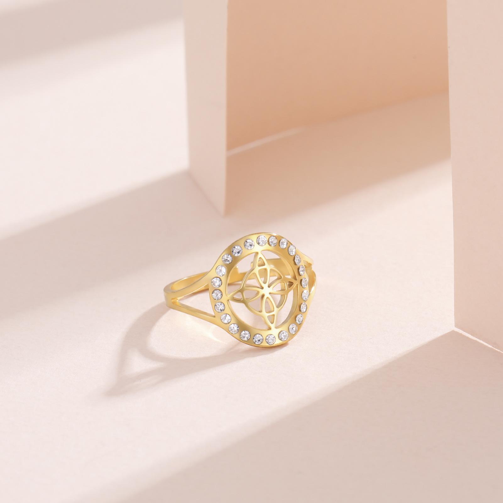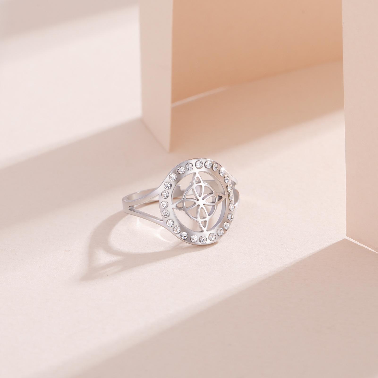 Anillo de acero inoxidable con corte de titanio y nudo de bruja hueco, ajustable, con diamantes, para hombres y mujeres, para exportación y comercio exterior